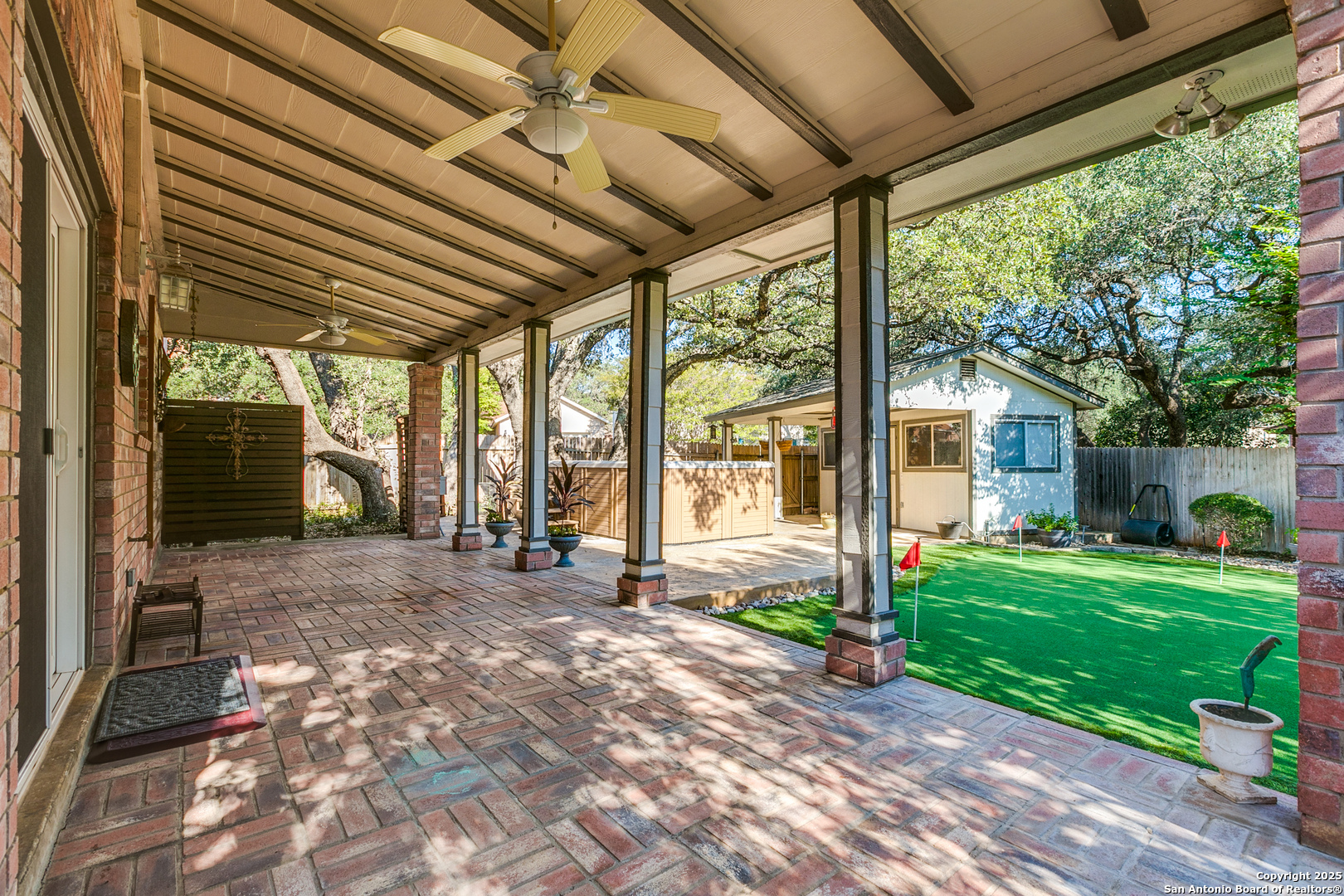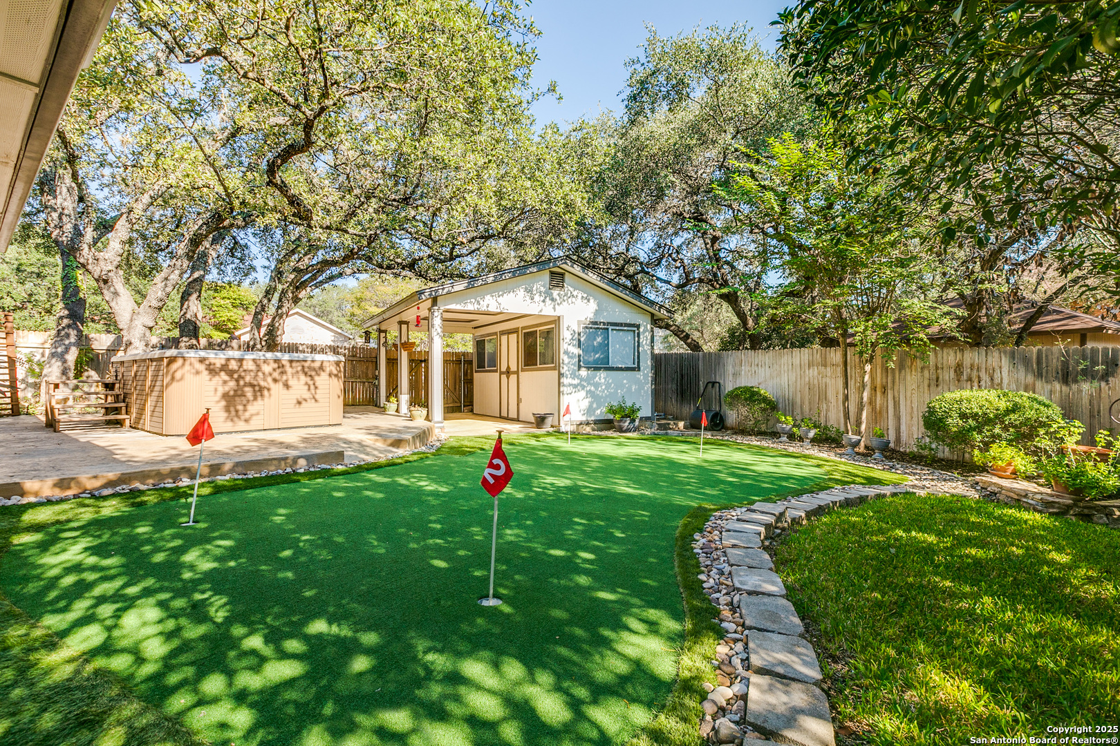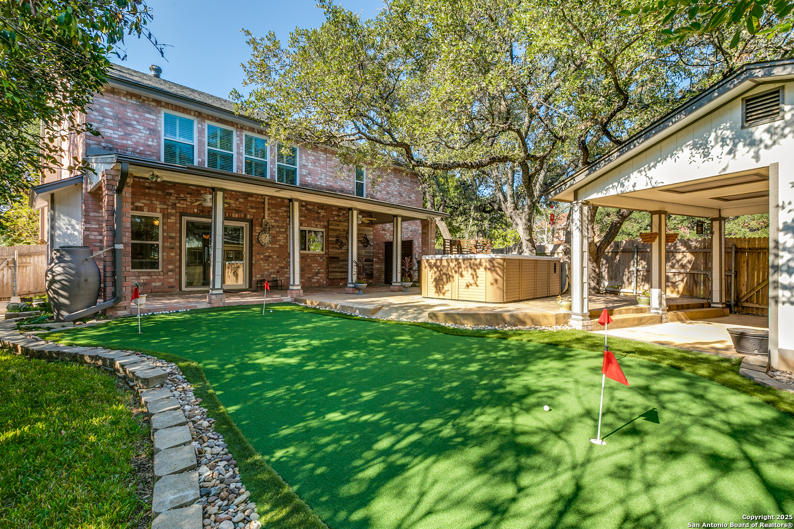 Good bones, great vibes, and a backyard that's basically a hole-in-one. And with the holidays around the corner, this is one of those rare homes you can actually be in before Christmas-tree up, lights on, and completely settled. At over 3,300 sq ft, this 4-bed, 2.5-bath corner-lot home has the kind of space that feels rare: two living areas, a formal dining room (yes, that's a legit Italian crystal chandelier), a breakfast nook perfect for pour-overs, Sunday waffles, and holiday mornings, and a pantry/laundry room so oversized it could rent itself out as a studio apartment. Outside, the vibe shifts to playful: a 4-hole putting green (so your short game stays sharp) and a Catalina Swim Spa with built-in exercise gear. Call it a backyard, call it your personal health club-it's all included. Shade from the majestic oaks means you've got room for hammocks, dinner parties, or a full-blown holiday gathering. Now for the gold: all the heavy-duty updates are done. New roof (2025), new HVAC with warranty (2024), new ductwork upstairs (2025), energy-efficient windows, radiant barrier insulation, gutters that basically never need cleaning-the list goes on. Translation: you don't have to spend a dime on the boring, expensive stuff. The heavy lifting is finished-you just get to enjoy the season. Extra touches worth noting: Elfa systems in both primary closets (minimalists, rejoice), a solid brass antique entry chandelier, and a custom-built shed with attached cover that can serve as a third garage/parking area. This isn't a fixer. It's a move-in, tee-off, hot-cocoa-on-the-patio kind of house. In other words? Pure gold.