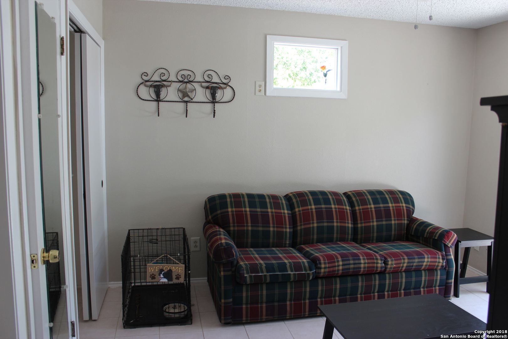 AWESOME Short term monthly rental; fully furnished garden home in desirable Castle Hills Forest. All utilities/services included; except NO GARAGE ACCESS! NOTE: Also available on a WEEKLY BASIS @ $840/wk; call LA for details. Nicely updated & decorated for small family. Small, well-behaved dog ok subj to owner approval; No cats! Centrally located close to Med Ctr; UTSA; USAA; Airport. Hike/bike to Hardberger Nature Park; SA Jewish Center; HEB & restaurants; bikes included with home!