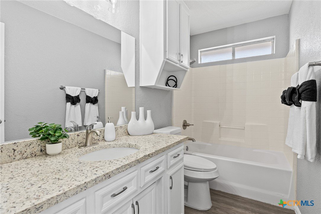 Looking for a turnkey ready home with all modern updates?!! This beautifully renovated, single-story gem is the home for you offering modern elegance and move-in ready convenience in every detail with over 1800 square footage of living space to include 3 spacious bedrooms, 2 bathrooms plus a versatile office/flex room and a converted garage for added living space. Located in a family friendly neighborhood just minutes away from Fort Cavazos, schools, and a wide variety of shopping and dining options. This home is great for families seeking the perfect blend of style, comfort and functionality. Step inside to discover laminate and brick flooring throughout and a charming brick wood-burning fireplace adding warmth and character to the spacious living area. The open-concept kitchen offers all new appliances, sleek granite countertops, tons of cabinet space and stylish finishes all great for everyday living. The main suite offers a large walk-in closet, soaking tub, separate shower, and dual vanities. Step outback to discover a covered patio, large backyard that is fully fenced providing a private area for entertaining or relaxing. The converted garage provides versatile space ideal for a bonus room, gym, or media room. Landscaping has been done for you to enhance curb appeal while complementing the home’s modern finishes. No details overlooked in this must see home completely transformed with high-end finishes and modern design and is now ready for its new owners. All updates have been thoughtfully designed to provide peace of mind and style making this home truly turnkey ready. Schedule your private tour today and see why this is a must-see property!