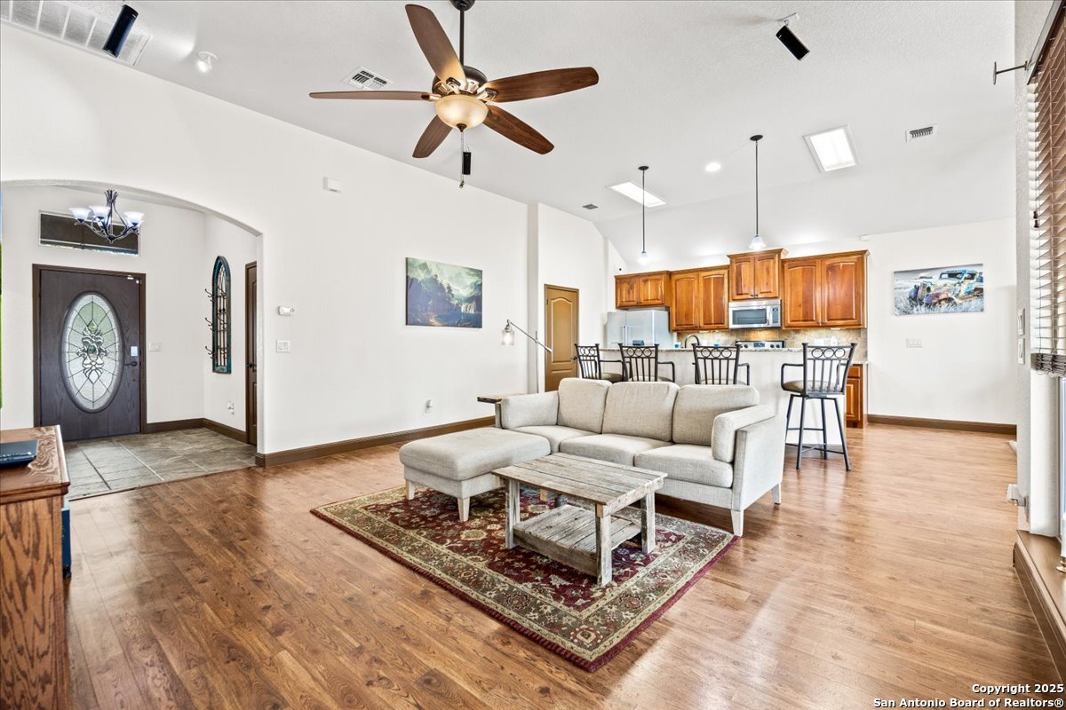 Discover this cozy New Braunfels home at 2308 Megan, located on a quiet cul-de-sac just 2 miles from IH-35. Built with mainly brick, it features soaring 11-foot ceilings, cathedral arches, and a bright, open layout. Key highlights include: NO HOA! Net zero electric home with 50 solar panels Smart home automation: Alexa-controlled lighting and dusk-to-dawn garage lights Premium surround sound system in the great room Low-maintenance xeriscape landscape and screened epoxy-coated patio Large RV hookup with full electric, cable, and sewer connections Energy-efficient upgrades: new water heater, insulated garage with Mini Split heat pump Security: IQPanel alarm, biometric garage deadbolt, wired for cameras Fast AT&T Fiber internet up to 1GB This modern, energy-efficient home combines luxury, convenience, and peace of mind in a desirable location.
