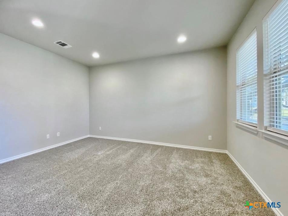 Fantastic leasing opportunity in one of the most charming neighborhoods also connect with Leander's most beautiful park at Lakewood! This home faces a serene greenbelt courtyard with mature shady oaks and green space right next door. The welcoming floor plan boasts a spacious covered front porch and a versatile flex room right off the entry, perfect for an office, formal space, or playroom for the kids. The private primary suite features a walk-in shower and closet, with generous high ceilings throughout, added ceiling fans, and bright quartz countertops paired with espresso cabinets. Lakewood city park, splash pad oasis feature and lake area are now open to the public, just a short walk away. Residents love this area for its convenience to shopping, entertainment, and excellent schools. Plus, it’s just minutes from major thoroughfares and tollways for an easier commute.