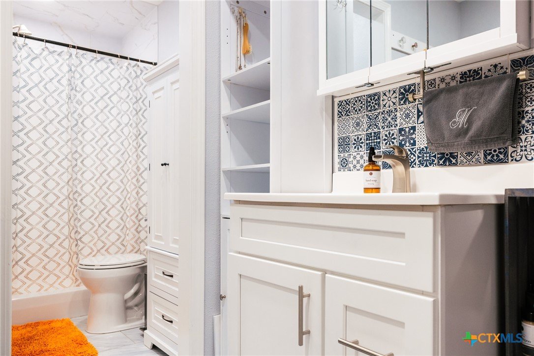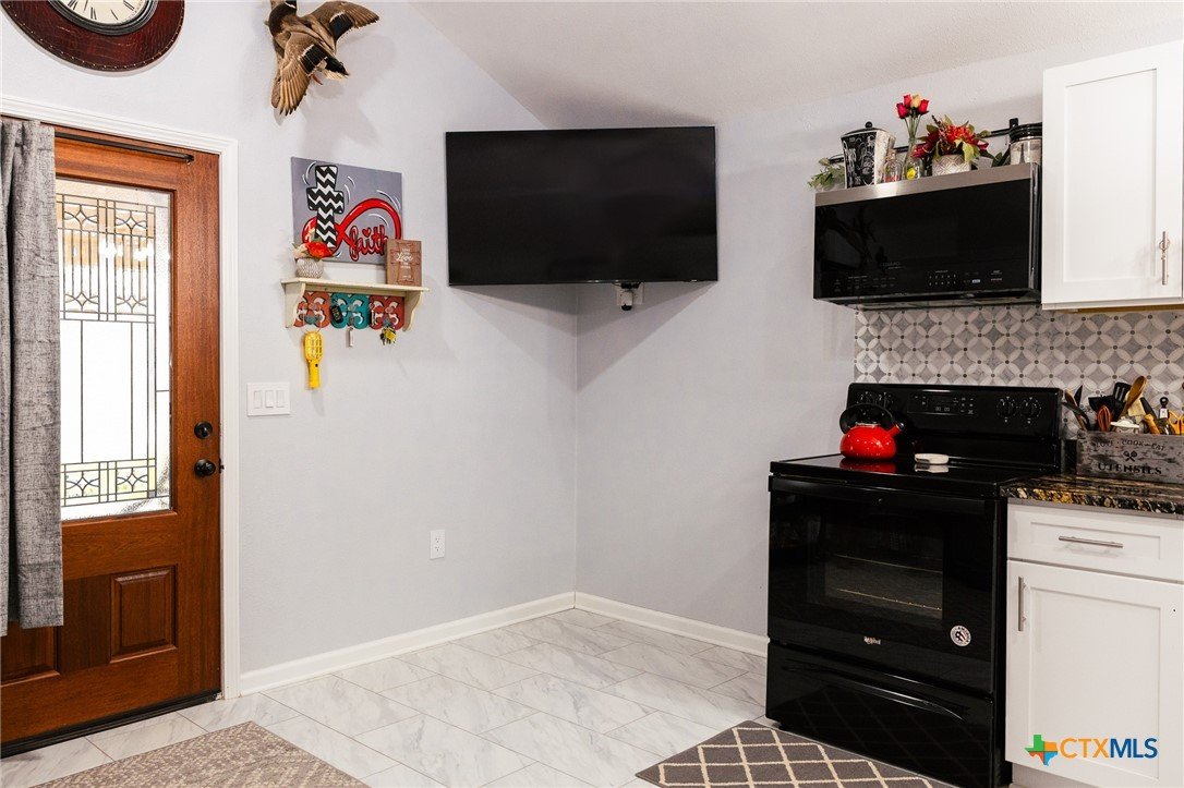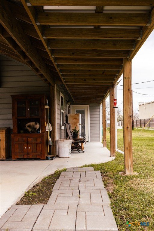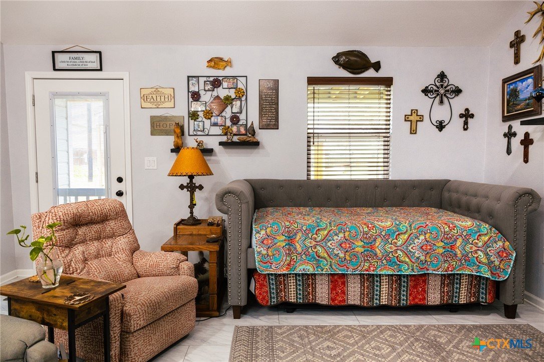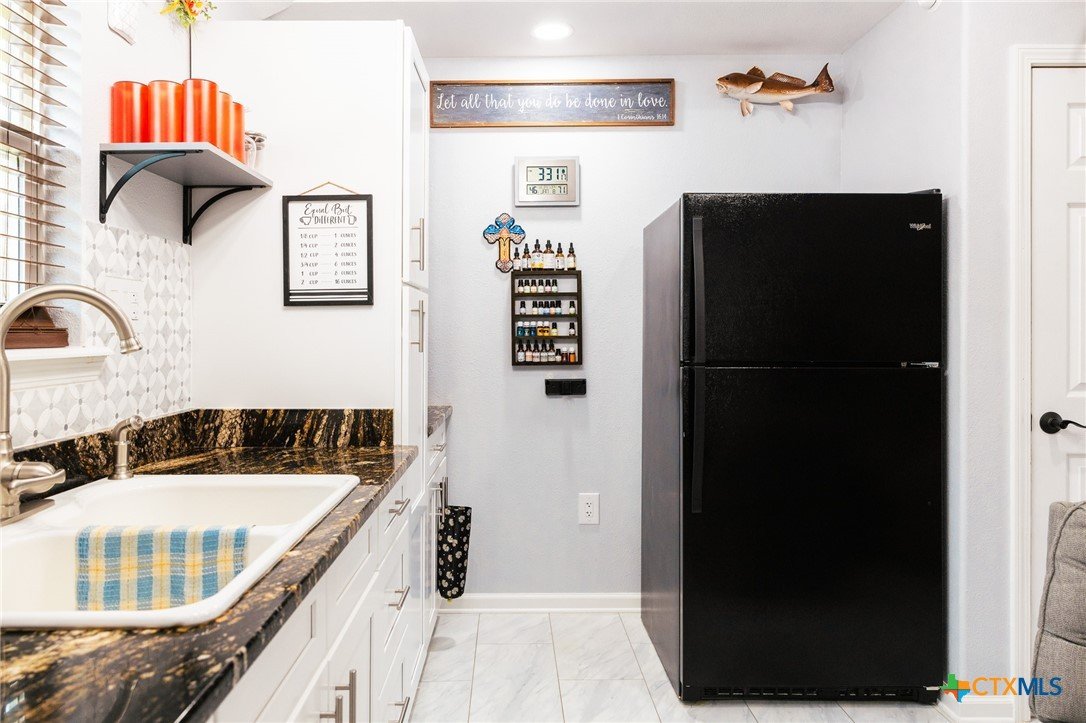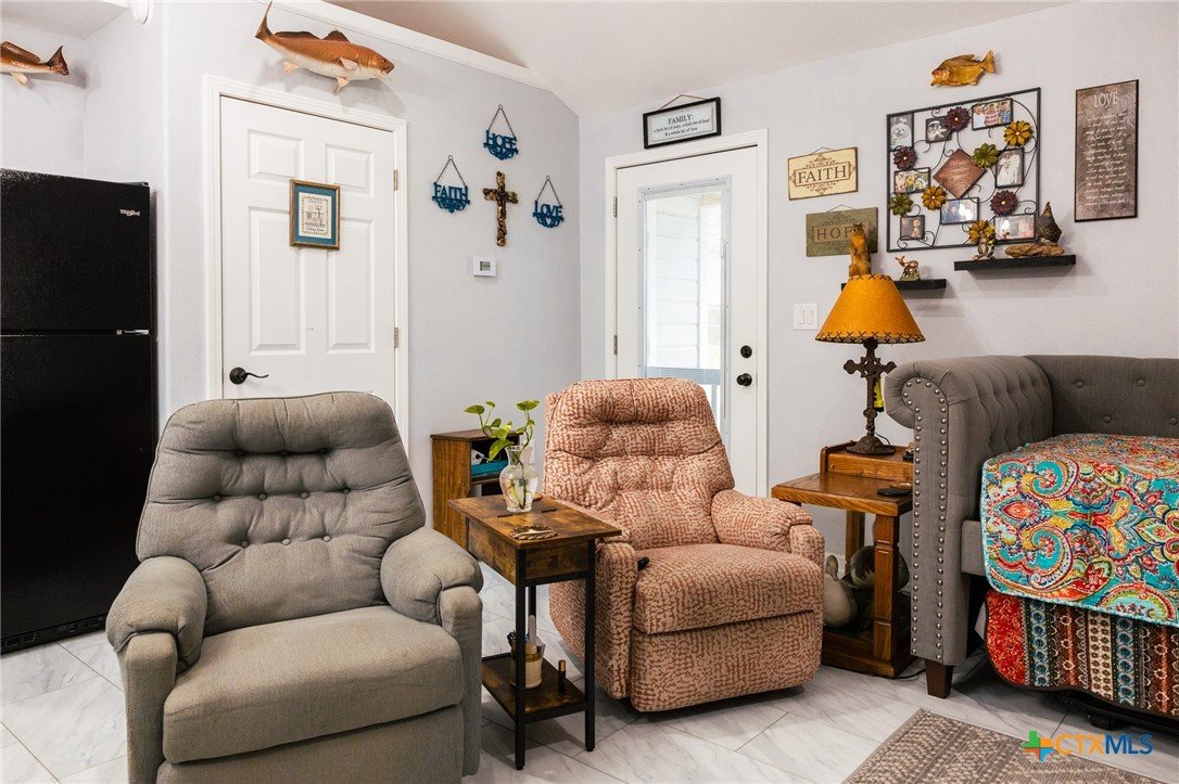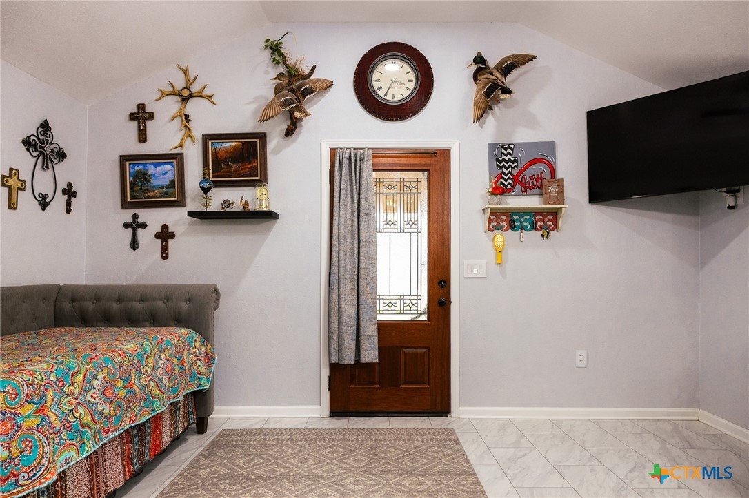 This charming renovated tiny studio home offers the perfect blend of comfort and versatility, nestled on a spacious corner lot just under half an acre. Step inside to discover a modern kitchen with a gleaming granite countertop, custom cabinets, and tile floor throughout. Having a peace of mind with a durable metal roof is a plus! Enjoy outdoor relaxing under the expansive 16x16 covered porch. A paved sidewalk leads to a 35x25 double carport and RV storage, complete with a concrete slab, electrical and plumbing hookups! This property is packed with extras, including a 10x20 climate-controlled storage building, a 10x16 workshop with electricity, an additional carport for storage, and an adorable 8x12 playhouse that could easily transform into a cozy she-shed or man cave. With three convenient entrances, ample space for outdoor entertaining, and its location in the highly sought-after Industrial ISD school district, this unique property is a rare gem ready for you to call home!