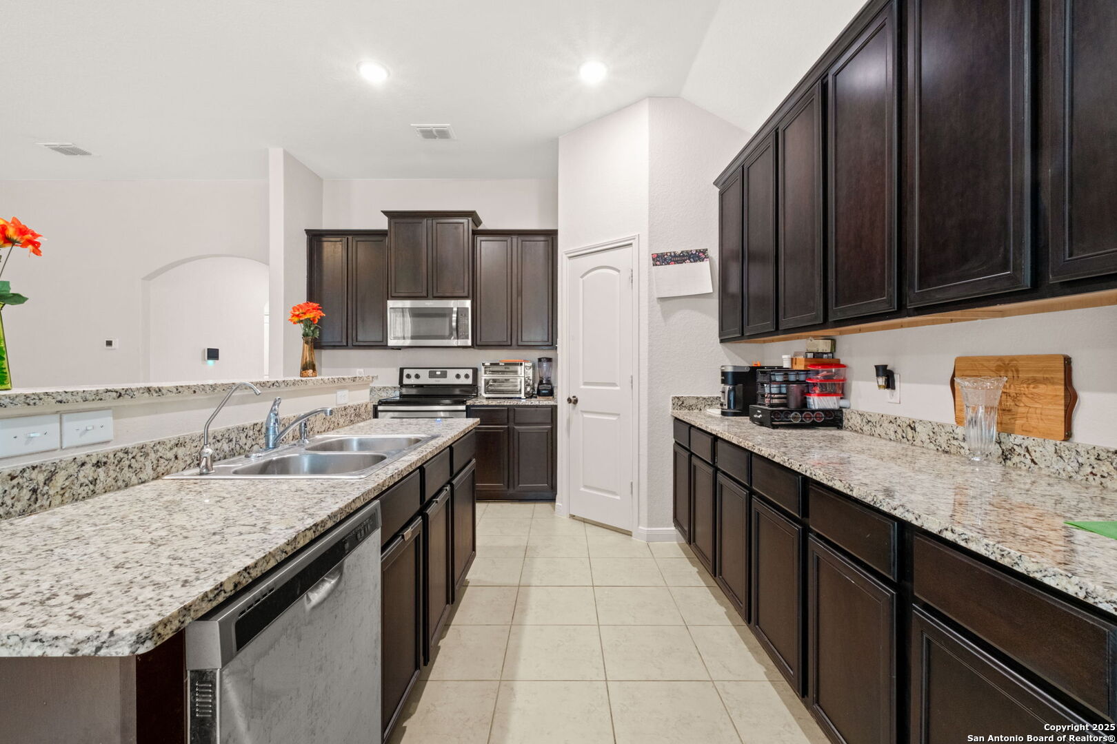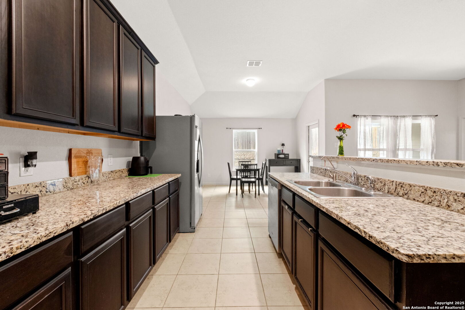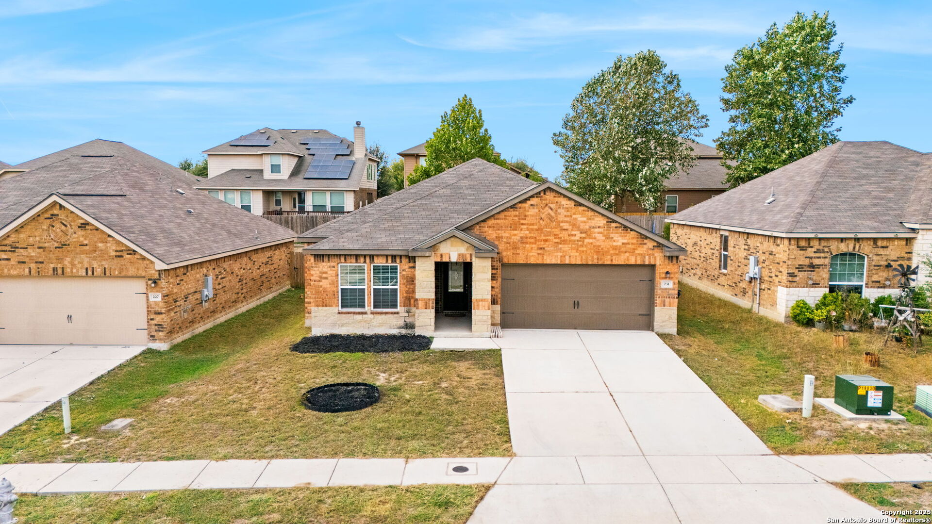 Located in Magnolia Springs, this home sits in a prime spot with quick access to I35, an easy route to Randolph Air Force Base and close proximity to all that New Braunfels and Gruene offer. San Antonio is about thirty minutes away, making daily travel simple. Inside, the open floor plan creates a comfortable layout with plenty of natural light and fresh paint throughout. The kitchen features stainless steel appliances, dark cabinetry, granite countertops and a breakfast bar. The primary room includes a walk in closet, and the private bath offers a separate shower and a soaking tub. A seller credit is available to update the carpet or select flooring that suits your style. Additional highlights include a water softener and a security system. The covered patio and privacy fence provide a relaxing outdoor area, ideal for unwinding at the end of the day. Neighborhood amenities include a park and a playground, and the property is located within Comal School District.