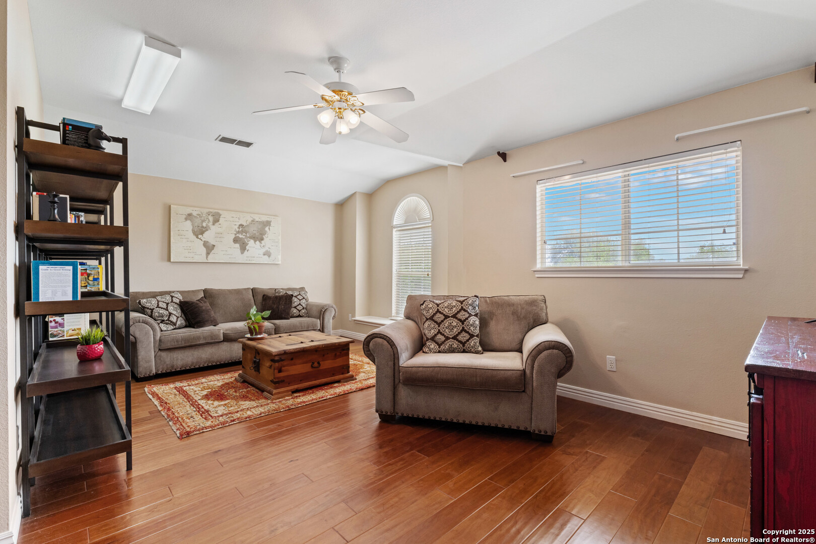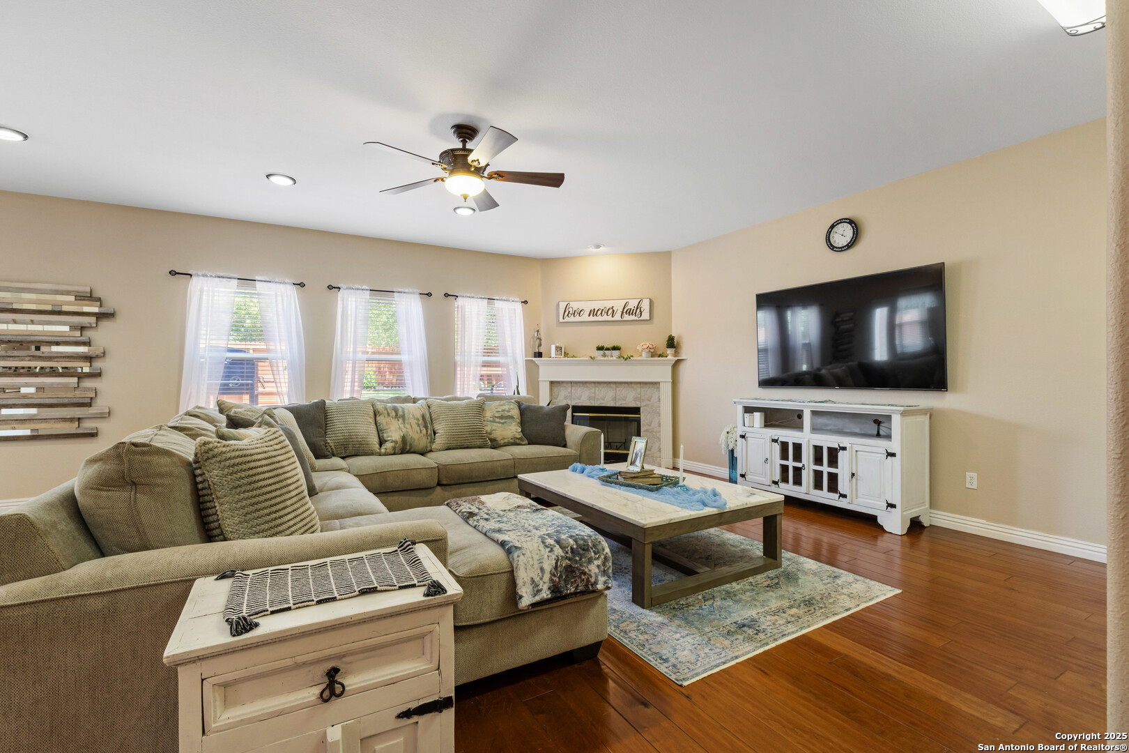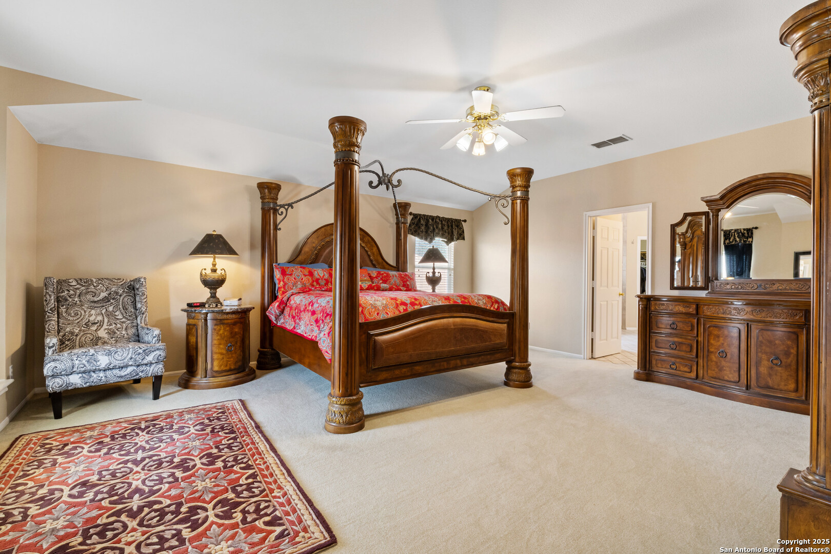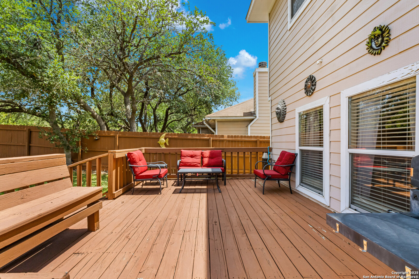 Stunning 5-Bedroom, 3-Bath Two-Story Home in The Reserve at Thousand Oaks. Welcome to this spacious and versatile home located in the sought-after Reserve at Thousand Oaks neighborhood. Featuring five bedrooms-including a flexible first-floor room with a closet that can serve as either a bedroom or a home office-and a generous upstairs game room/loft, this home offers ample space for both relaxation and entertainment. The kitchen boasts a walk-in pantry, abundant cabinetry, and seamlessly connects to two distinct dining areas, perfect for hosting gatherings. The oversized master suite is a true retreat, complete with dual walk-in closets and a luxurious en-suite bathroom featuring a double vanity, soaking tub, and separate shower. Step outside to a large backyard oasis, complete with a patio and deck, ideal for outdoor entertaining. The yard is enclosed with a privacy fence and adorned with several fruit trees, adding both beauty and functionality. Conveniently situated near Thousand Oaks, with easy access to Hwy 281 and Loop 1604, this home offers central living with proximity to shopping and dining. Don't miss the opportunity to make this exceptional property your new home!