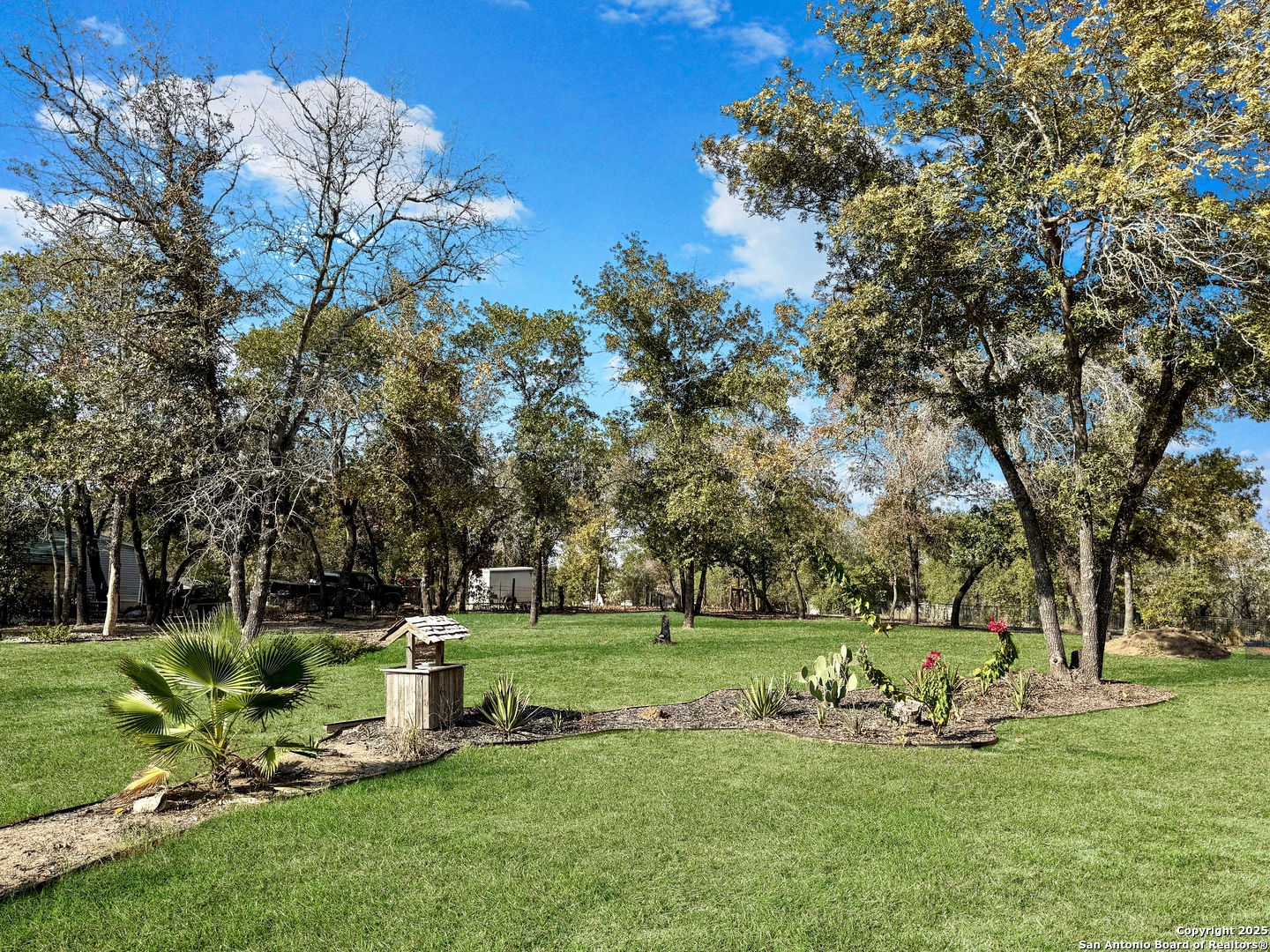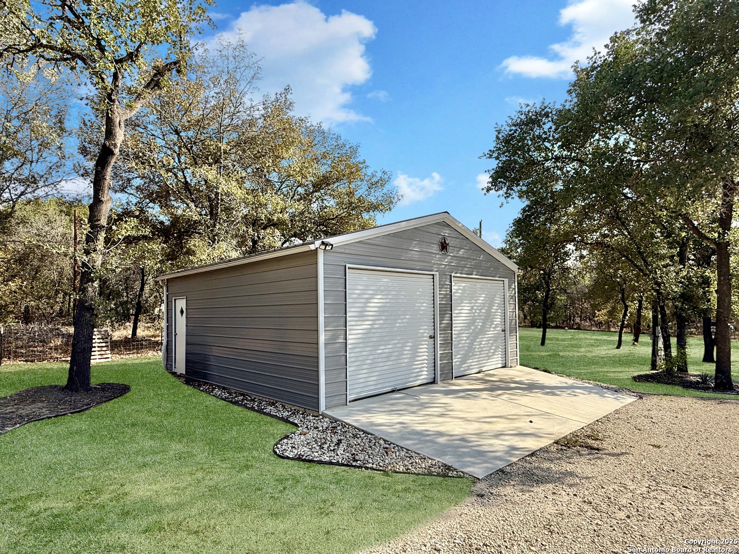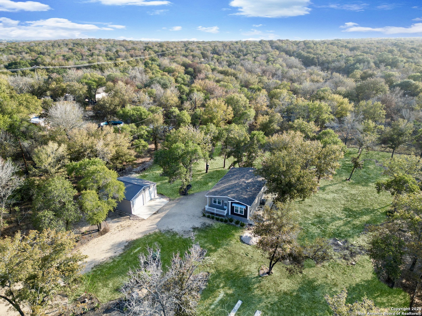 Modern living meets country charm in the desirable Hickory Hollow subdivision just off South 281 and outside of Loop 1604. Built in 2023 and sitting on 1.695 acres, this like-new Manufactured Home offers 3 bedrooms, 2 baths, and an open design filled with natural light. Enjoy quartz countertops, a spacious island, and stainless steel appliances including the refrigerator, range, microwave, and dishwasher. Every room features ceiling fans and two-inch faux blinds, creating both comfort and style. Outside, mature trees, beautiful landscaping, and a powered remote gate enhance the fully fenced property. The oversized detached two-car garage with a metal roof and electricity is perfect for vehicles, tools, or projects. Located at the end of a cul-de-sac with quick access to major highways, shopping, restaurants, parks, and military bases such as Lackland AFB and Brooks City Base. This is your chance to own beautiful Texas land with a home so act fast before it's gone!