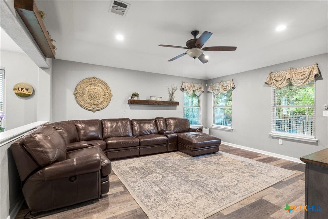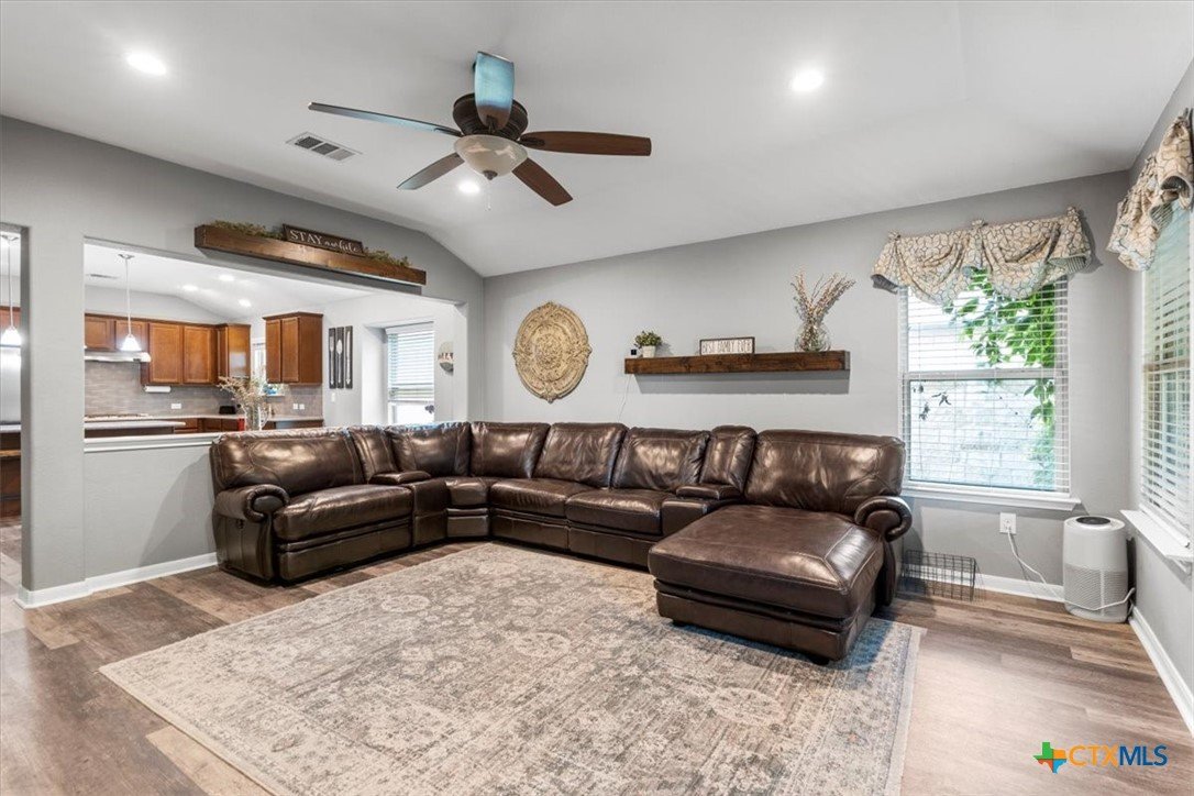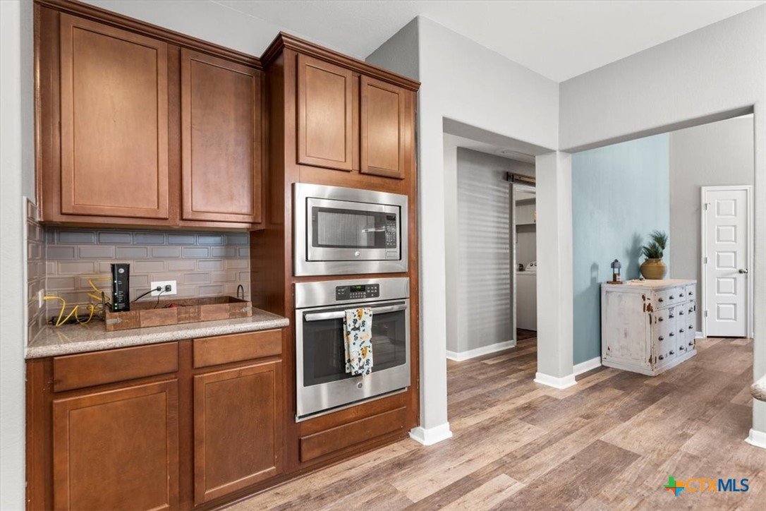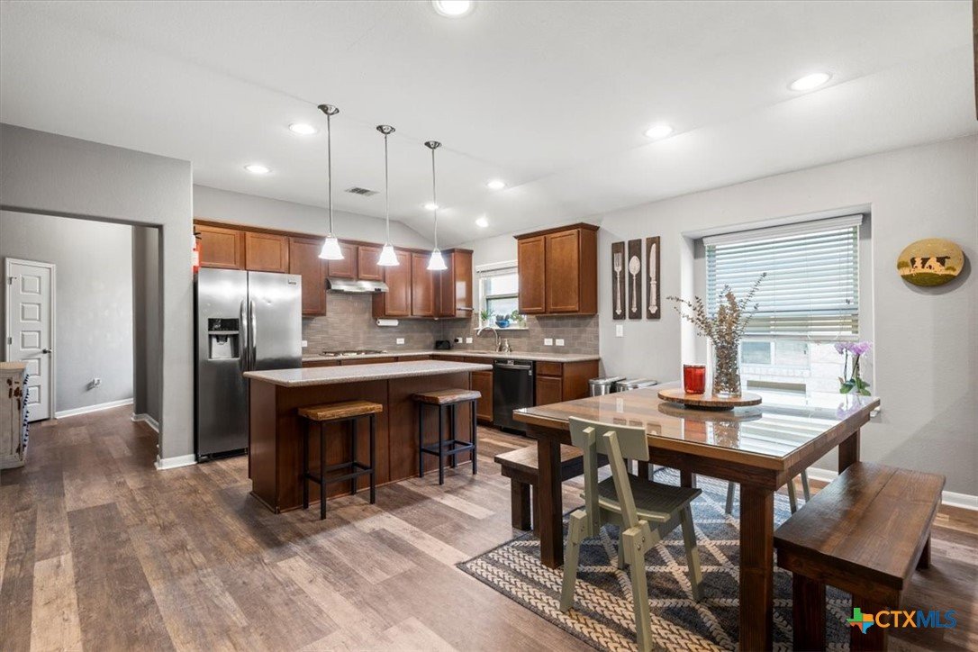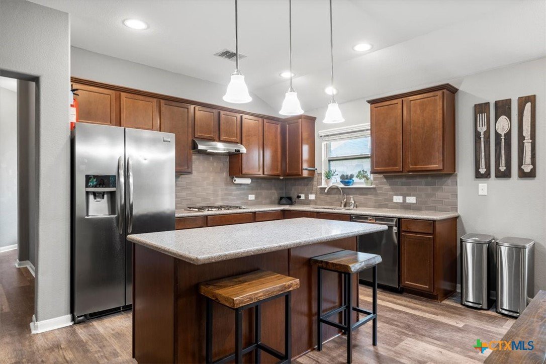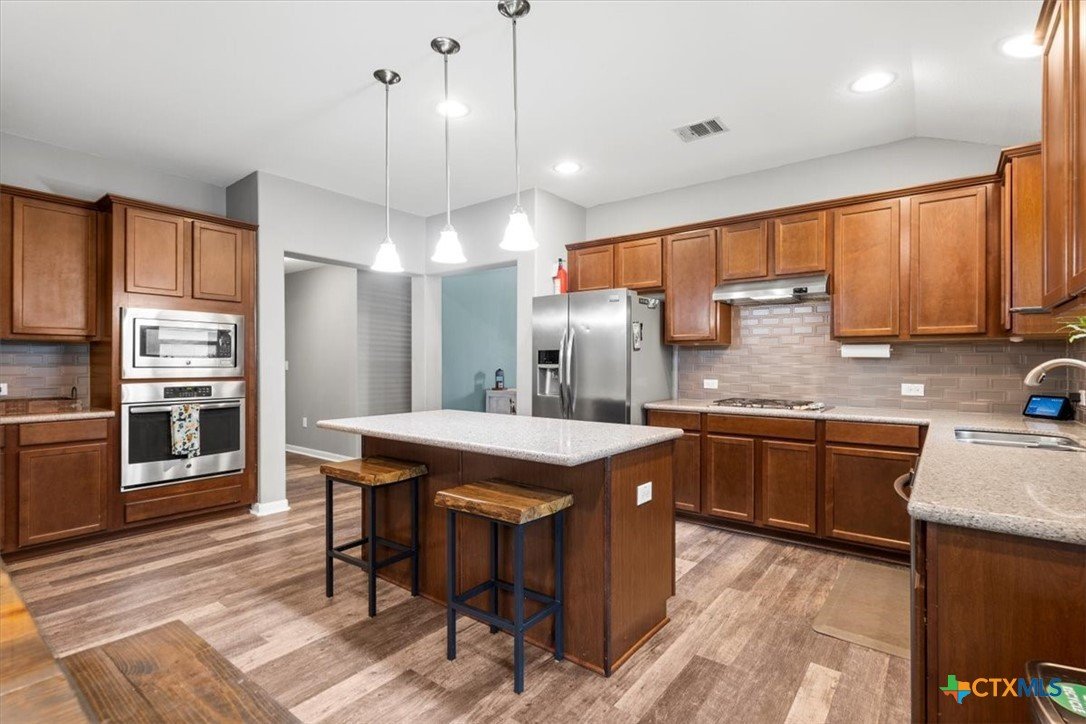 This amazing single-story home has a charming stone brick exterior and a roomy three-car garage. It’s got fresh new floors put in last year and a brand-new asphalt roof that was installed just a month ago. The open layout for the kitchen, dining, and living room is perfect for hanging out and entertaining guests. The kitchen comes with built-in stainless steel appliances and cool pendant lighting over the island, giving it a nice vibe. The main bedroom is super private and features a spacious walk-in closet and a walk-in shower. Plus, there's a cozy private study that’s great for working from home or just having some quiet time. This home really balances style and comfort!