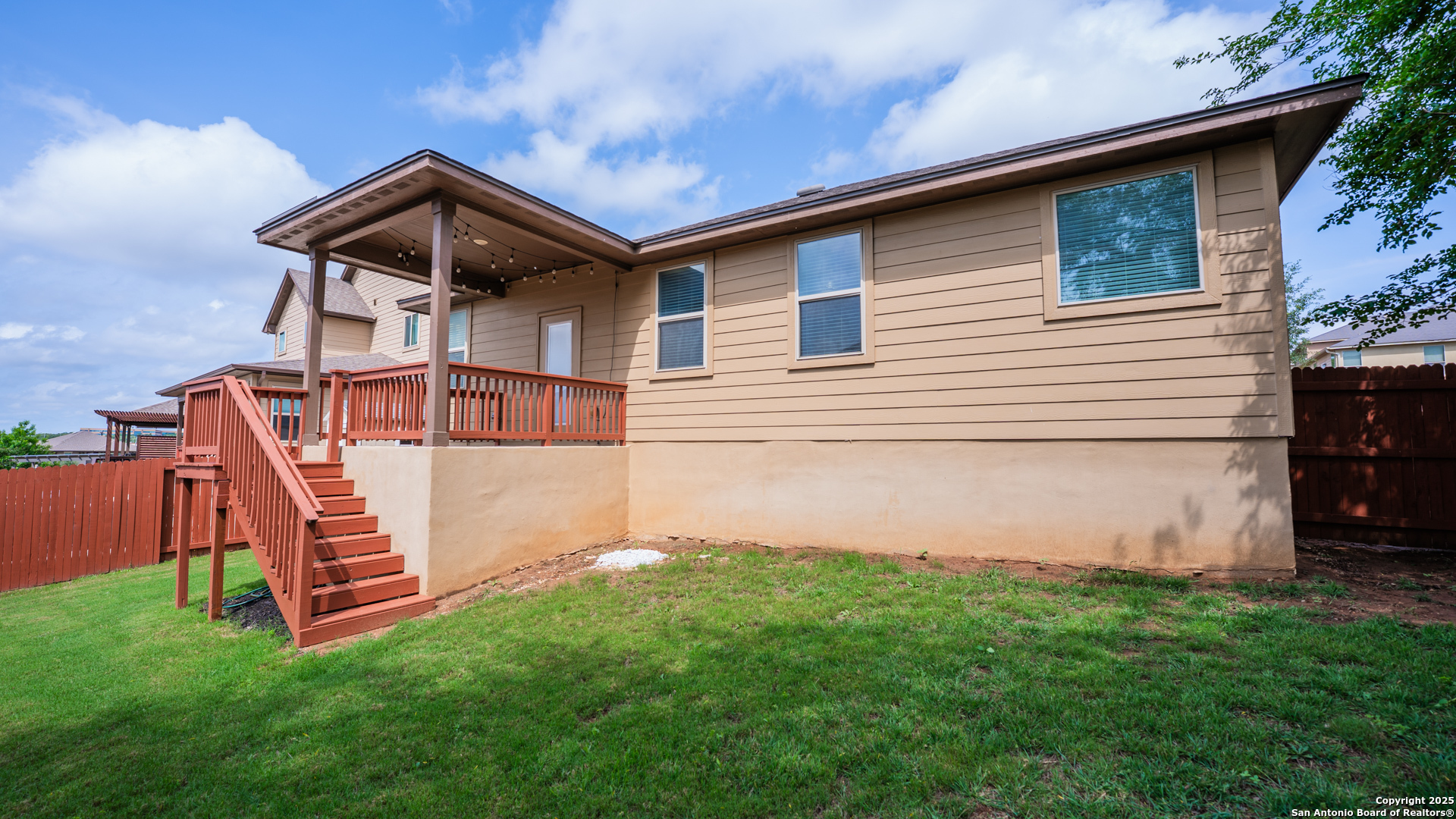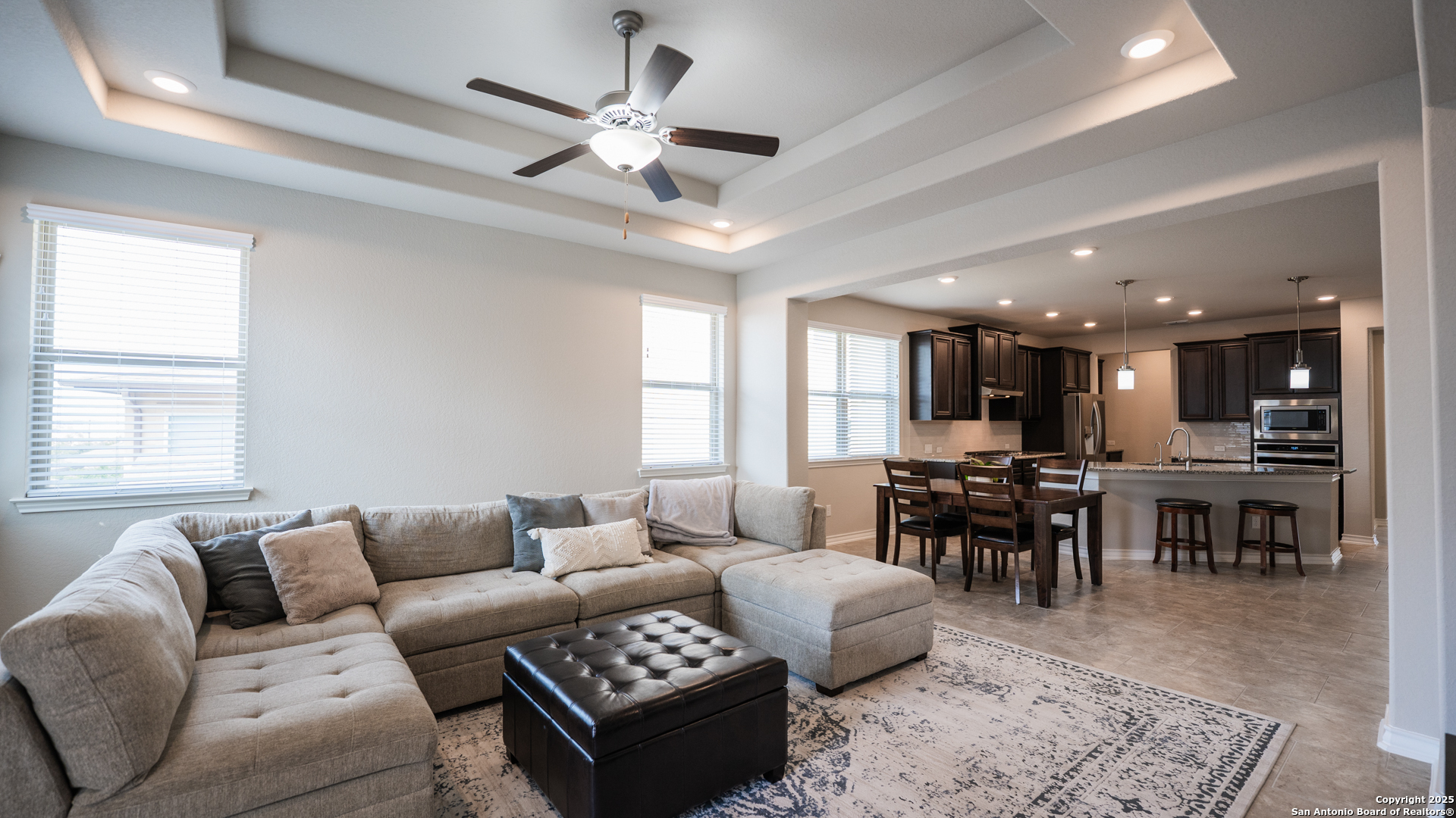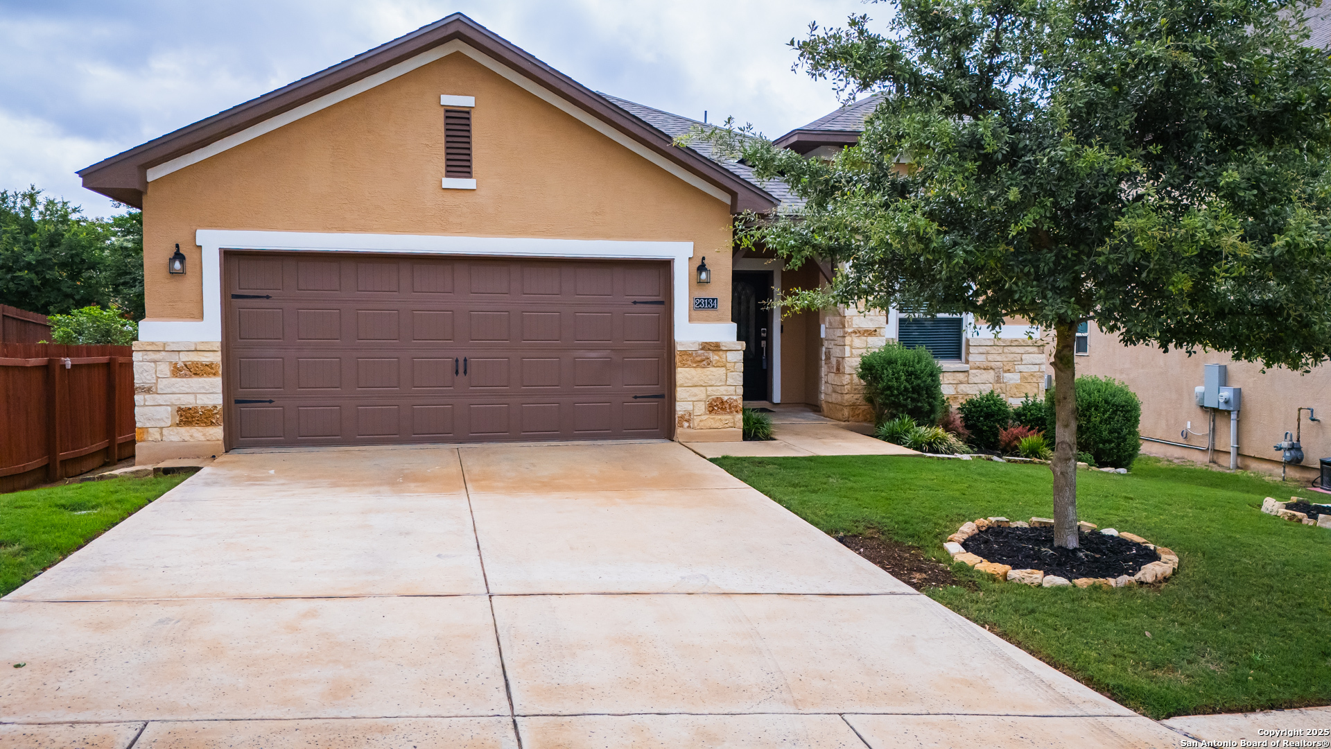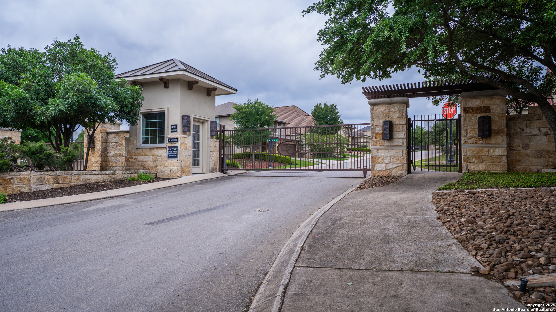 Welcome to 23134 Lexington Park, a beautifully maintained one-story home nestled in the gated community of The Cliffs at Cibolo. This 3-bedroom, 2-bath home with a dedicated office boasts nearly 2,000 sq ft of thoughtfully designed living space. The open-concept Lexington floor plan offers a seamless flow between the living, dining, and kitchen areas, enhanced by high tray ceilings that add depth and character. The kitchen is a standout, featuring a large center island, granite countertops, stainless steel appliances, gas cooktop, built-in oven and microwave - ideal for both daily life and entertaining. The primary suite is tucked away for privacy and includes a spacious bath and generous walk-in closet. Step outside to a covered patio overlooking a professionally landscaped yard with mature trees, full sod, and a sprinkler system. Located in one of North San Antonio's most desirable areas, residents enjoy easy access to The Village at Stone Oak, Target, Alamo Drafthouse, and premier dining options. Just minutes from TPC Marriott, home of the Valero Texas Open, and situated across from Johnson High School with quick routes to Hwy 281 and Bulverde Rd. Don't miss this rare opportunity to own a move-in ready home in a prime location - modern layout, gated community, and unmatched convenience all in one.