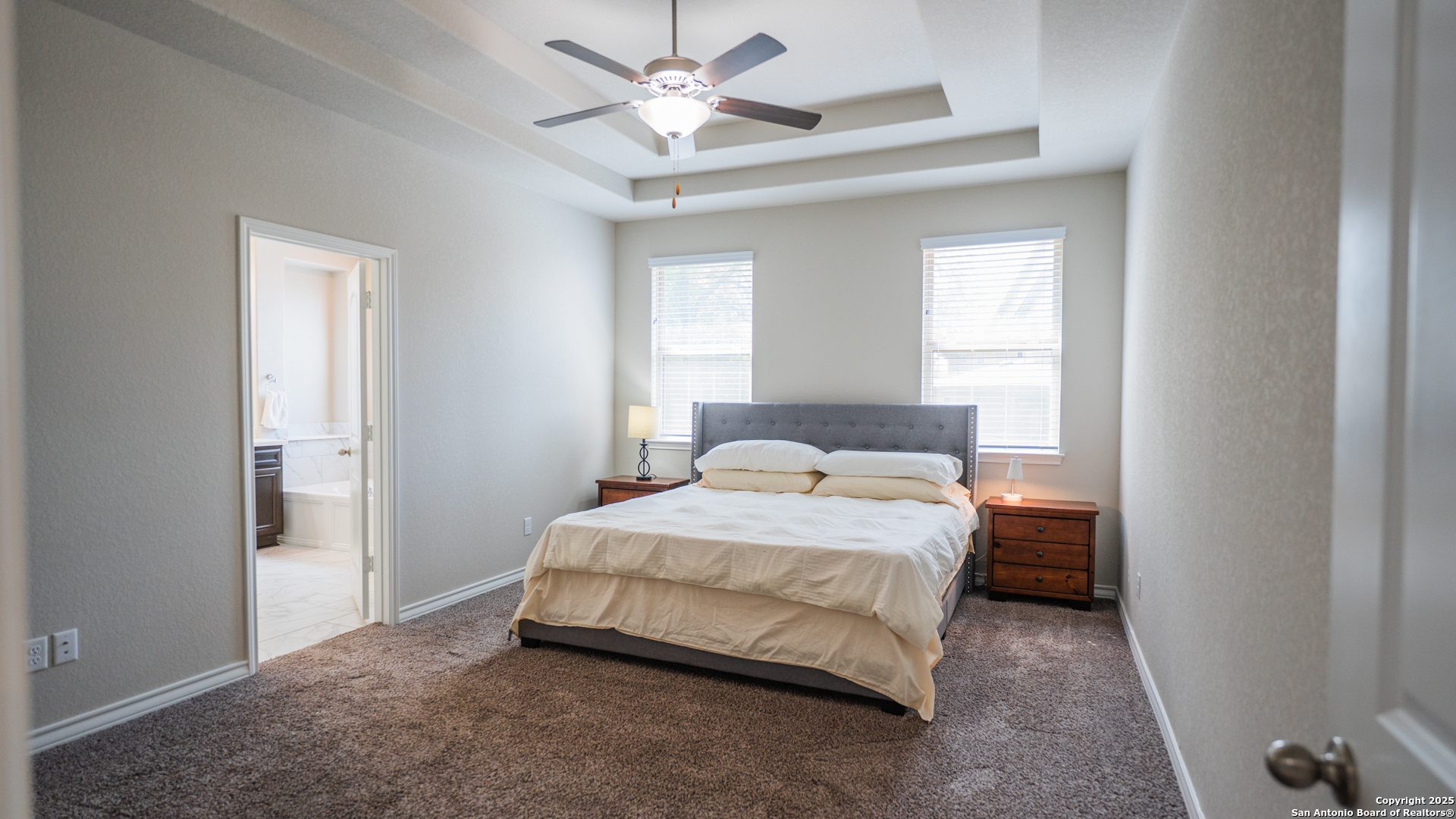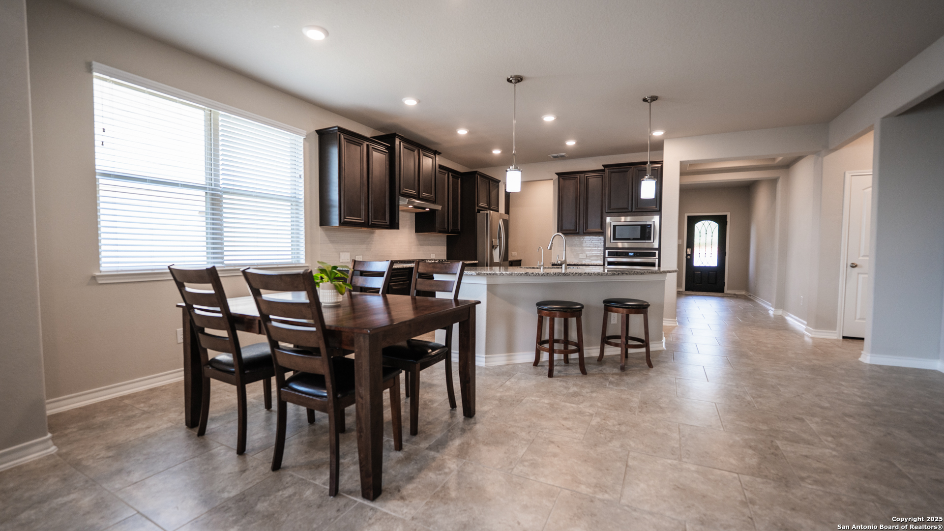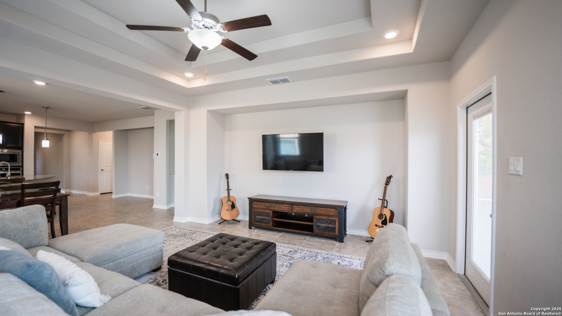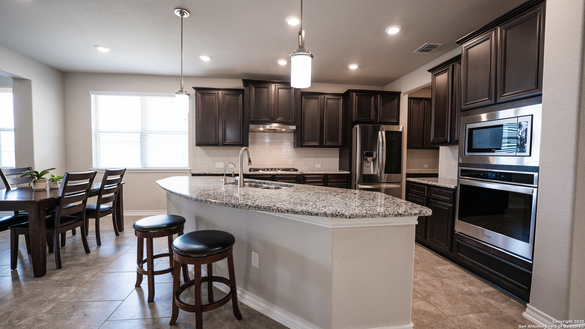 Welcome to 23134 Lexington Park, a beautifully maintained one-story home nestled in the gated community of The Cliffs at Cibolo. This 3-bedroom, 2-bath home with a dedicated office boasts nearly 2,000 sq ft of thoughtfully designed living space. The open-concept Lexington floor plan offers a seamless flow between the living, dining, and kitchen areas, enhanced by high tray ceilings that add depth and character. The kitchen is a standout, featuring a large center island, granite countertops, stainless steel appliances, gas cooktop, built-in oven and microwave - ideal for both daily life and entertaining. The primary suite is tucked away for privacy and includes a spacious bath and generous walk-in closet. Step outside to a covered patio overlooking a professionally landscaped yard with mature trees, full sod, and a sprinkler system. Located in one of North San Antonio's most desirable areas, residents enjoy easy access to The Village at Stone Oak, Target, Alamo Drafthouse, and premier dining options. Just minutes from TPC Marriott, home of the Valero Texas Open, and situated across from Johnson High School with quick routes to Hwy 281 and Bulverde Rd. Don't miss this rare opportunity to own a move-in ready home in a prime location - modern layout, gated community, and unmatched convenience all in one.