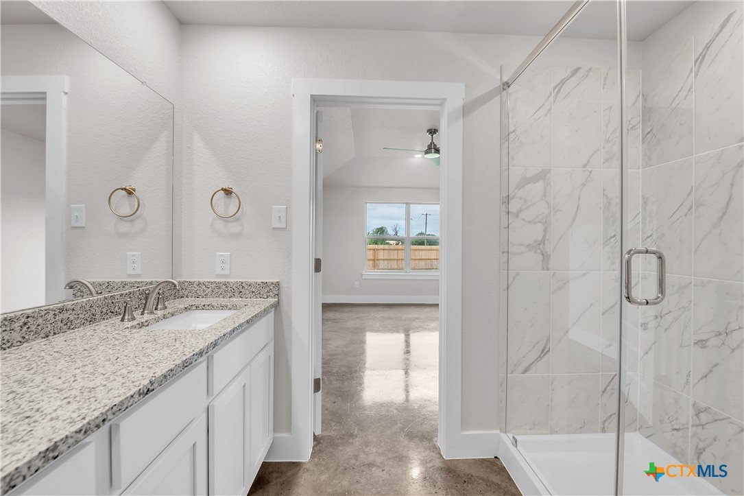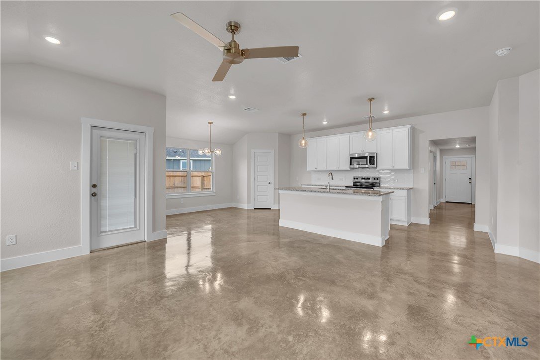 Situated in the highly sought-after Mesa Ridge subdivision, this charming home offers 4 bedrooms, 2 bathrooms, and a spacious 2-car garage. The popular Medina floor plan showcases a bright, open-concept layout with 1,657 square feet of comfortable living space. The kitchen is equipped with stainless steel appliances, granite countertops, and a walk-in pantry, perfect for any home chef. Each bedroom is generously sized and features cozy carpeting, while the main living areas are finished with stylish luxury vinyl plank flooring. Both bathrooms include granite countertops, with the primary suite boasting a walk-in shower and dual vanity. Outside, enjoy a covered patio, fully sodded yard with irrigation, and a 6-foot privacy fence—ideal for relaxing or entertaining. This home combines functionality and style, making it perfect for everyday living. Fresh Start, Fall Savings! Now offering interest rates as low as 4.99% (5.783% APR) Fixed offer—a great deal to kick off your buyer's home search. Don’t miss this limited-time opportunity! Incentives are available only on select homes and may vary by community and homesite. Restrictions apply. Please contact our sales team for complete details.