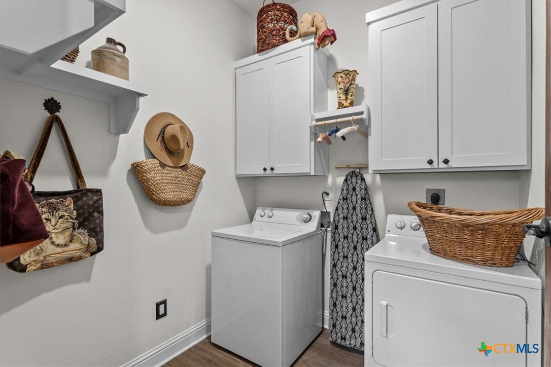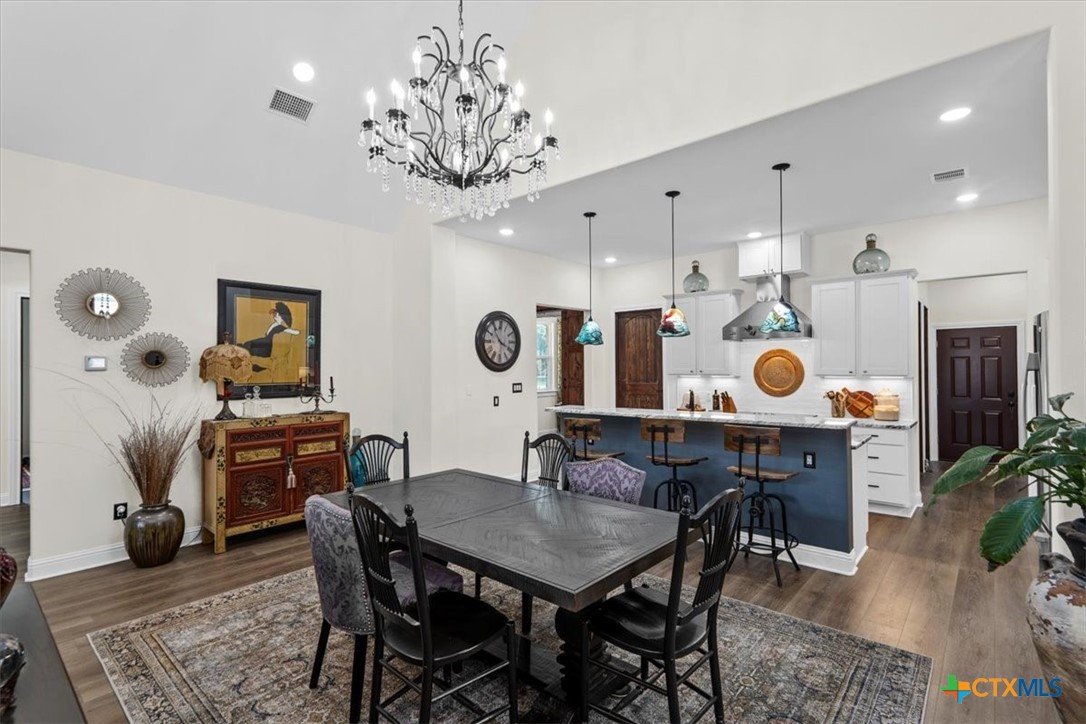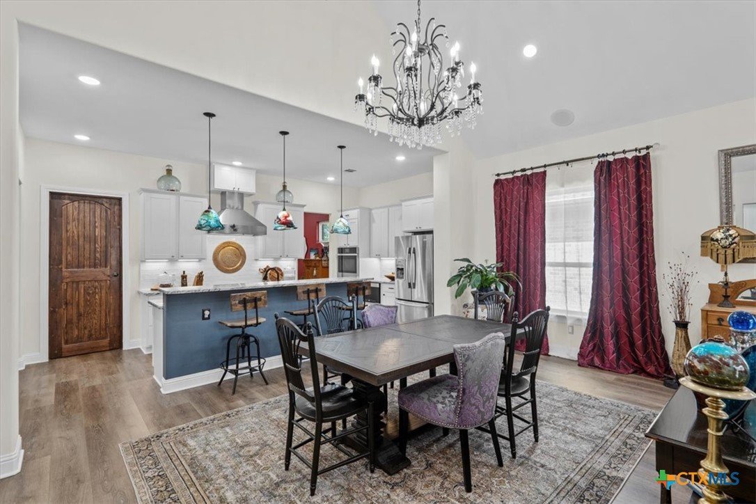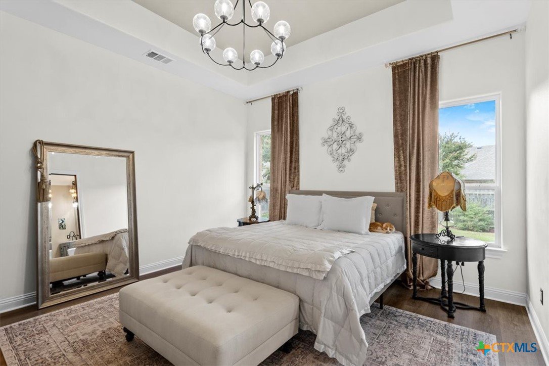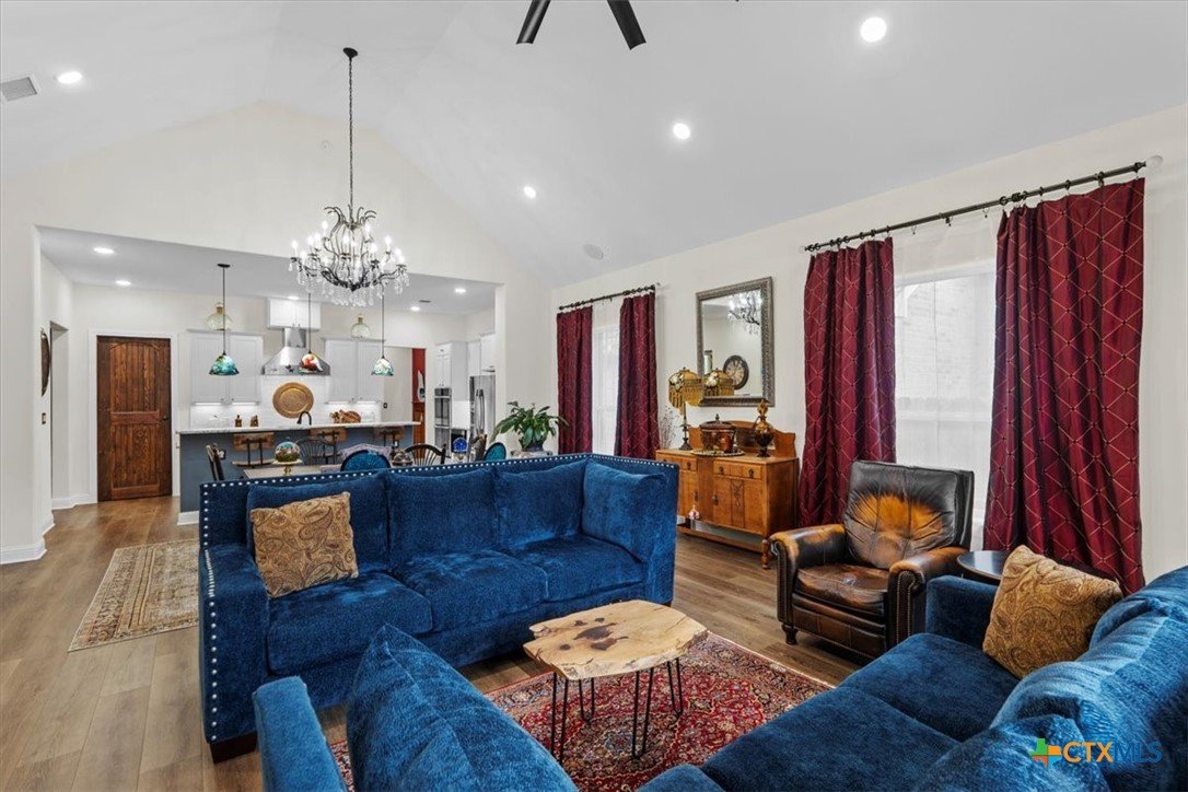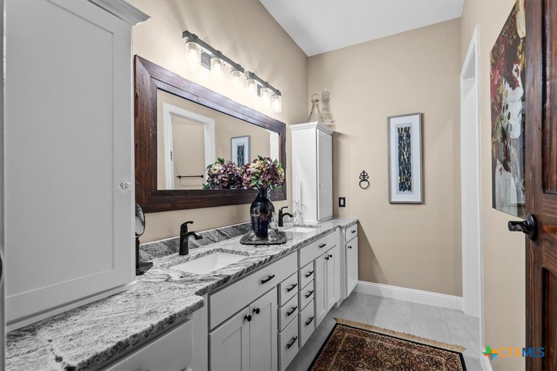 Welcome to this exceptional custom home, thoughtfully designed with luxurious interior upgrades and distinctive details throughout, nestled in the prestigious Deerfield community. This charming residence is situated on a corner lot with a unique half-moon driveway, offering both curb appeal and convenient access. Surrounded by mature trees, this property provides a peaceful and private setting, perfect for enjoying Texas sunsets and outdoor gatherings. This newer build combines modern comfort with thoughtful design. Enjoy close proximity to shopping centers, restaurants, and everyday conveniences to meet all your lifestyle needs. Healthcare is easily accessible too, with Scott & White and VA Hospitals just a short drive away. Whether you're seeking a serene neighborhood or a conveniently located home. The residence boasts unique custom lighting fixtures, including stunning Salado Glassworks pendant lights that gracefully illuminate the overhanging kitchen island, creating a warm and inviting ambiance. The home features oversized custom doors and built-in cabinetry, enhancing both style and functionality. Recently upgraded with an impact-resistant roof, providing added security and peace of mind. The open floor plan with soaring vaulted ceilings makes the living spaces feel spacious and airy—perfect for entertaining and everyday comfort. A designer steel front door adds a touch of modern elegance as you arrive. The exterior is beautifully landscaped with a full sprinkler system, custom stone and rock walkways, patios, and porches that invite outdoor gatherings and relaxation. Inside, indulge in a luxurious soaking garden tub nestled beneath a custom chandelier—a perfect retreat after a long day. The oversized master closet is thoughtfully designed with custom built-ins, offering ample storage and organization options.This home seamlessly combines style, durability, and functionality—creating the ideal sanctuary for comfortable living and memorable entertaining.