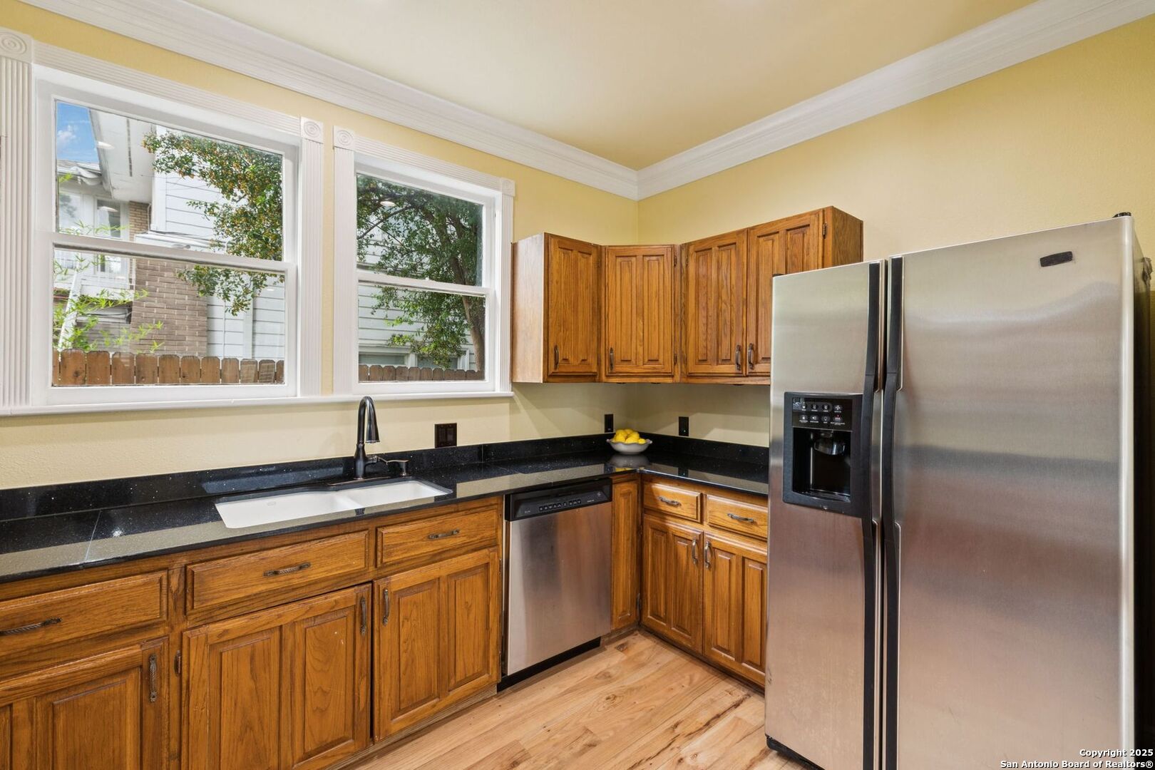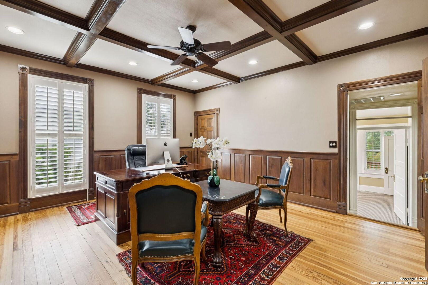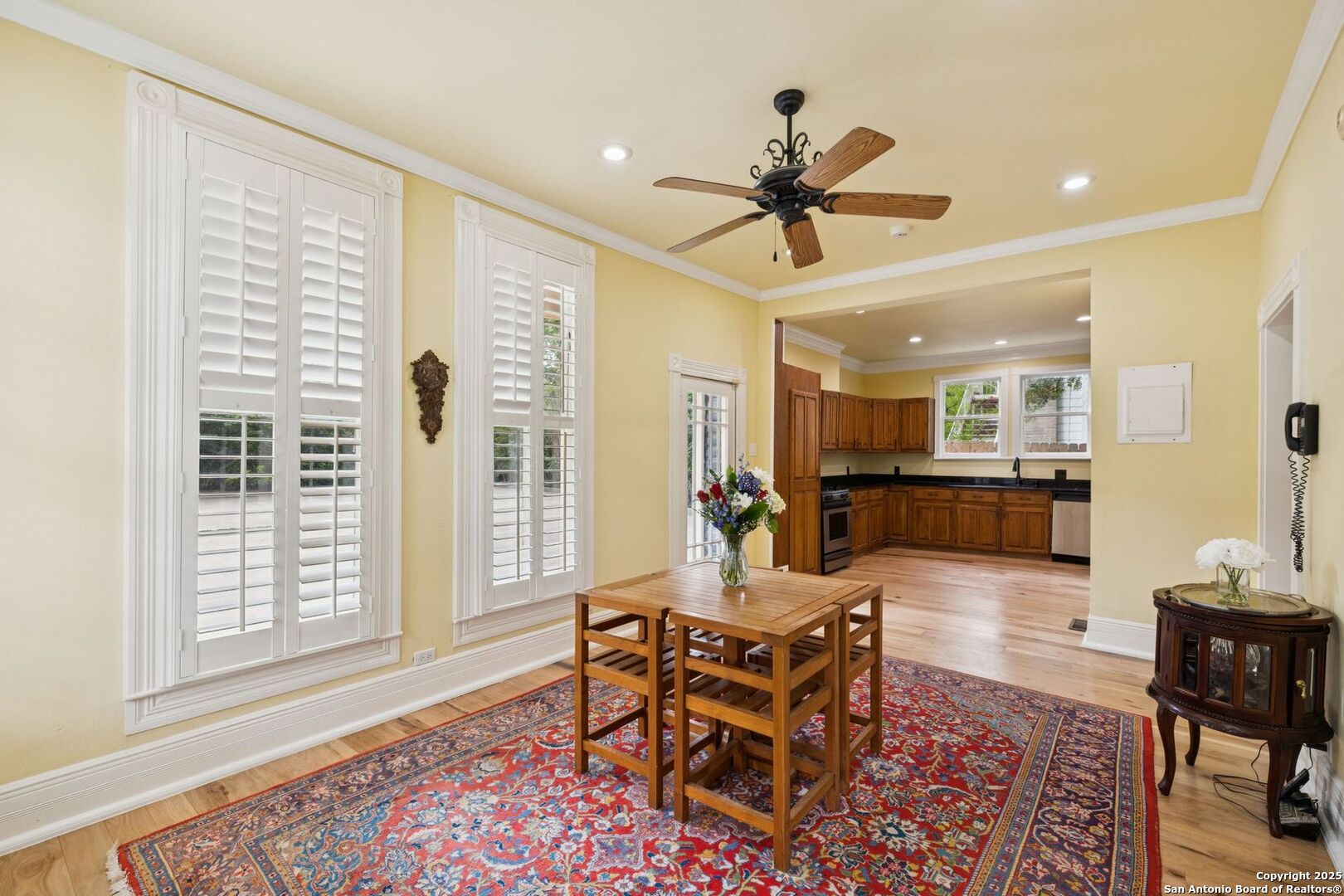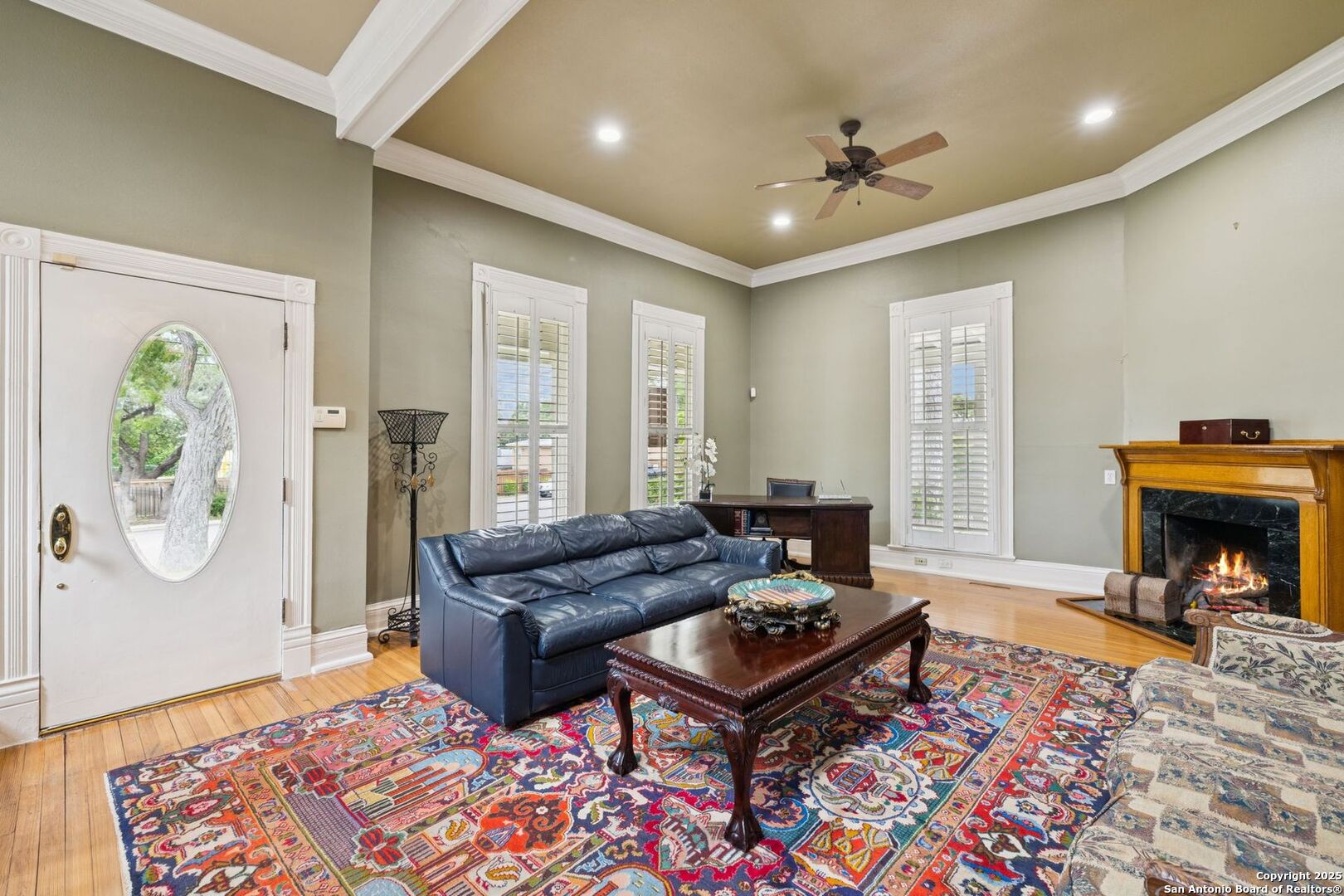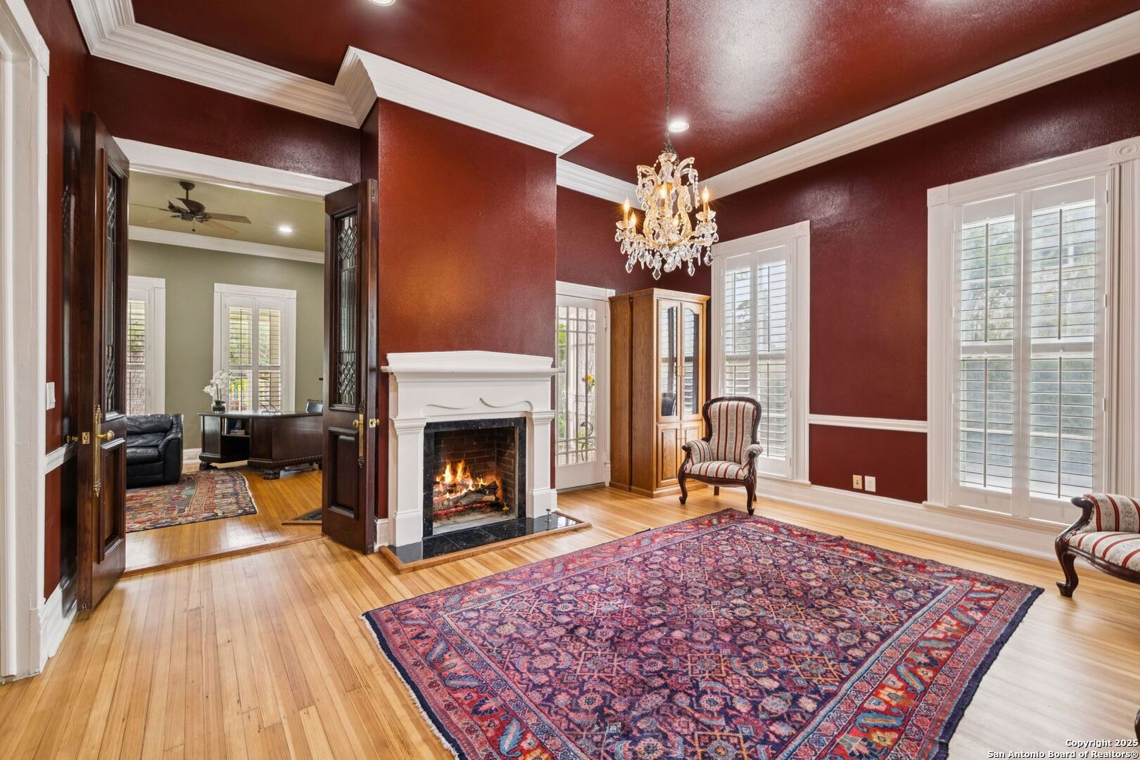 Seize this incredible chance to own a home in San Antonio's historic district. This stunning property in the coveted Monte Vista area sits on a .24-acre lot. Exuding historic charm, it is zoned commercial but is also ideal for residential use. Enjoy a prime location within walking distance of restaurants, shops, downtown, and the Pearl. The spacious and functional floor plan boasts high ceilings, hardwood floors, large windows, and abundant natural light. With ample parking, including a two-car garage and space for eight or more cars, you'll never worry about downtown parking. The gorgeous living area features a beautiful fireplace and chandeliers, offering a blend of class and sophistication. Don't miss this fantastic opportunity in the heart of San Antonio!