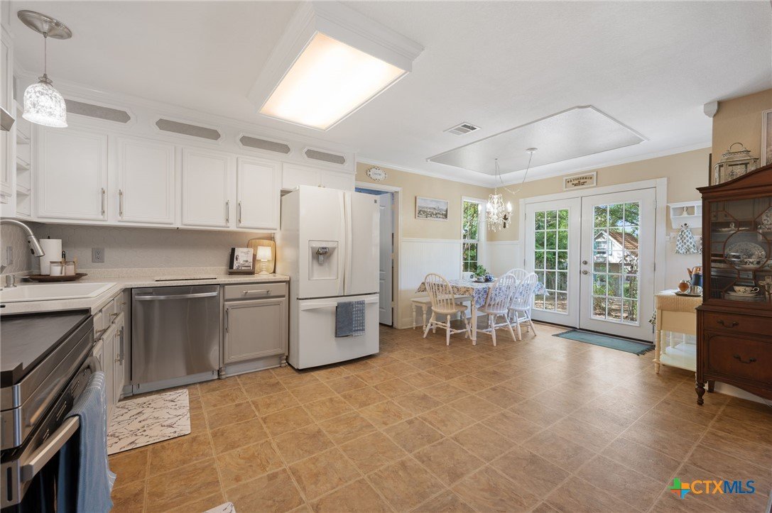 Your Private Sanctuary Moments from Historic Georgetown. Welcome to a home where thoughtful design meets nature. Tucked away in University Park, this property isn't just a house; it’s a retreat. Imagine weekends spent strolling to the Historic Square or sipping coffee on your back patio, overlooking a lush, HOA maintained greenbelt framed by a canopy of mature trees. Inside, the home is bathed in natural light. The floor plan flows effortlessly through three living areas, including a versatile loft. The showstopper is undoubtedly the brand-new 2024 kitchen. Professionally designed with custom cabinetry and gleaming stainless appliances, it is built for both the serious cook and the casual entertainer. Step through the new French doors to enjoy your own slice of paradise complete with a charming custom playhouse, sweet summer harvests from your peach tree, and a front yard that serves as a pollinator's haven for butterflies. With a new roof, new HVAC, and ‘carpet free’ luxury vinyl plank flooring, the "heavy lifting" has already been done for you. Combine this with low property taxes and a low HOA, and you have a rare find: elegant living that makes financial sense. *** Sellers absolutely love the home and are forced to relocate for work ***