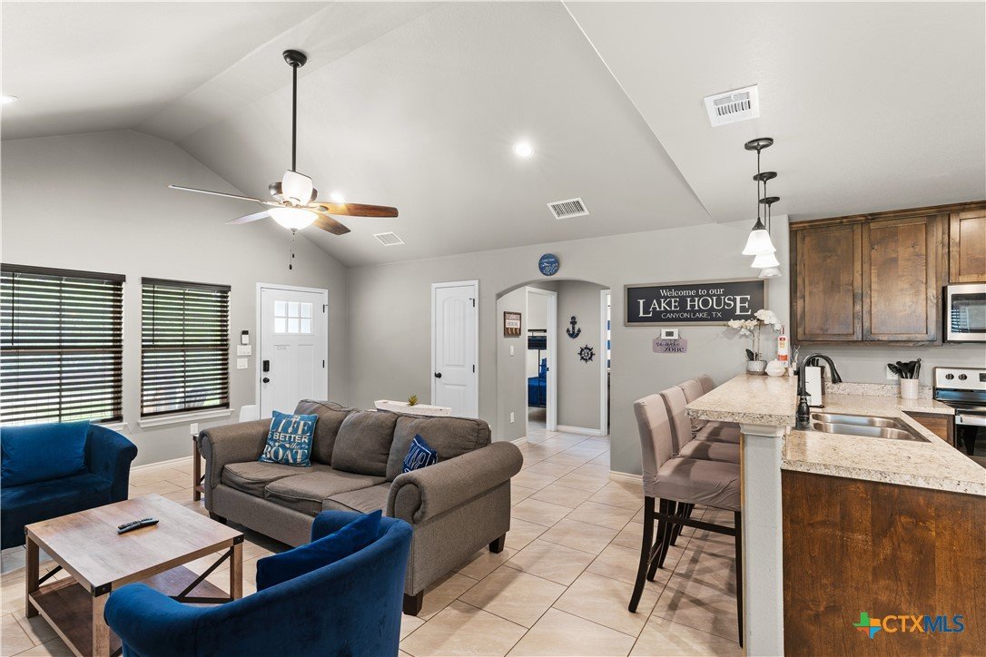Whether you're looking for your forever home or investing in a vacation rental, look no further. This 3-bedroom, 2-bathroom home in a quiet, family-friendly neighborhood is the perfect space to unwind. The open living/dining/kitchen area with large breakfast bar is perfect for entertaining. The front porch and pack covered patio provide a great opportunity to star gaze or enjoy the quiet. This home is listed fully furnished but seller is open to meeting buyer needs. This home has a 5 star ranking on Airbnb and guests rave about the cozy space and the friendly wildlife that often approach. The country views are so serene and this is a friendly community with great amenities located just one more from Comal Park beach area. Don't miss this amazing opportunity to own a slice of heaven or wonderful income producing property.