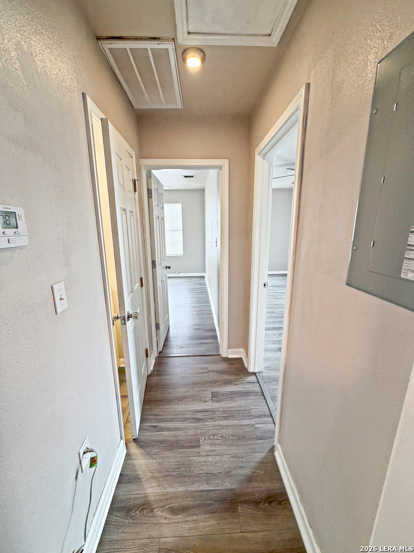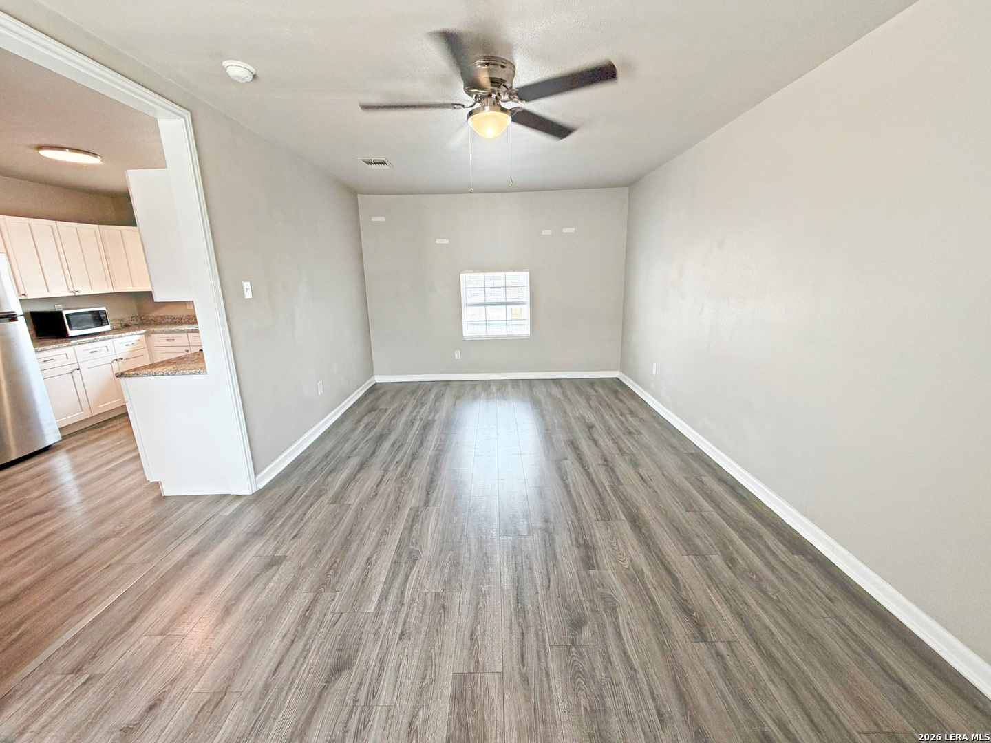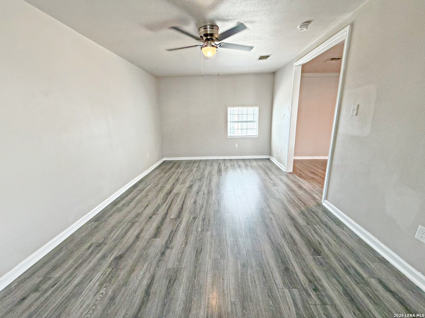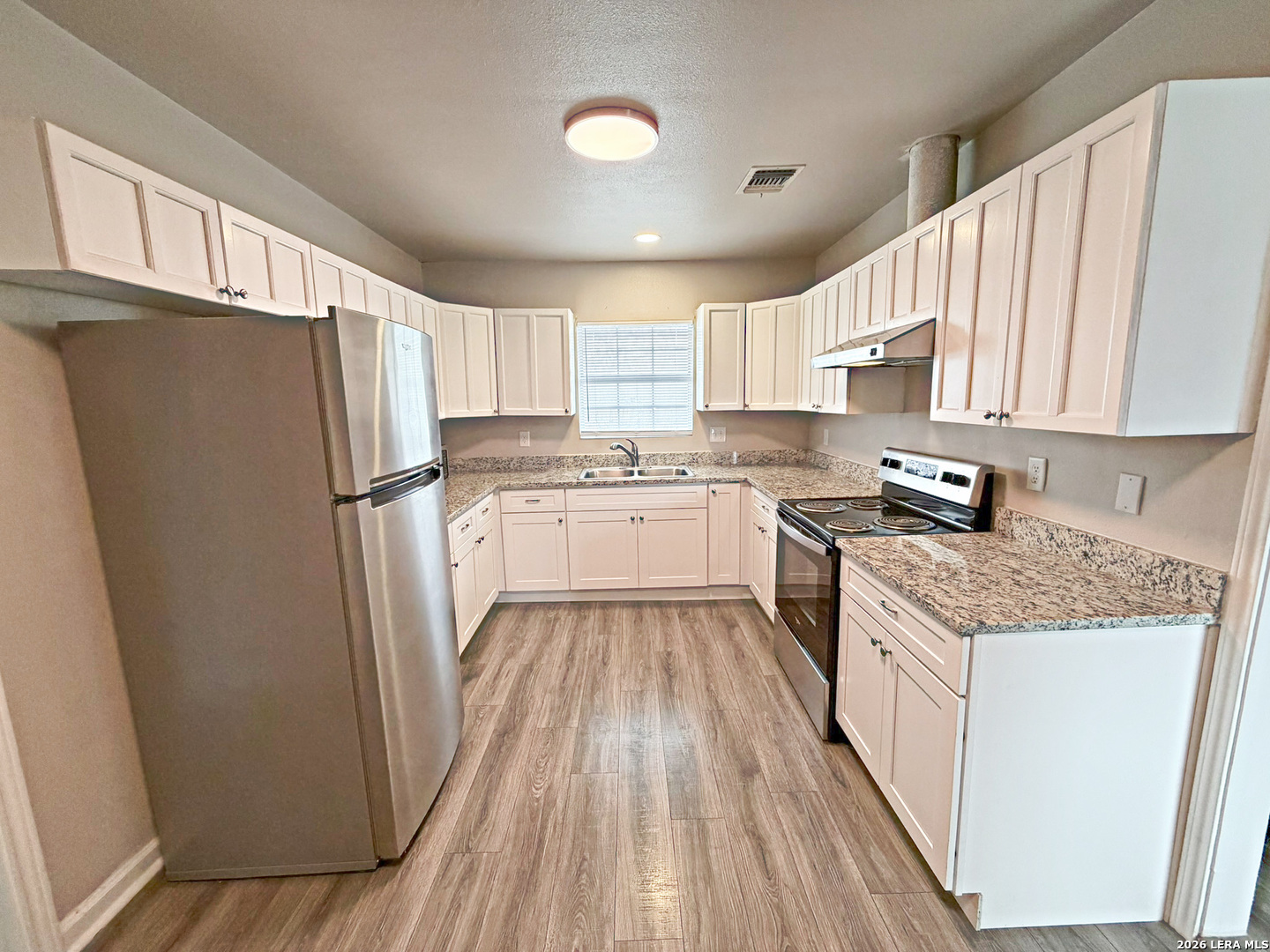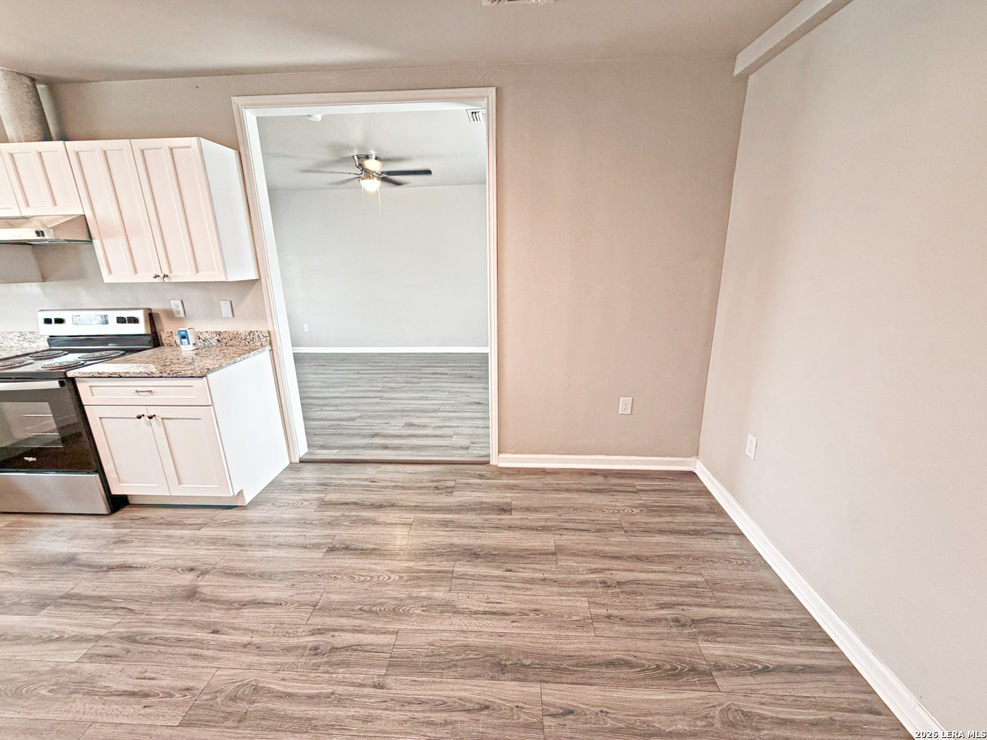 Modern 2 bedroom, 1 bath apartment. 2nd floor unit w/wood look vinyl flooring throughout. No carpet. Kitchen has granite counters, stainless steel appliances to include refrigerator. Ceiling fans in bedrooms; large shower in bathroom. Washer & dryer on 1st floor. Plenty of parking. Minutes from downtown. Short drive to the Medical Center. Water & Electricity is allocated.