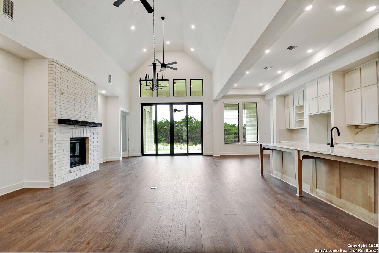 Highland Homes Verona Plan is Breath taking! The high ceilings and open-concept living area would make the home feel airy and welcoming. The Modern kitchen with quartz countertops is a nice touch for those who love to cook and entertain. Plus, with all bedrooms featuring on suite bathrooms, privacy is definitely a priority in this design. The secluded study and cozy entertainment room are great additions for versatility and comfort. This home has an oversized back yard that backs to Wooded Green Space! What a View!