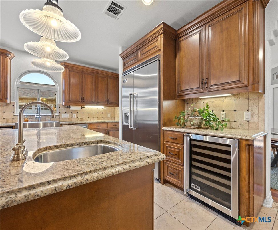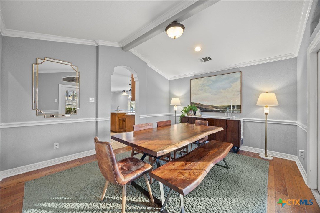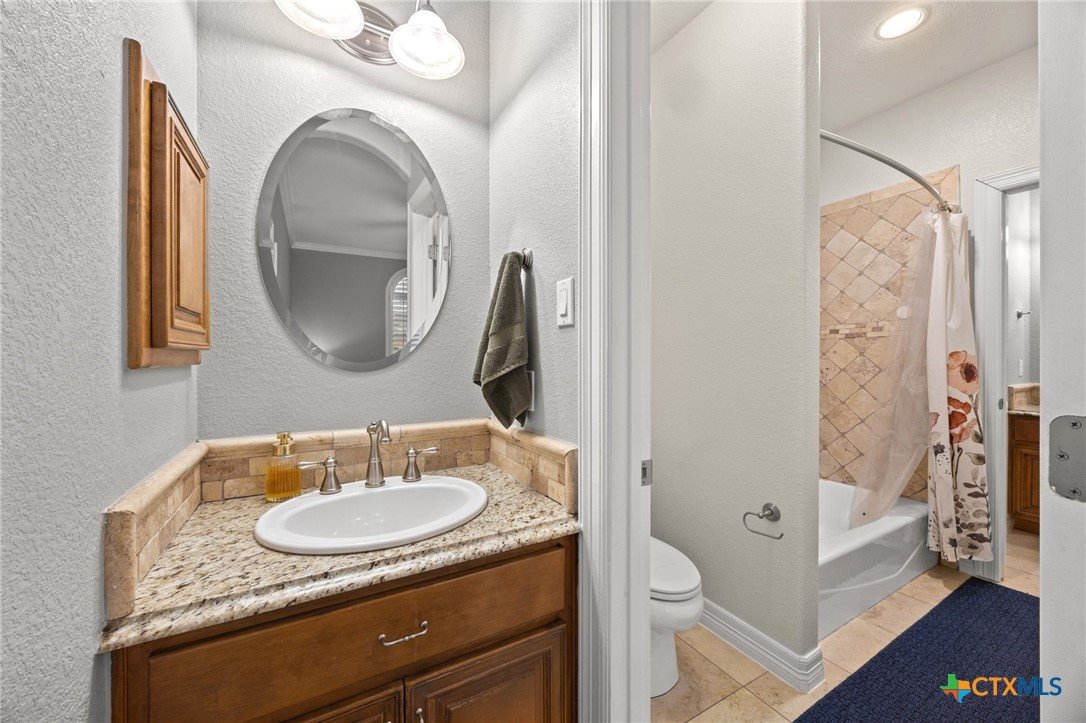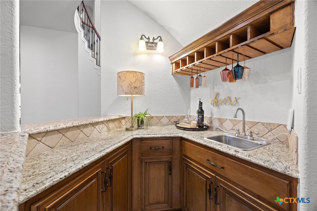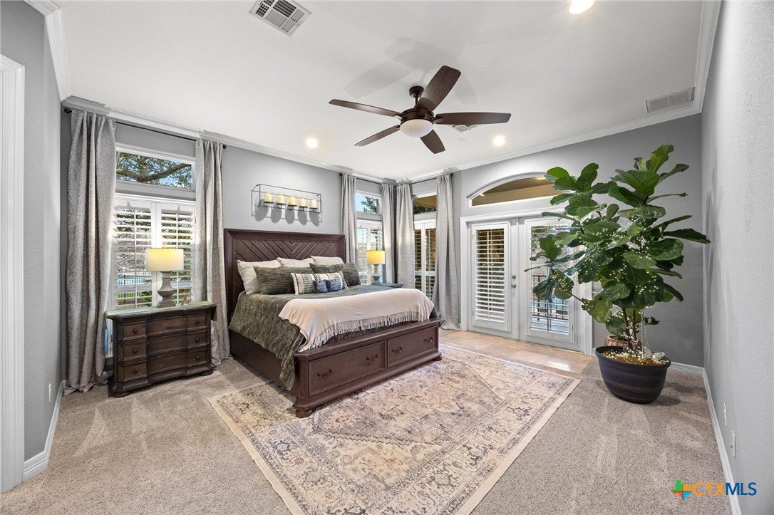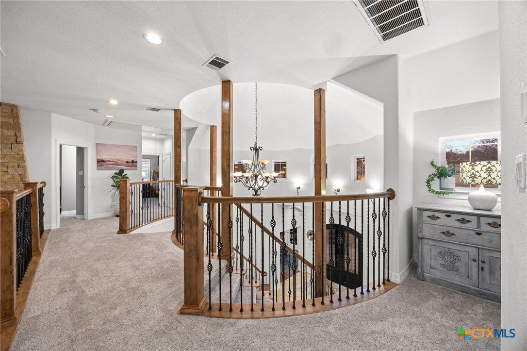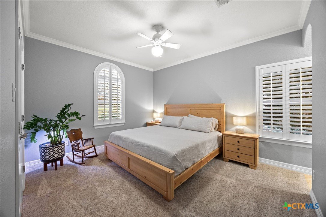 Just minutes from Lake Georgetown, this magnificent estate offers privacy, space, a resort-style backyard, & breathtaking natural views on one of Georgetown’s most desirable greenbelt lots. Set on 1.4 acres backing to a serene creek that leads to Lake Georgetown, the property welcomes you with a long driveway that leads to a porte-cochere & a 4-car detached garage with a brand-new HVAC system. An oversized front porch sets the tone, & upon entry, you’re greeted by soaring ceilings & a dramatic grand double staircase. The formal living room features a wet bar, built-in cabinetry, & a stunning floor-to-ceiling double-sided fireplace shared with the family room—perfect for both refined entertaining & everyday living. The kitchen impresses with expansive granite countertops, abundant stained wood cabinetry, stainless steel appliances, & a pantry, flowing seamlessly into the formal dining room with access to the front porch. A dedicated office with a fireplace, & porch access provides a private workspace. The primary suite offers direct patio access & a spa-like ensuite bath with dual vanities, a jetted soaking tub, a frameless glass shower with seating, & a generous walk-in closet with built-ins. Upstairs, four spacious bedrooms offer unmatched flexibility, all connected by Jack-&-Jill bathrooms. Step outside to a backyard oasis where unforgettable moments unfold—picture afternoons spent lounging beneath the large covered patio, guests enjoying the pool complete with a hot tub, waterfall feature, & slide, and fun evenings as meals are prepared in the outdoor kitchen in the cabana. Gather around the outdoor fireplace & soak in the serene, true resort-style atmosphere thoughtfully designed for both entertaining & everyday relaxation. Beyond the yard, a large shed with a porch overlooks the stunning Corps of Engineer property & the creek, creating a quiet retreat. All of this comes with no HOA & a prime location close to shopping, dining, recreation, & desirable schools.
