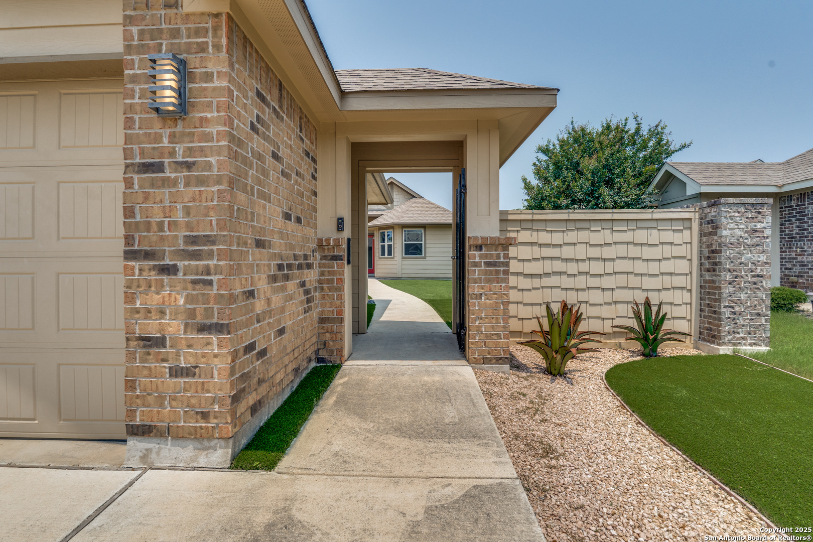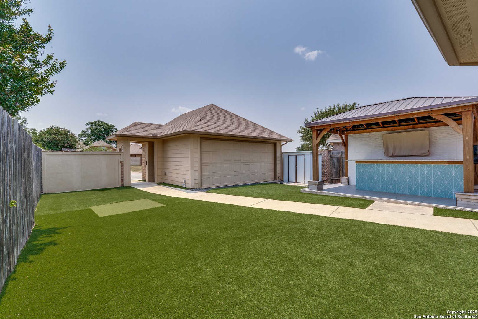 Welcome to your dream home! Nestled just off Hwy 35 in beautiful San Marcos, this charming single-story 3-bedroom, 2-bathroom gem is nestled on a quiet cul-de-sac, offering both privacy and modern elegance. The front yard boasts low-maintenance artificial turf, leading to a delightful courtyard connecting the home to a detached garage, complete with a stylish covered outdoor bar and a pergola-perfect for entertaining or relaxing under the stars. Step inside to discover a beautifully updated kitchen featuring sleek waterfall quartz countertops and contemporary finishes. A chic sliding barn door conceals the laundry room, adding a touch of rustic charm to this move-in-ready home. With its thoughtful design and prime location, this property is a must-see for those seeking comfort and style!