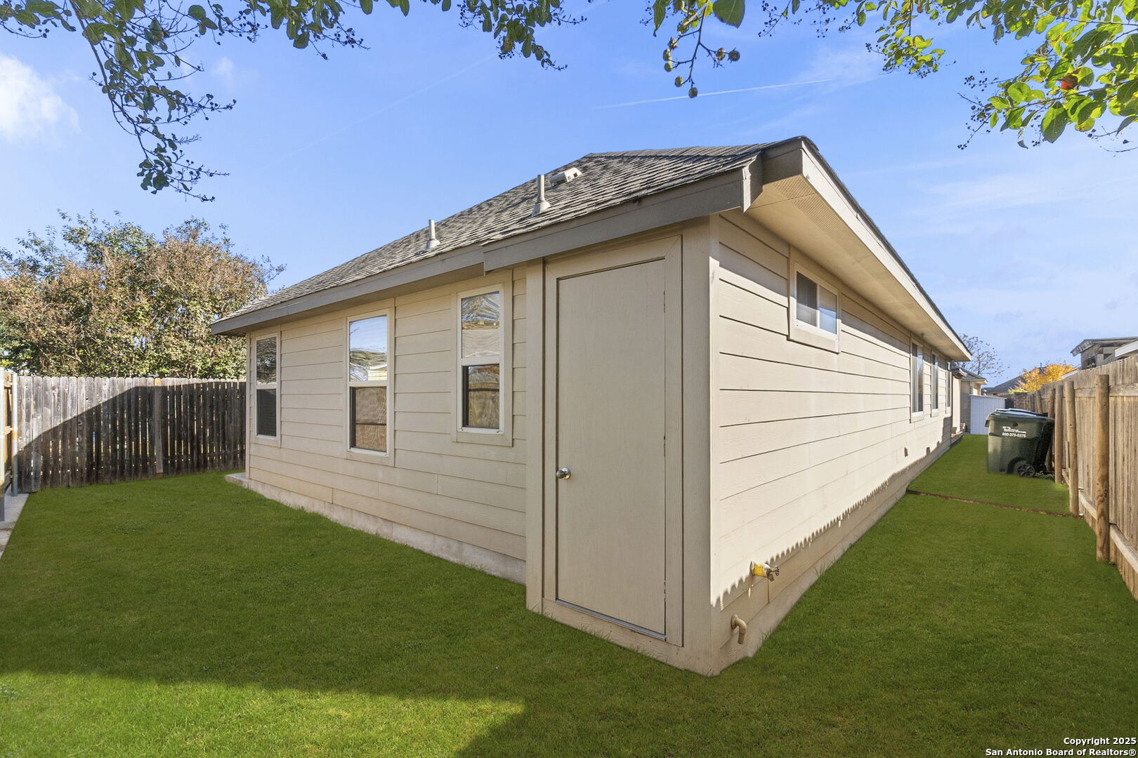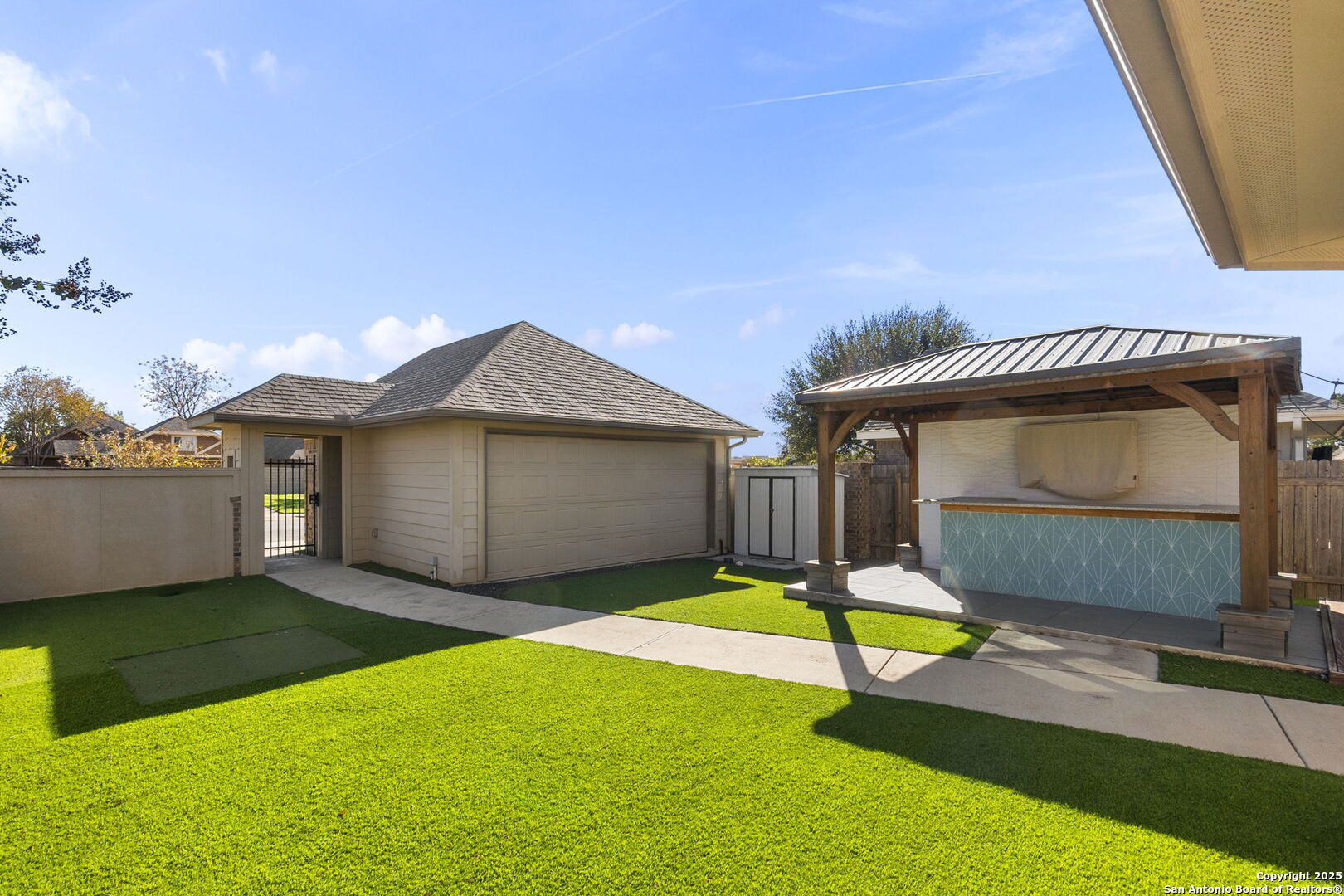 Welcome to 234 Rock Bluff ,a beautifully maintained home that blends modern comfort with timeless charm. Situated in a quiet, well established neighborhood and Conveniently located near IH-35. This single-story 3-bedroom, 2-bath home sits at the end of a private cul-de-sac, and private back yard for extra peace and privacy. The zero-scape front yard offers easy maintenance and leads into a cozy courtyard complete with a covered outdoor bar with tv and pergola perfect for relaxing or hosting friends. Step Inside to an open floorpan with Modern finishes. The updated Kitchen features sleek waterfall quartz countertops, Stainless steel appliances, Gas stove & Refrigerator Conveys. Spacious Living room with lots of windows for natural light. The Owner's suite provides a peaceful retreat with generous closet space and well appointed ensuite bath.The secondary bedrooms offer flexibility for family, guest or a home office. The Detached Garage is equipped with a water softener for extra convenience. Neighborhood amenities include pool, park, playground, walking trails. Elementary school IS just a short walk away, the location couldn't be more practical. This move-in-ready home blends comfort, style, and convenience. Schedule your showing today !