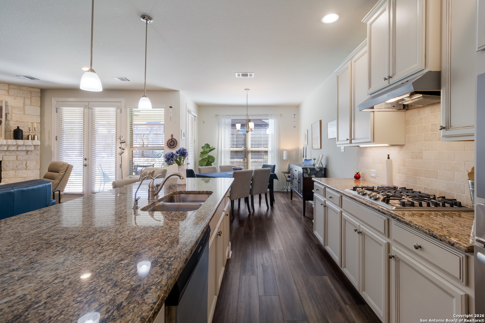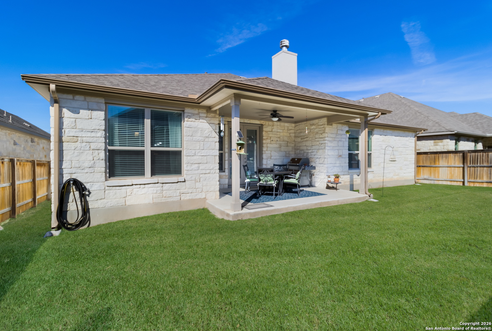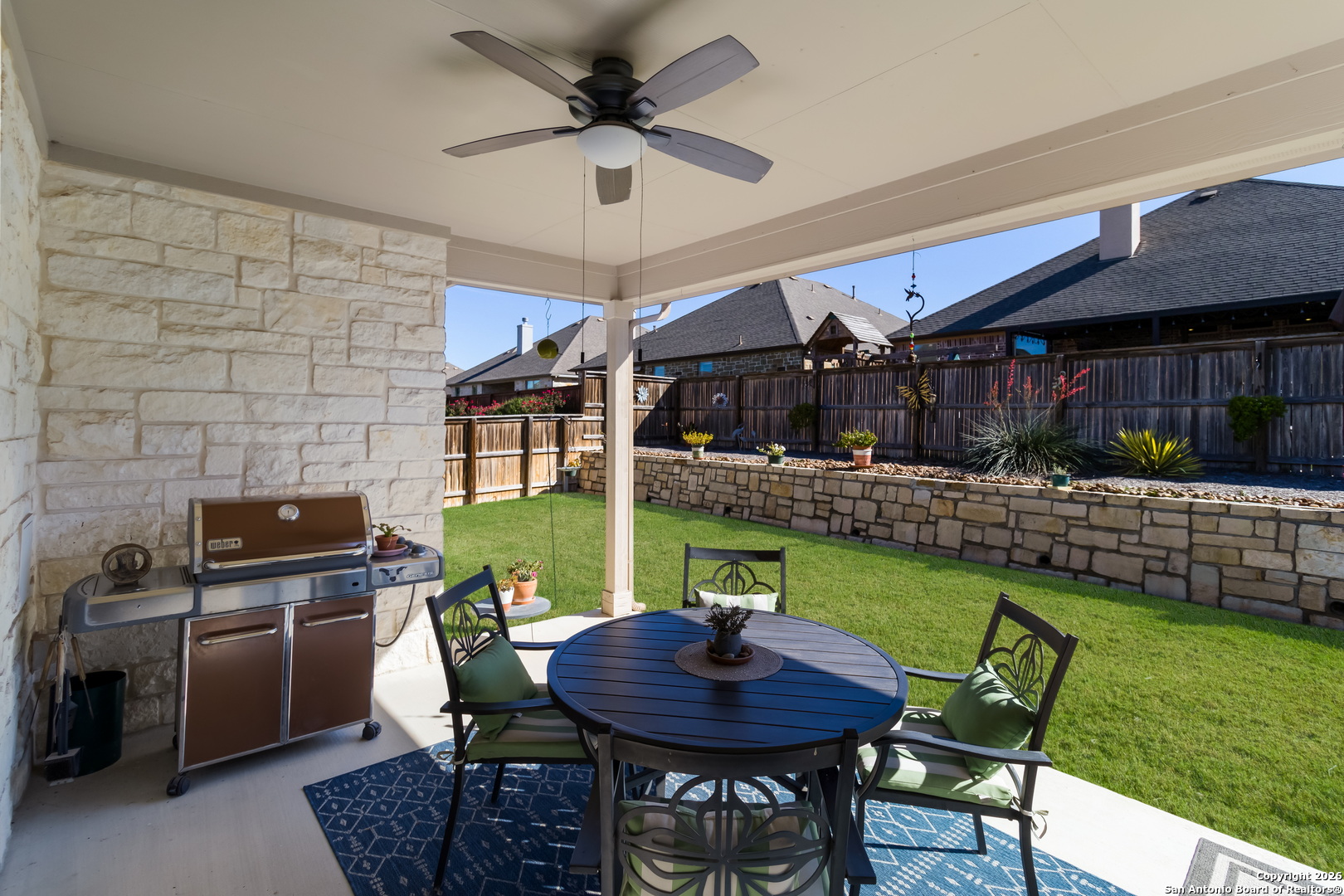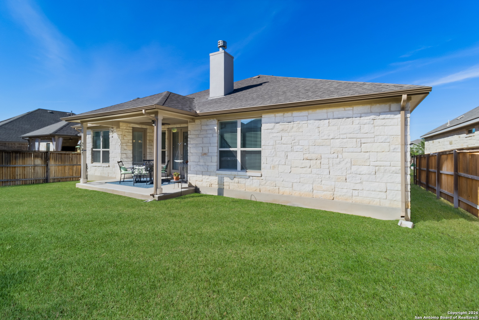 Step into a home where comfort, style, and everyday luxury come together seamlessly. This stunning 4-bedroom, 2.5-bath, residence with a spacious 3-car garage is just 6 years old and set within a meticulously manicured neighborhood-perfect for creating lasting memories. Conveniently located within 1.5 miles of everyday amenities, this move-in-ready home is priced to sell and shows beautifully. Upon entry, a wide, welcoming foyer accented by decorative arches sets an elegant tone, while abundant natural light and an array of windows create a bright, inviting atmosphere throughout. The open-concept layout is thoughtfully designed for both connection and comfort, anchored by a striking stone fireplace that adds warmth and character to the main living area. At the heart of the home, the chef-inspired kitchen features gas cooking and an impressive oversized island that comfortably seats up to six-ideal for entertaining, casual meals. Premium upgrades include water filtration system, a whole-home water softener, gas Weber Grill and S/S S/S refrigerator enhancing both comfort and quality of living. Secondary bedrooms are generously sized, including one that easily accommodates a king-size bed. A conveniently located half bath is perfect for guests, while the oversized laundry room adds everyday functionality. The expansive primary suite serves as a private retreat, complete with a spa-like bathroom featuring a soaking tub, walk-in shower, and dual vanities. The primary bedroom has 2 large walk-in closets. The impressive 10-foot walk-in closet offers exceptional storage and flexibility. Enjoy peaceful mornings on the covered front porch and unwind in the evenings on the covered back porch, both overlooking beautifully manicured front and back yards. The 3-car garage provides ample space for vehicles, storage, or hobbies-offering room to live comfortably and intentionally. This exceptional home delivers a rare blend of luxury, warmth, and thoughtful design in a welcoming community. Large community swimming pool and playground along with a wonderful nature trail.