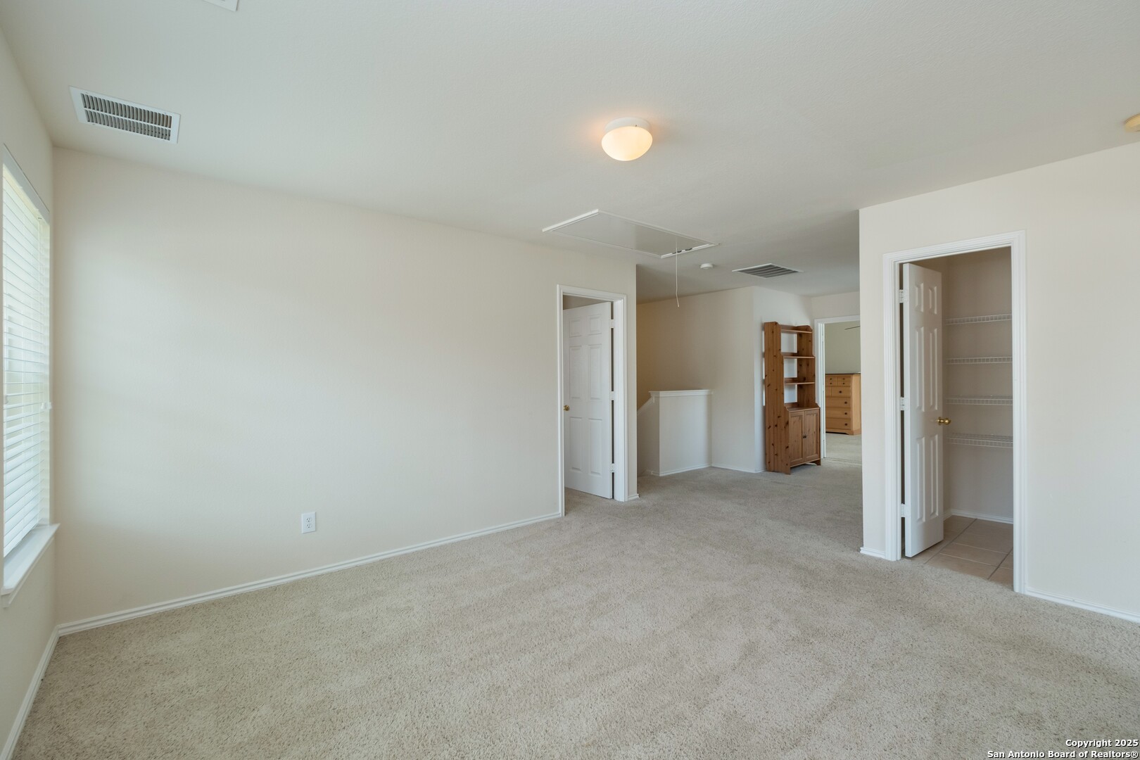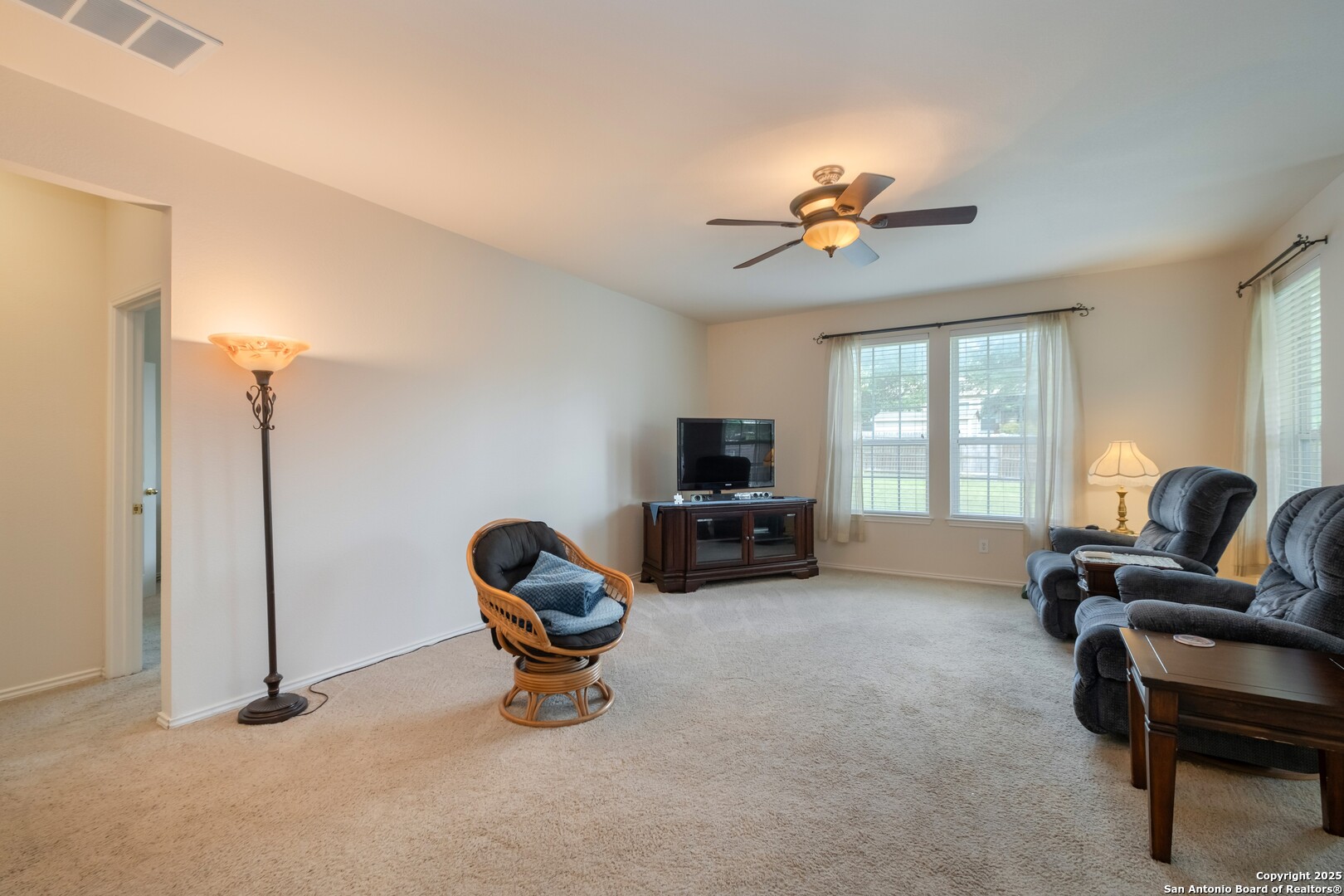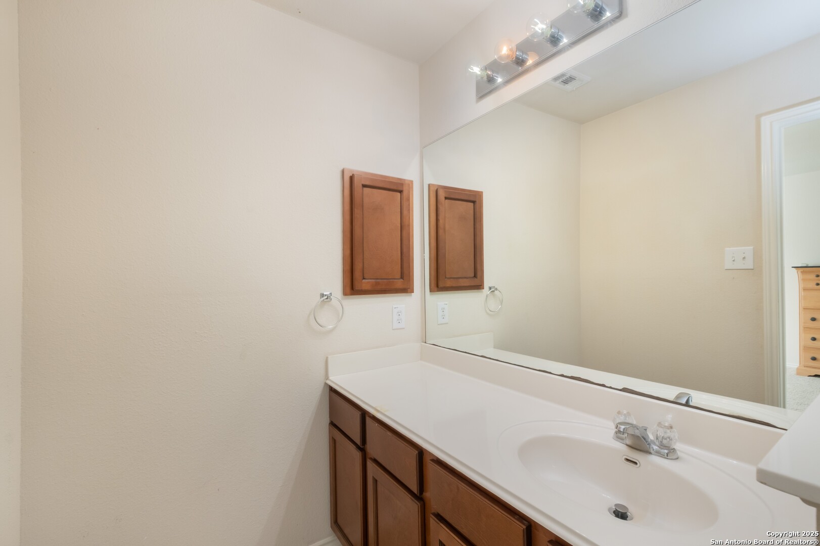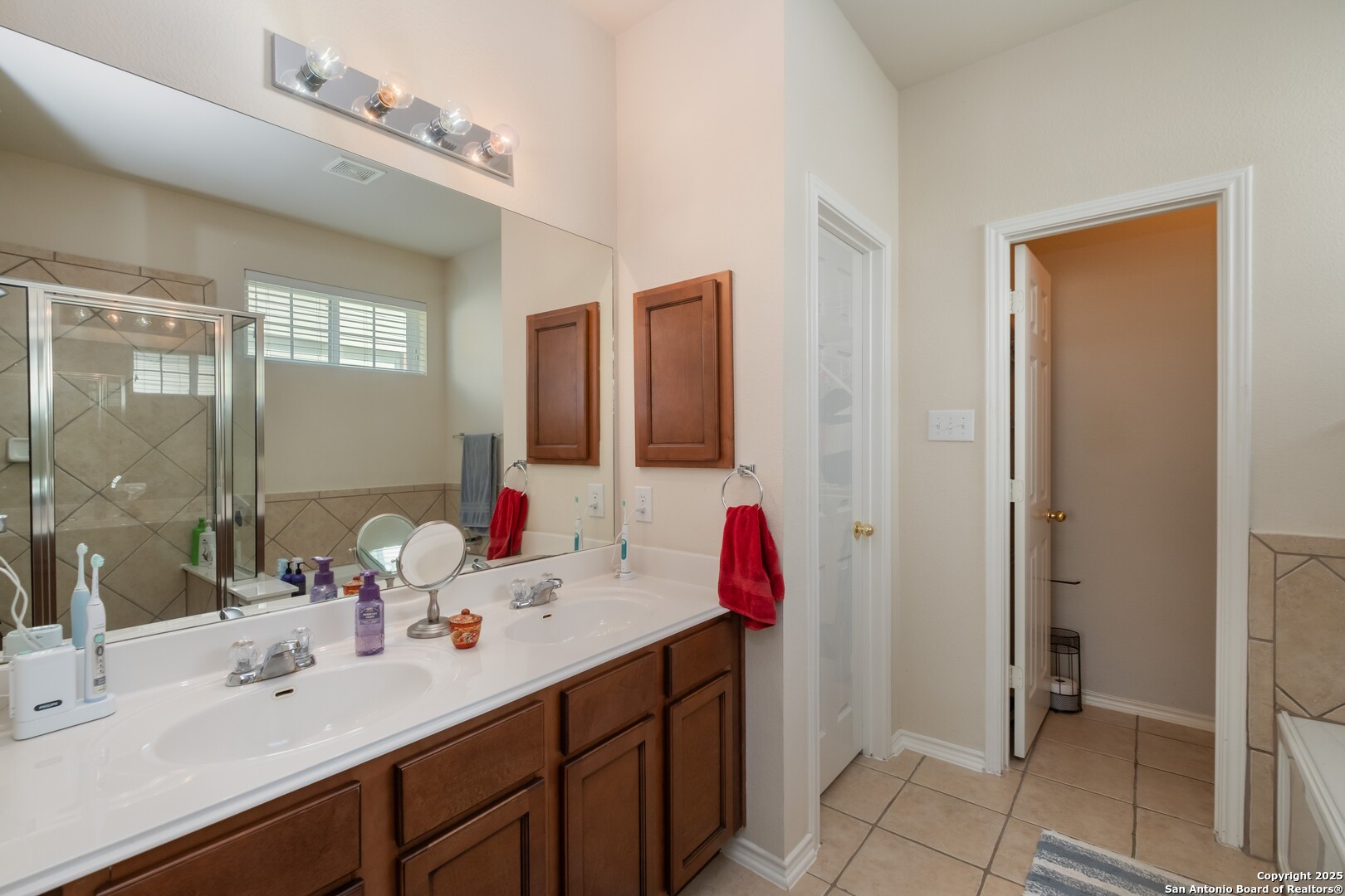 This beautiful 2-story, 4-bedroom, 3.5-bath home offers 2,496 sq ft of living space on a 0.20-acre lot situated near the end of a cul-de-sac in the desirable Bentwood Ranch community. Ideally located just minutes from major retail options including Walmart and H-E-B, as well as J. Frank Dobie Junior High School, the home offers convenience, space, and comfort in one inviting package. The open floor plan seamlessly connects the main living area with the kitchen and breakfast nook, creating a welcoming space for everyday living and entertaining. The kitchen features a breakfast bar, an island, and ample cabinetry, along with tile flooring that continues through the foyer, hallway, and breakfast area. A separate formal dining room provides an additional eating space for special occasions. This home features two living areas: one on the main level and another upstairs, which serves as a bonus room, ideal for a media room, game room, or a flexible family space. There are also two primary bedrooms: one located downstairs with a walk-in closet and an ensuite bath featuring dual vanities, a garden tub, and a walk-in shower; and another upstairs with its own walk-in closet and an ensuite bath with a single vanity and walk-in shower. All bedrooms are carpeted for comfort. Additional updates include a new roof installed in 2024 and a new AC unit in 2023, both with transferable warranties. The water heater, located in the attic, was installed in 2016. Quarterly pest control has been regularly maintained, adding to the home's care and upkeep. The spacious backyard is fully enclosed with a wooden fence, offering privacy and room to enjoy outdoor activities. The attached two-car garage adds convenience, and the neighborhood offers access to a community pool, playground, sports courts, community mailboxes, curbs, and sidewalks. Please note that HOA dues are subject to change quarterly, and access to the pool and playground requires purchasing a fob from the HOA. This home offers a flexible layout and unbeatable access to community amenities and everyday essentials.
