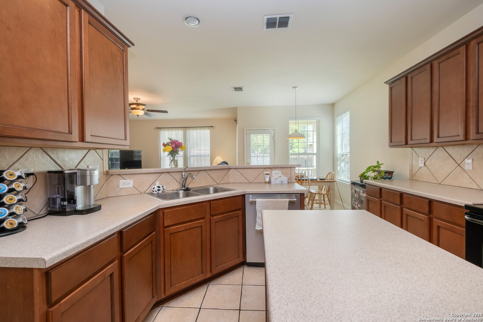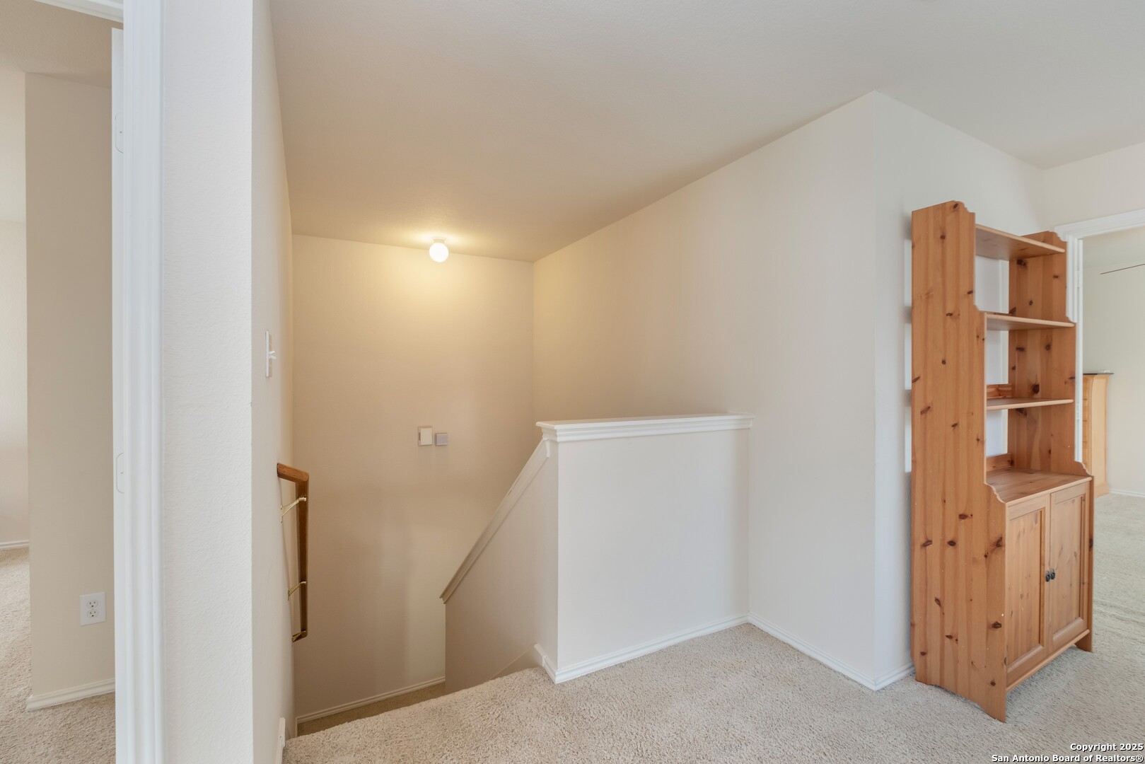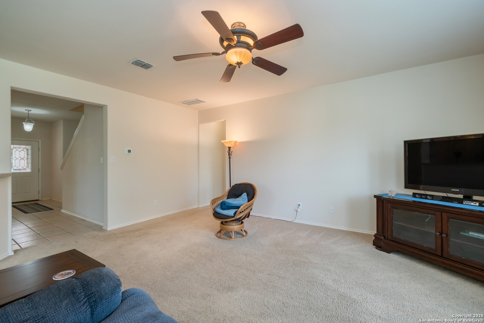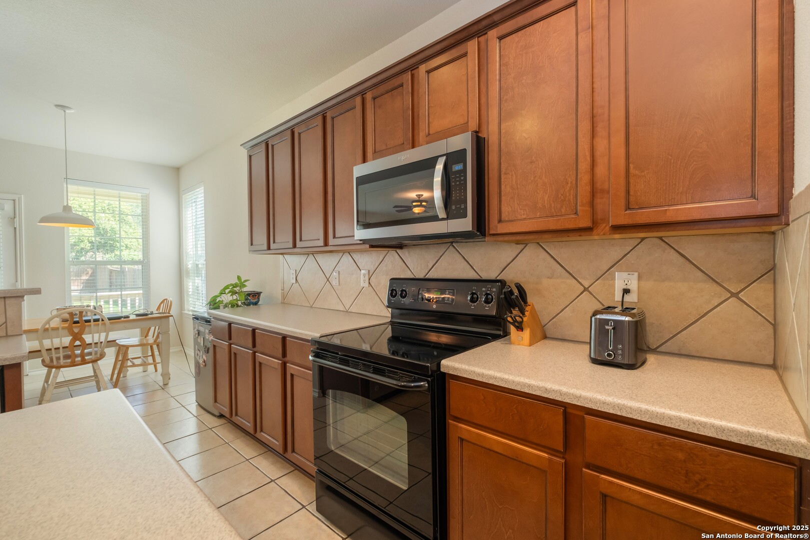 This beautiful 2-story, 4-bedroom, 3.5-bath home offers 2,496 sq ft of living space on a 0.20-acre lot situated near the end of a cul-de-sac in the desirable Bentwood Ranch community. Ideally located just minutes from major retail options including Walmart and H-E-B, as well as J. Frank Dobie Junior High School, the home offers convenience, space, and comfort in one inviting package. The open floor plan seamlessly connects the main living area with the kitchen and breakfast nook, creating a welcoming space for everyday living and entertaining. The kitchen features a breakfast bar, an island, and ample cabinetry, along with tile flooring that continues through the foyer, hallway, and breakfast area. A separate formal dining room provides an additional eating space for special occasions. This home features two living areas: one on the main level and another upstairs, which serves as a bonus room, ideal for a media room, game room, or a flexible family space. There are also two primary bedrooms: one located downstairs with a walk-in closet and an ensuite bath featuring dual vanities, a garden tub, and a walk-in shower; and another upstairs with its own walk-in closet and an ensuite bath with a single vanity and walk-in shower. All bedrooms are carpeted for comfort. Additional updates include a new roof installed in 2024 and a new AC unit in 2023, both with transferable warranties. The water heater, located in the attic, was installed in 2016. Quarterly pest control has been regularly maintained, adding to the home's care and upkeep. The spacious backyard is fully enclosed with a wooden fence, offering privacy and room to enjoy outdoor activities. The attached two-car garage adds convenience, and the neighborhood offers access to a community pool, playground, sports courts, community mailboxes, curbs, and sidewalks. Please note that HOA dues are subject to change quarterly, and access to the pool and playground requires purchasing a fob from the HOA. This home offers a flexible layout and unbeatable access to community amenities and everyday essentials.