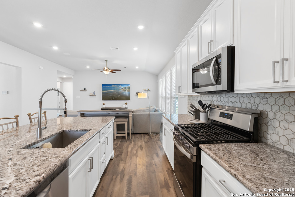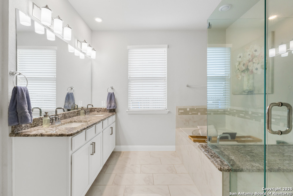 Motivated Sellers, offering to pay up to $5,000.00 towards Buyer's Expenses. Located in the desirable Sienna neighborhood off 1604 and North Highway 281, this gorgeous one-story home offers 3 bedrooms, 2 bathrooms, and a bright open layout perfect for modern living. The spacious kitchen features granite countertops, stainless steel appliances, and an island with bar seating that flows seamlessly into the living area-ideal for entertaining and family gatherings. A versatile dining or flex space off the kitchen can serve as a formal dining room, home office, playroom, or cozy reading nook. The primary suite provides a peaceful retreat, complete with dual vanities, a soaking tub, and a separate shower. Step outside to a covered patio and a generous backyard, perfect for relaxing or outdoor fun. Surrounded by top-rated schools, shopping, and dining, this beautifully maintained home combines comfort, style, and convenience in one of the area's fastest-growing communities-ready to welcome you home.