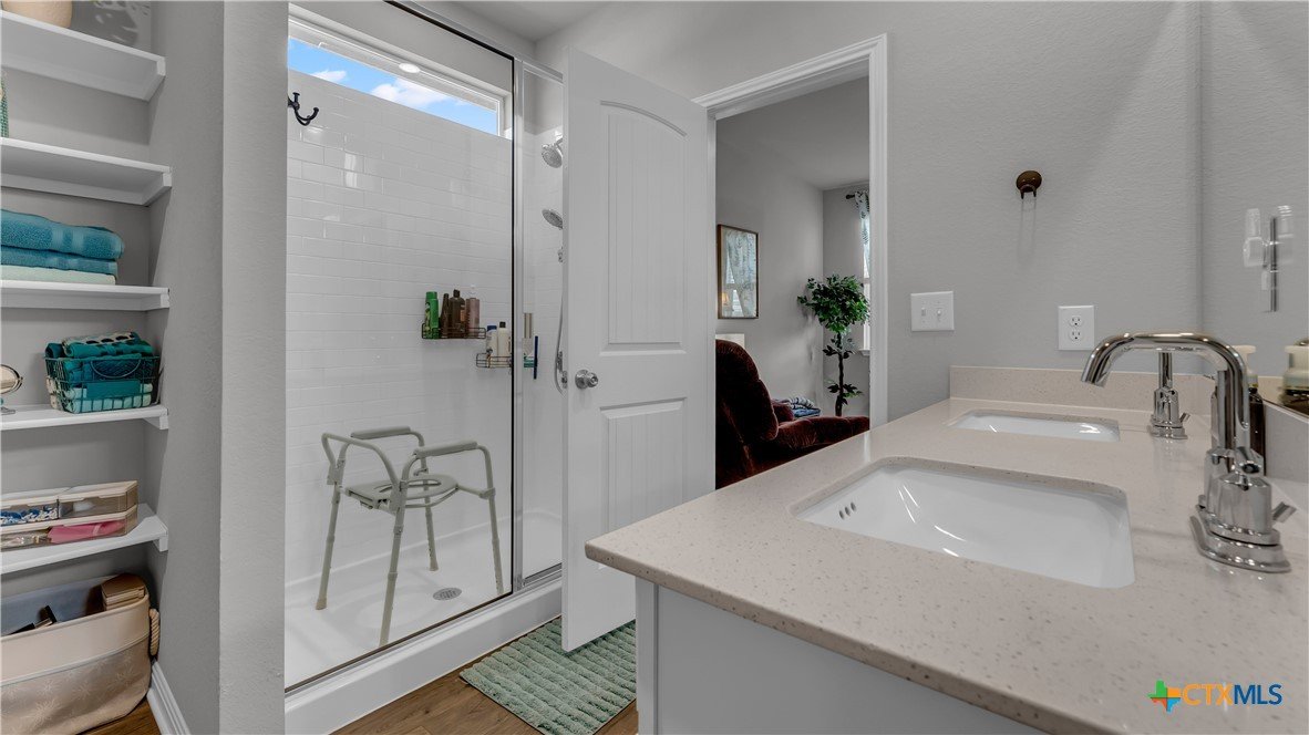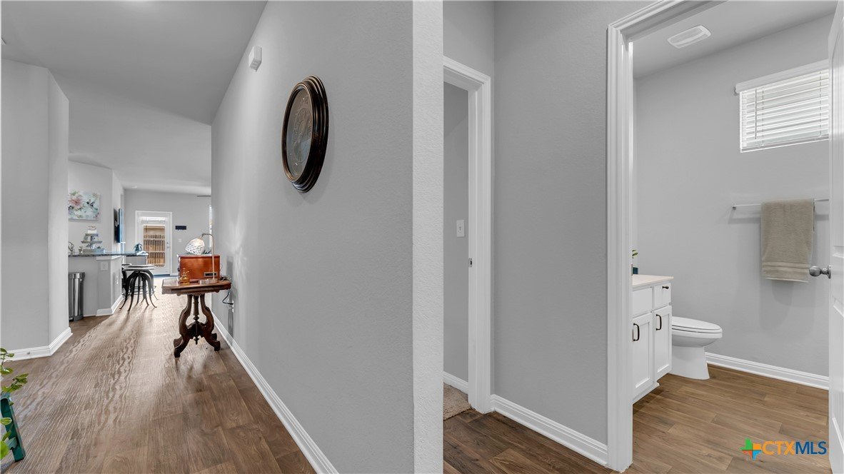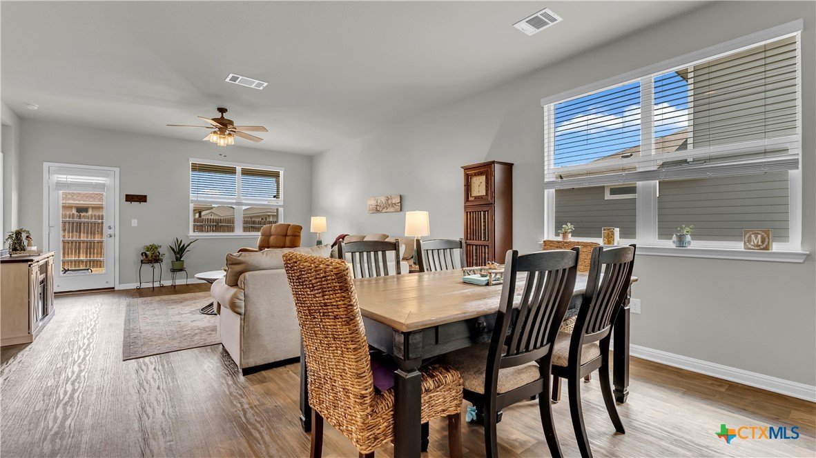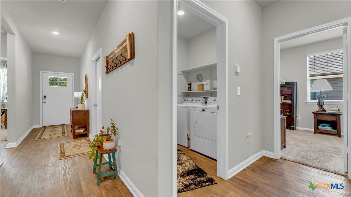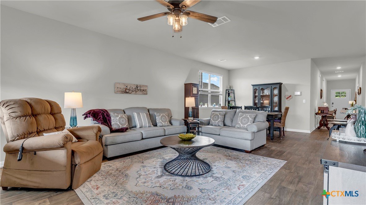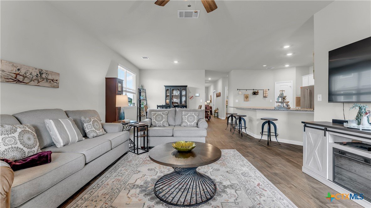 Built in 2021 by DR Horton, this beautiful home is located in the popular, family friendly Dove Meadows subdivision of Bertram. Inside, you’ll find granite countertops throughout, a kitchen with a long bar perfect for gathering and casual dining, and a spacious master suite featuring his-and-her walk-in closets and double vanities. The home offers comfortable carpet in the bedrooms and durable vinyl plank flooring in the main living areas. Enjoy outdoor living with covered front and back porches, a landscaped yard with irrigation in both the front and back, and a fenced, private backyard. Additional features include insulated windows, partial gutters, and the convenience of a washer, dryer, and refrigerator, all of which convey with the sale.