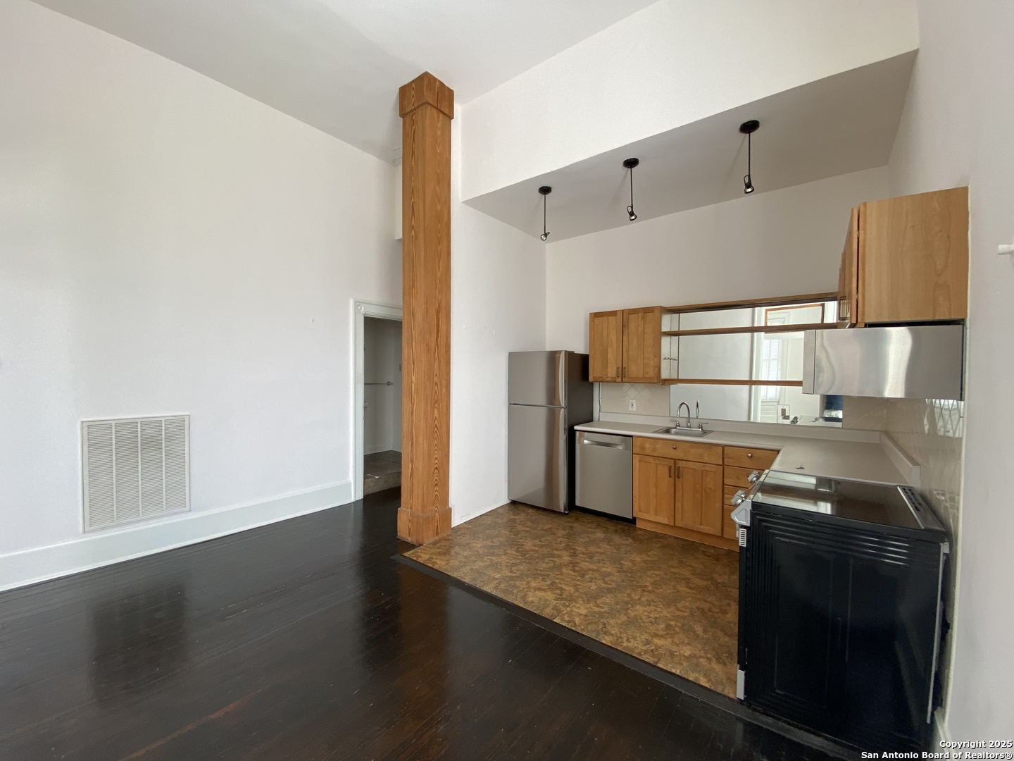 Take advantage of this rare opportunity to live in an elegantly updated historical apartment. Built by George W. Breckenridge in 1902 this fifth floor gem features an elevator, high-ceilings, air-conditioning, two bedrooms and two bathrooms, natural light and great views of downtown San Antonio. It is positioned less than five-hundred feet from the Riverwalk, a half-block fro the Aztec theatre and is surrounded by dozens of dining and drinking establishments including the Esquire, Hugman's oasis, Downstairs and many more!