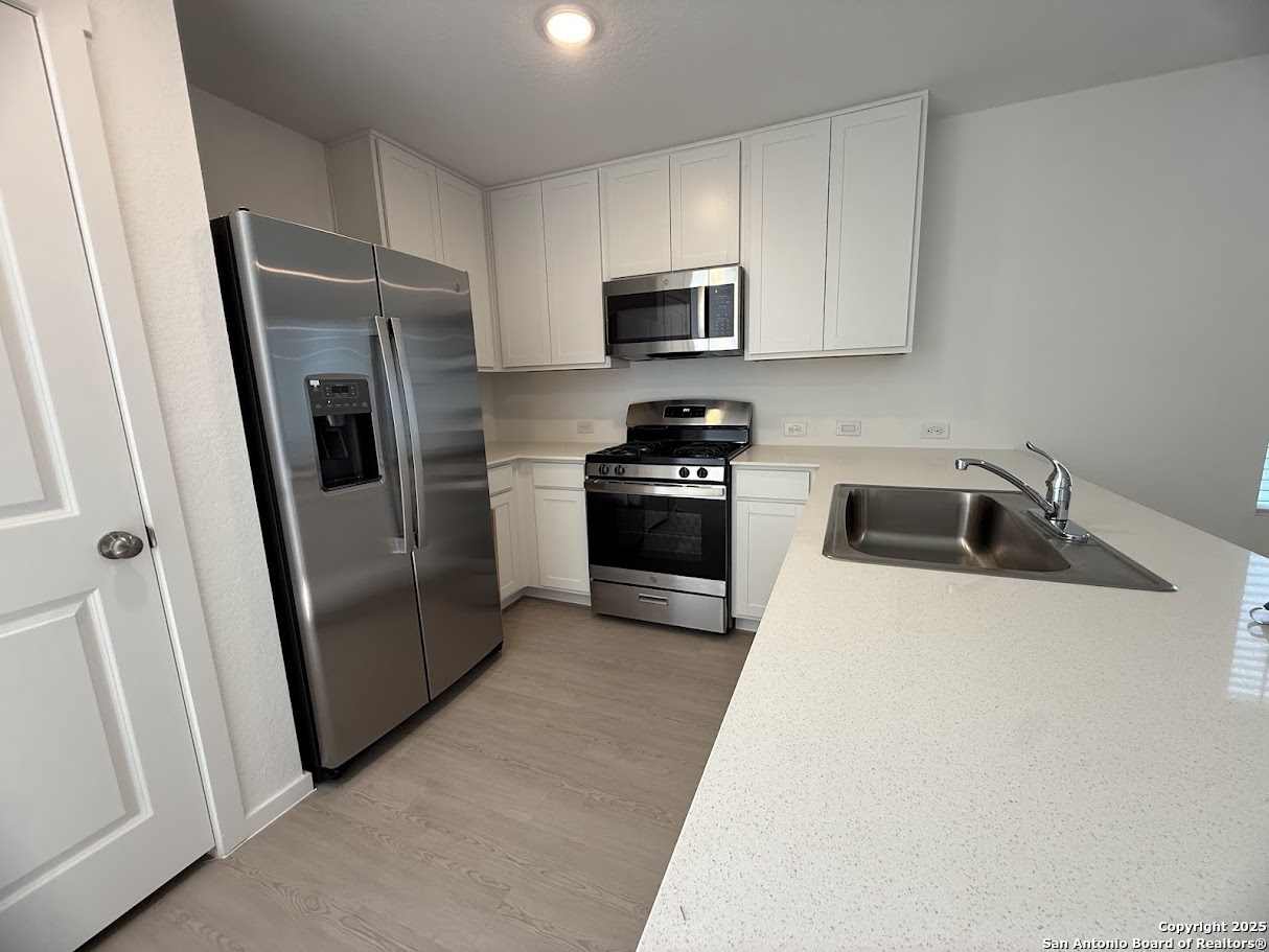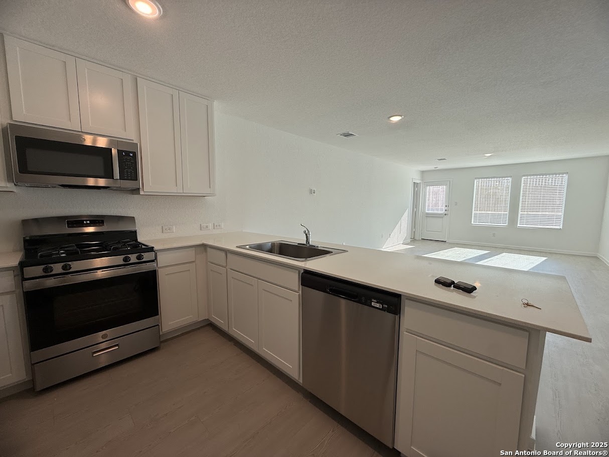 Be the first to live in this new single-family home located in the exciting new Kyndwood community off I-35 South. This thoughtfully designed 3 bed, 2 bath, 2-car garage home offers modern style and everyday convenience. Step inside to a light-filled open-concept living, dining, and kitchen area with luxury vinyl plank flooring in the main spaces and soft carpet in the bedrooms. The kitchen is well-appointed with gas cooking, solid countertops, double-door refrigerator, microwave, and dishwasher-everything you need to cook and entertain with ease. The primary suite, tucked away at the back of the home, includes a spacious walk-in closet, stand-alone shower, and single vanity with ample storage drawers. Two secondary bedrooms at the front share a full bath with a tub/shower combo. A laundry closet with washer/dryer hookups adds convenience. Enjoy outdoor living with a privacy-fenced backyard and full irrigation system to keep the lawn green. Coming soon: the community center with pool, clubhouse, and gym-all under construction now and available for tenant use once completed. With quick access to I-35, shopping, and dining, Kyndwood is a prime location. These homes are leasing fast-schedule your tour today before it's gone!