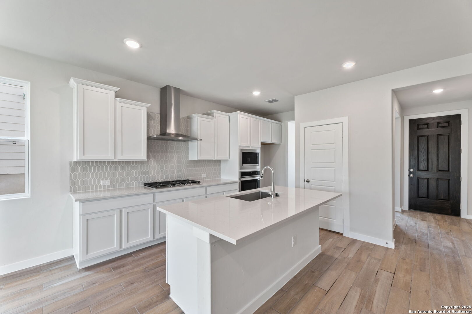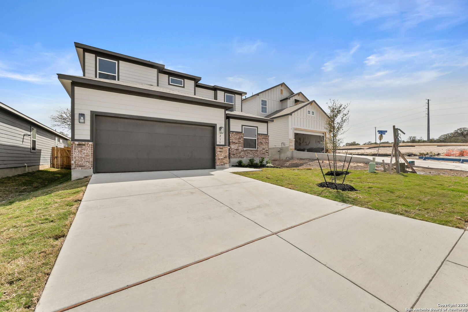 Special pricing and LOW interest rates available NOW! A comfortable home for families! Beautiful wood-look tile throughout the main living areas and premium upgrades, including white cabinets and white quartz countertops with neutral mosaic-tile backsplash. The family chef will appreciate the gas cooktop with a stainless steel canopy venthood and built-in wall oven and microwave. The Master Bedroom is located on the first floor, separate from the upper-level secondary bedrooms, and includes a master bath oasis with oversized shower, double vanities, private commode area, and spacious walk-in closet. Upstairs are three spacious bedrooms with shared loft area, which serves perfectly as a second lounge area. Natural light fills this home from all directions, and the extended covered patio with stacking slider door fully opens the indoor living space to the outdoors. Make your appointment today for a personal tour of this beautiful home!