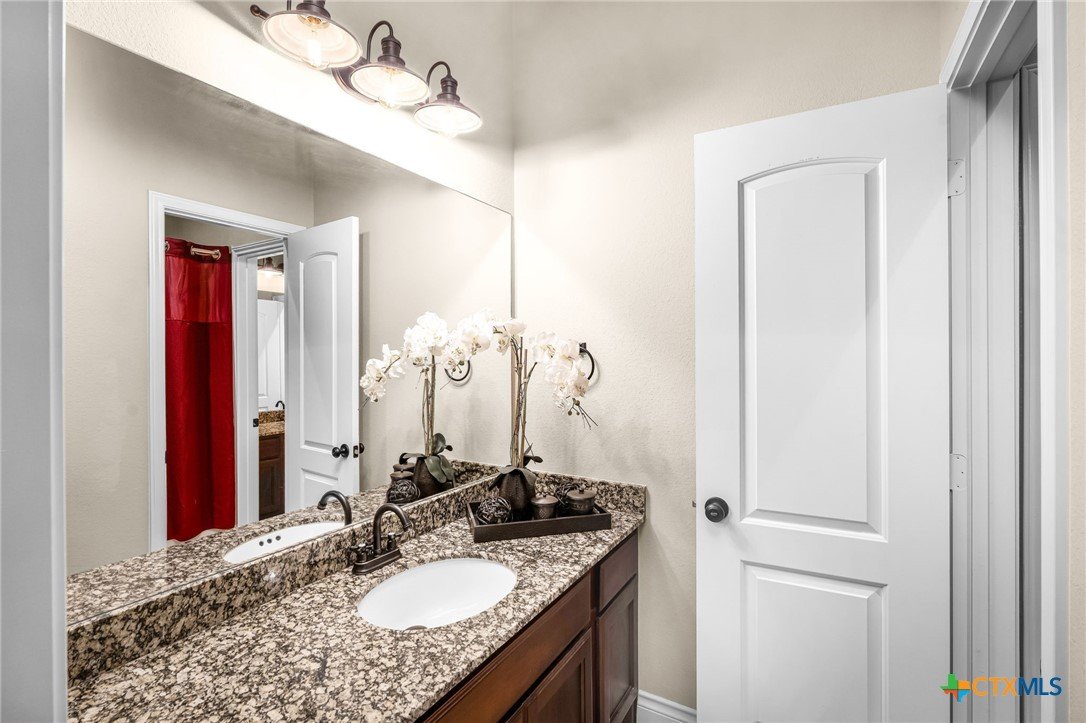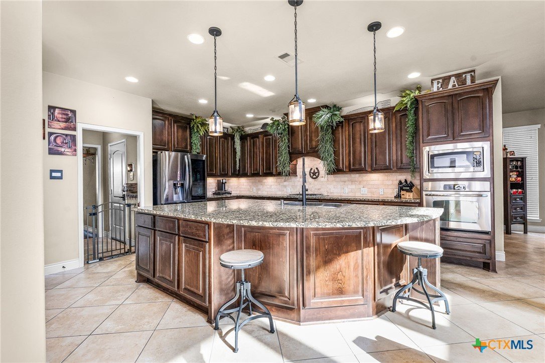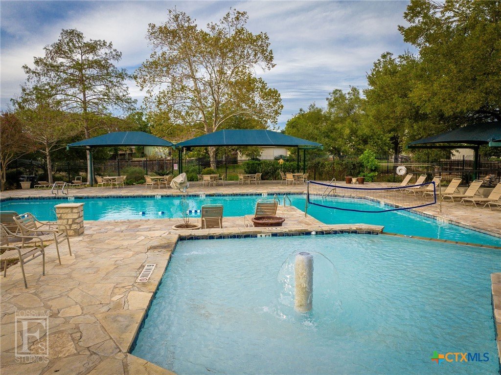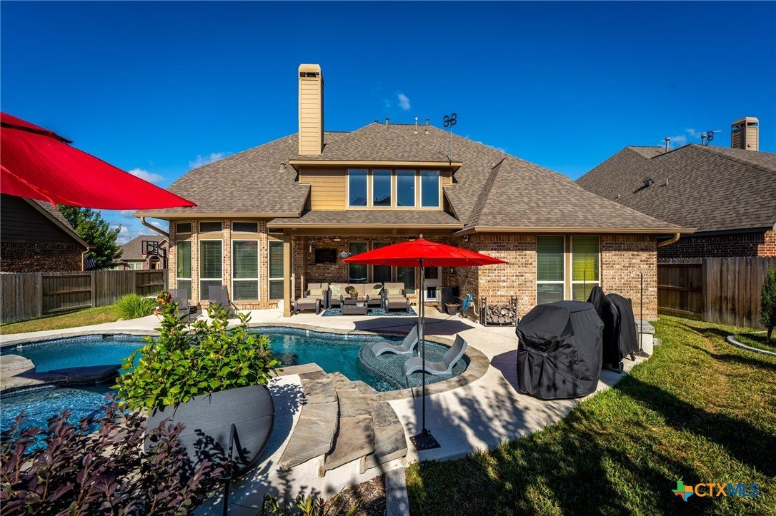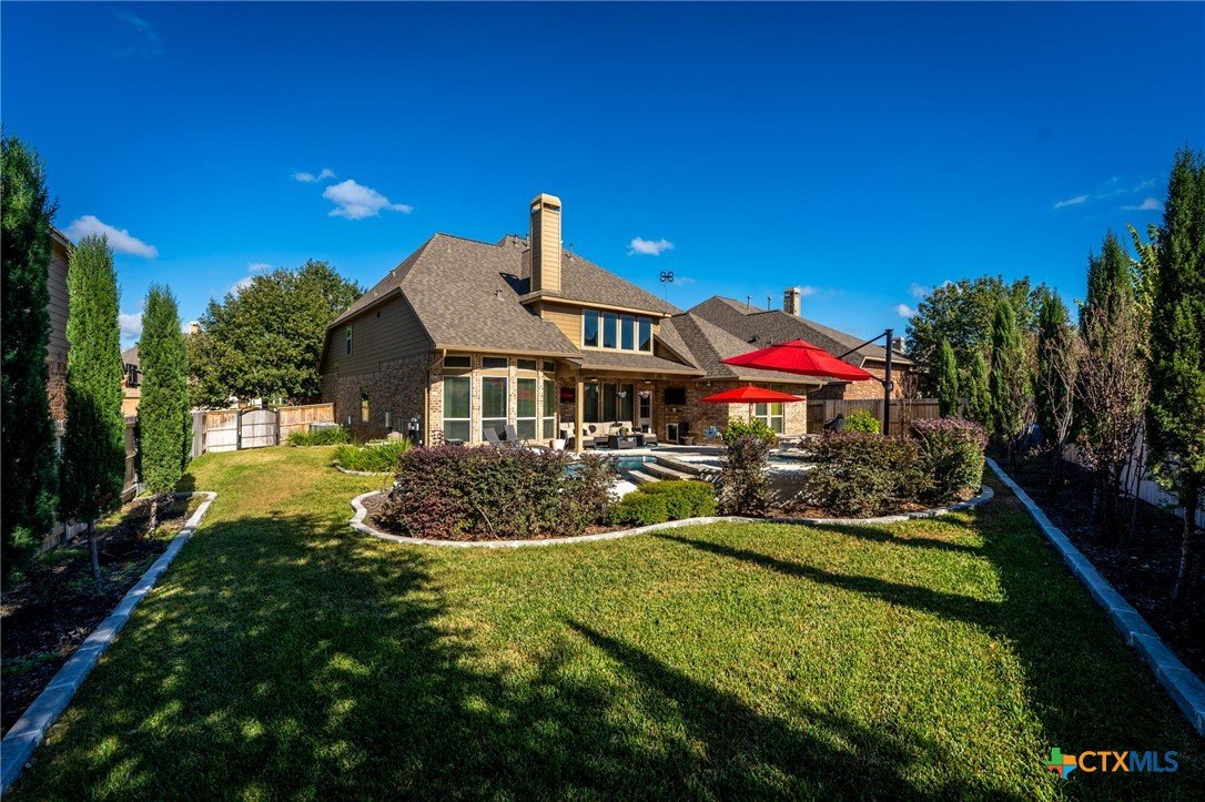 Beautiful 5-bedroom, 4.5-bath home in the highly desirable Oak Run community of New Braunfels! This stunning two-story property offers exceptional curb appeal with a brick-and-stone exterior, custom-built gate, and beautifully landscaped yard. Inside, the home features soaring ceilings and a bright, open layout. The spacious living room includes a wood-burning fireplace and large windows overlooking the backyard oasis. The gourmet kitchen offers a large island, gas cooking, abundant cabinet space, and an adjoining morning room. A formal dining room and dedicated office add flexibility for work and entertaining. The thoughtful floor plan includes two bedrooms downstairs, including the luxurious primary suite with a spa-like bathroom and roomy walk-in closet. A second main-level bedroom with a private bath is ideal for guests or multigenerational living. Upstairs features a large game room, separate media room, and three additional bedrooms, including a convenient Jack-and-Jill bathroom. Step outside to your own private retreat! The custom pool with tanning ledge, multiple lounge areas, and extended covered patio create the perfect setting for year-round relaxation and gatherings. The backyard is beautifully landscaped and fully fenced for added privacy. Located in one of New Braunfels' most sought-after neighborhoods, this home is minutes from NBISD schools, shopping, dining, medical facilities, and community amenities including pools, parks, and trails. With its spacious layout, resort-style backyard, and unbeatable location, this Oak Run gem is truly a must-see!