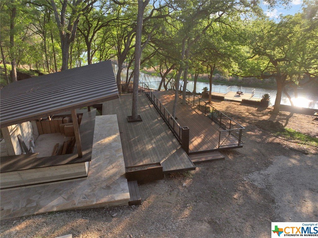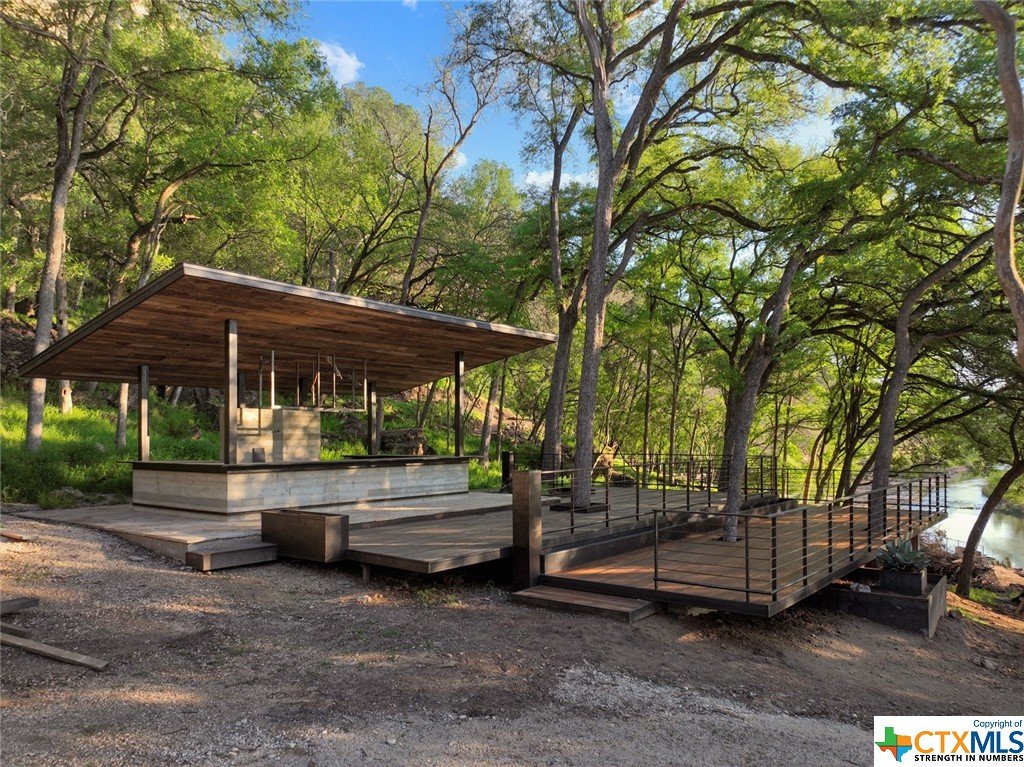 Your future riverside retreat was designed by renowned central Texas builder, Keith Wing. Perched on 136’ of Guadalupe Riverfront on a sprawling 1.11-acre lot adorned with majestic mature trees, this property promises a harmonious blend of natural beauty and modern convenience. Imagine hosting gatherings on the expansive covered patio, complete with a welcoming fireplace for chilly evenings. Delight your guests with culinary masterpieces from the outdoor kitchen, complete with a high-end BBQ grill, under-counter refrigerator, and convenient bar sink. And when the Texas sun blazes, cool off in the refreshing in-ground pool while soaking in panoramic river views—a perfect setting for summer relaxation and fun. Step indoors and envision the towering vaulted beamed ceilings, adding a touch of rustic charm to the spacious, open floor plan. Indulge your culinary passions in the gourmet kitchen, outfitted with a professional-grade 48” 6-burner gas range, sleek quartz countertops, custom cabinetry, and even a wine refrigerator for those special occasions. Retreat to the luxurious owner’s suite, where vaulted ceilings and private outdoor access provide a sanctuary-like ambiance. Share the riverside luxury with family and friends in the upstairs gaming area, complete with two sets of bunk beds for aquatic adventures on the Guadalupe River. Discover Canyon Lake & Gruene's charm just minutes away, and live music at the Whitewater Amphitheater, promising unparalleled luxury and leisure.