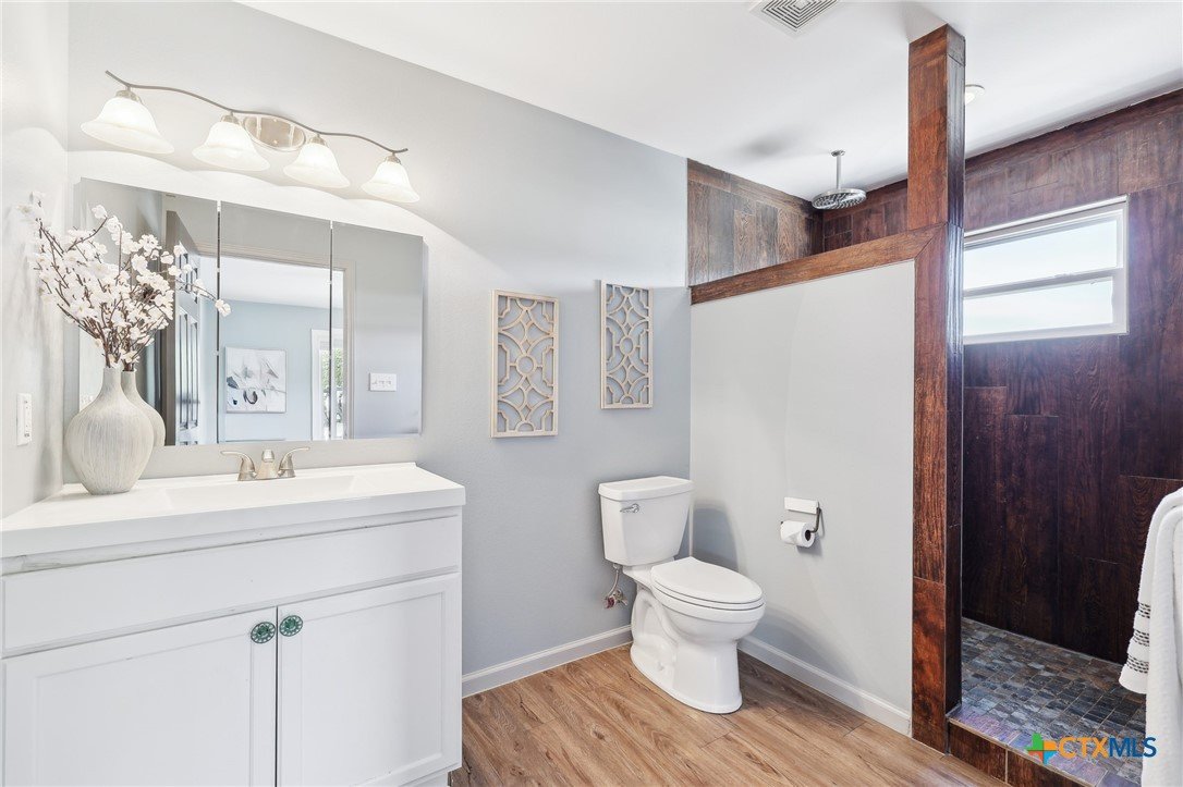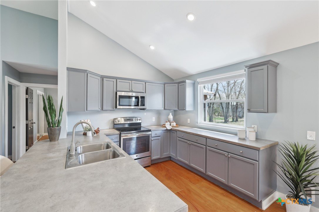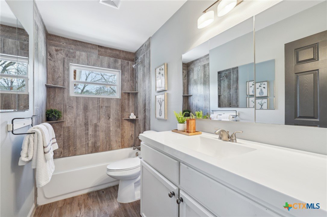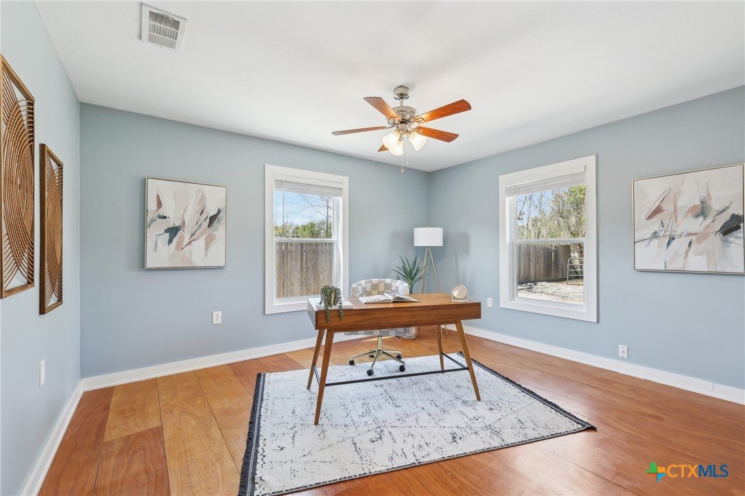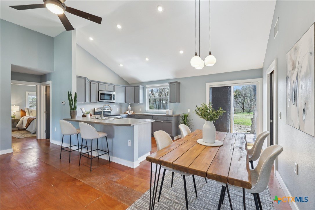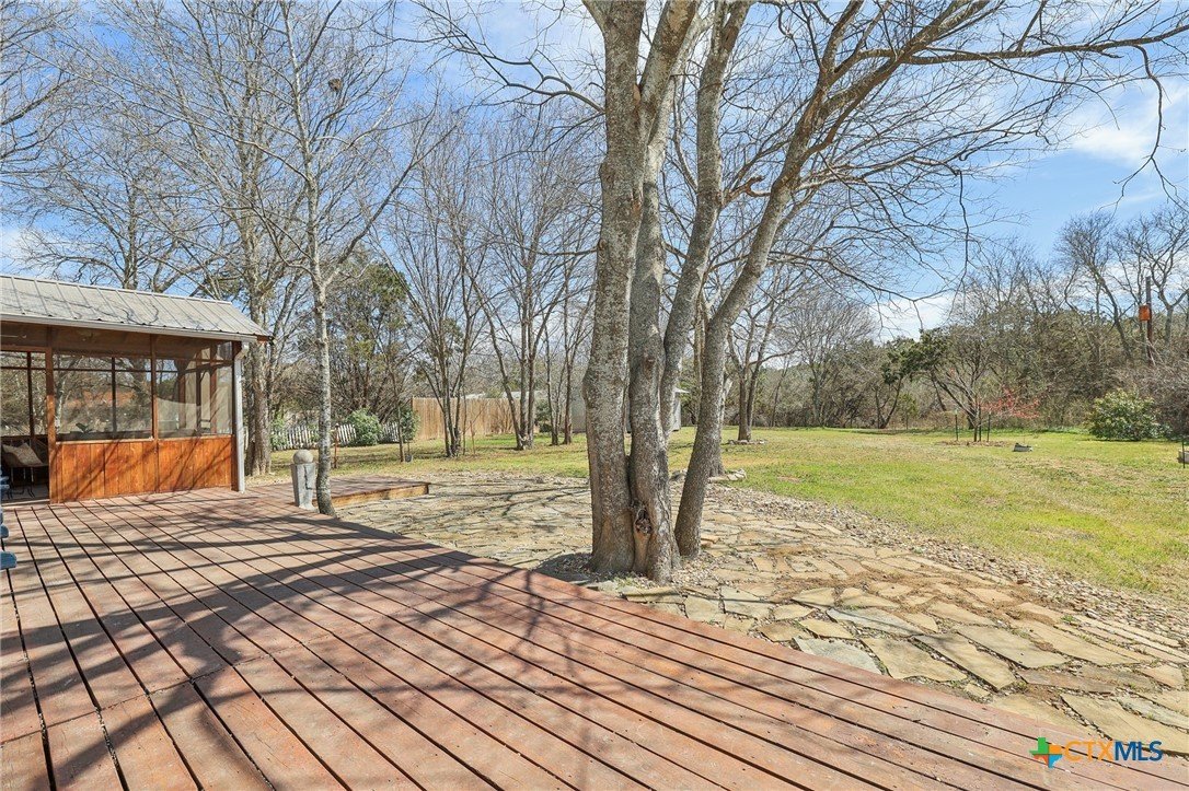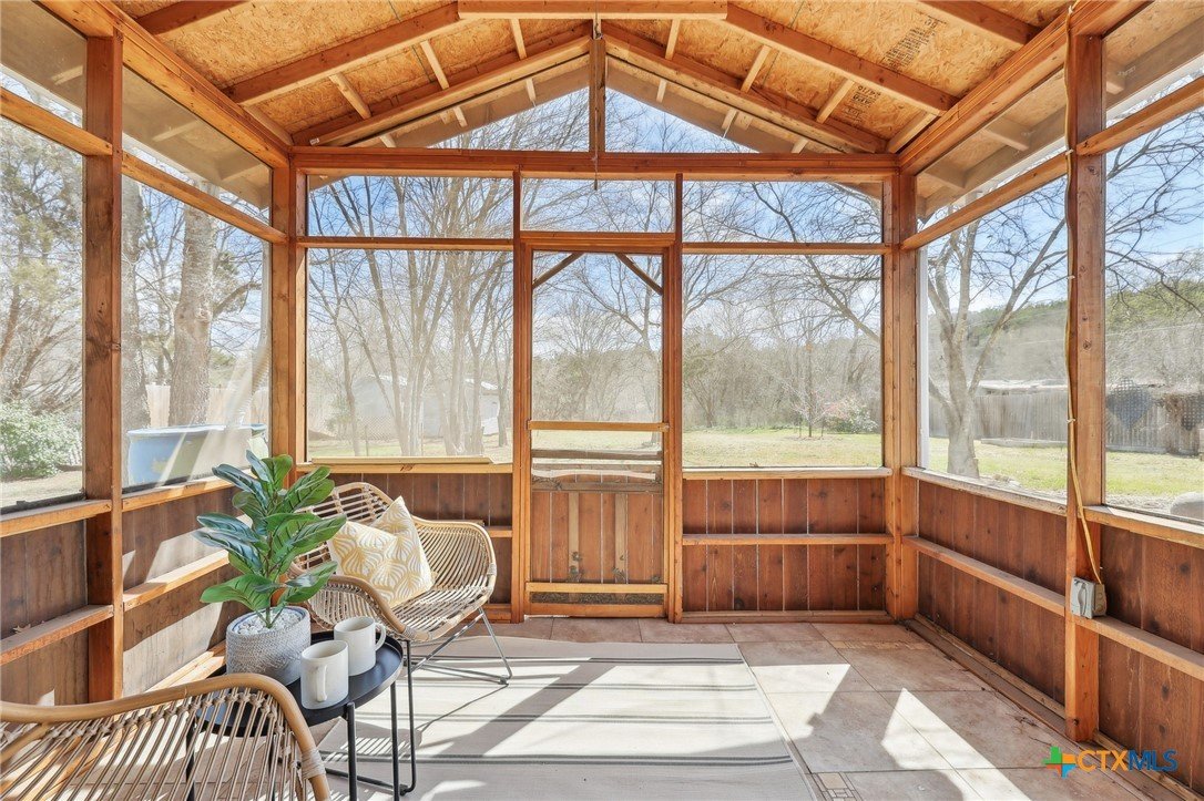 One-of-a-kind 1.1 acre Leander property backing to Big Sandy Creek! This beautiful and charming home was rebuilt in 2015 with new windows, insulation, HVAC, roof, electric, pluming, kitchen, baths and more. Enjoy the quiet, laid-back Hill Country lifestyle with creek access while only being 10 minutes from city conveniences like an H-E-B Plus, restaurants, shopping, MetroRail Park & Ride, Austin Community College, and the upcoming Leander downtown district! Inside, the open concept living, dining, and kitchen area features high ceilings, recessed lighting, and wood floors. The backyard is an outdoor retreat, complete with a screened-in porch, deck, and an expansive flagstone patio overlooking the picturesque landscape. Take the mulched trail through the back gate down to the water (all part of the property) and enjoy serene views of the seasonal creek, limestone cliffs and abundant wildlife. The 3rd bedroom does not currently have a door and is set up as an office. Seller will install a door at buyer’s request. Acreage like this, so close to booming Leander, won’t last!