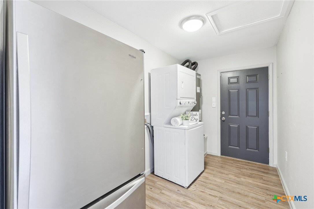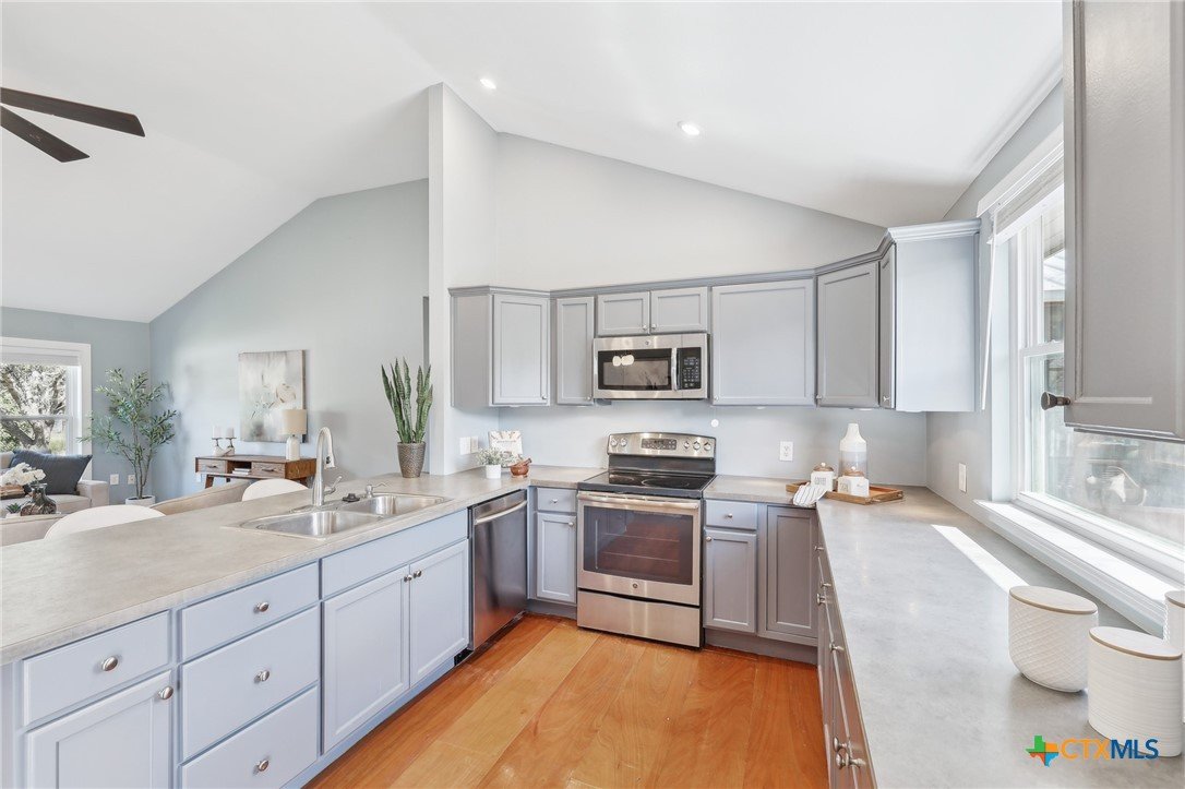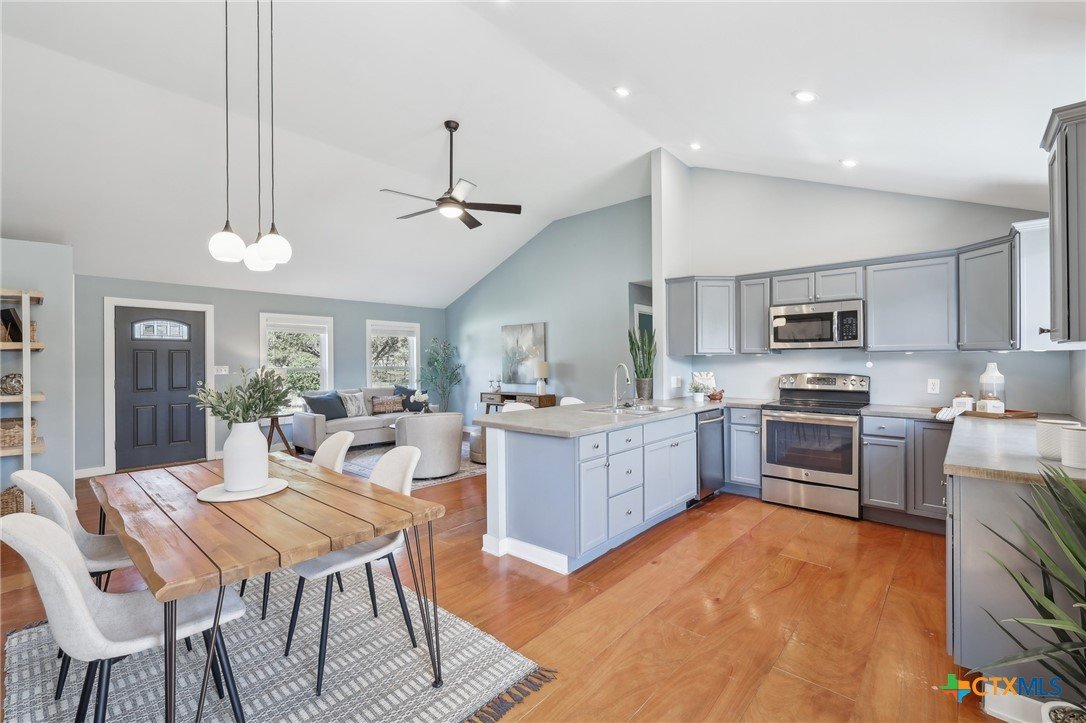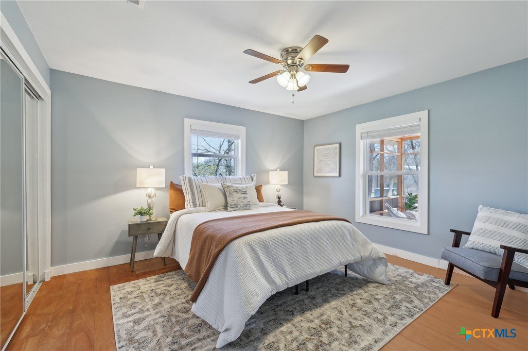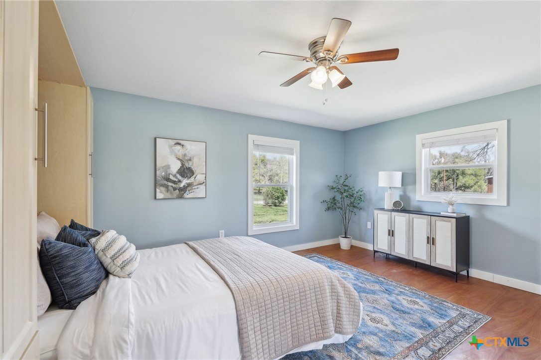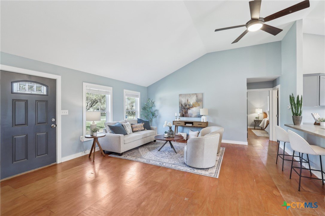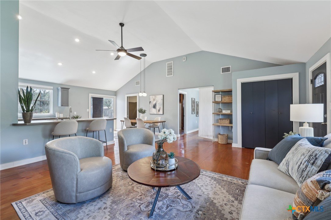 One-of-a-kind 1.1 acre Leander property backing to Big Sandy Creek! This beautiful and charming home was rebuilt in 2015 with new windows, insulation, HVAC, roof, electric, pluming, kitchen, baths and more. Enjoy the quiet, laid-back Hill Country lifestyle with creek access while only being 10 minutes from city conveniences like an H-E-B Plus, restaurants, shopping, MetroRail Park & Ride, Austin Community College, and the upcoming Leander downtown district! Inside, the open concept living, dining, and kitchen area features high ceilings, recessed lighting, and wood floors. The backyard is an outdoor retreat, complete with a screened-in porch, deck, and an expansive flagstone patio overlooking the picturesque landscape. Take the mulched trail through the back gate down to the water (all part of the property) and enjoy serene views of the seasonal creek, limestone cliffs and abundant wildlife. The 3rd bedroom does not currently have a door and is set up as an office. Seller will install a door at buyer’s request. Acreage like this, so close to booming Leander, won’t last!