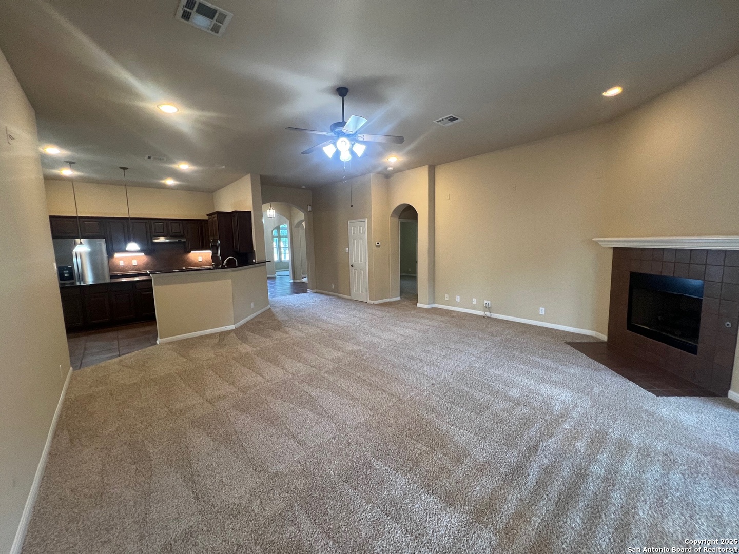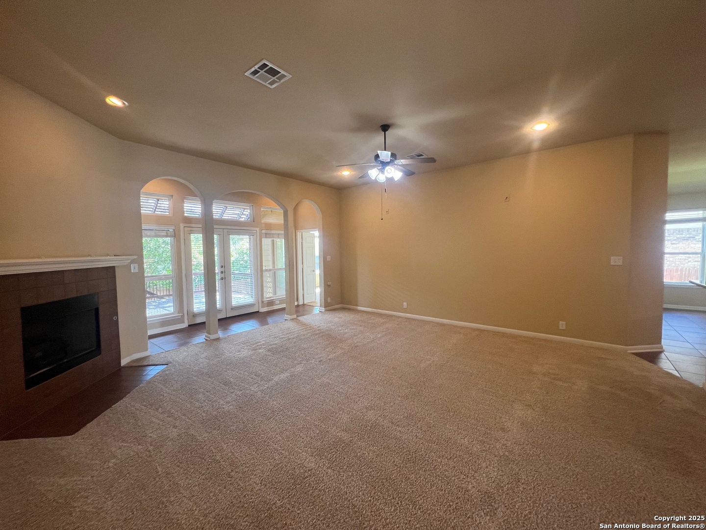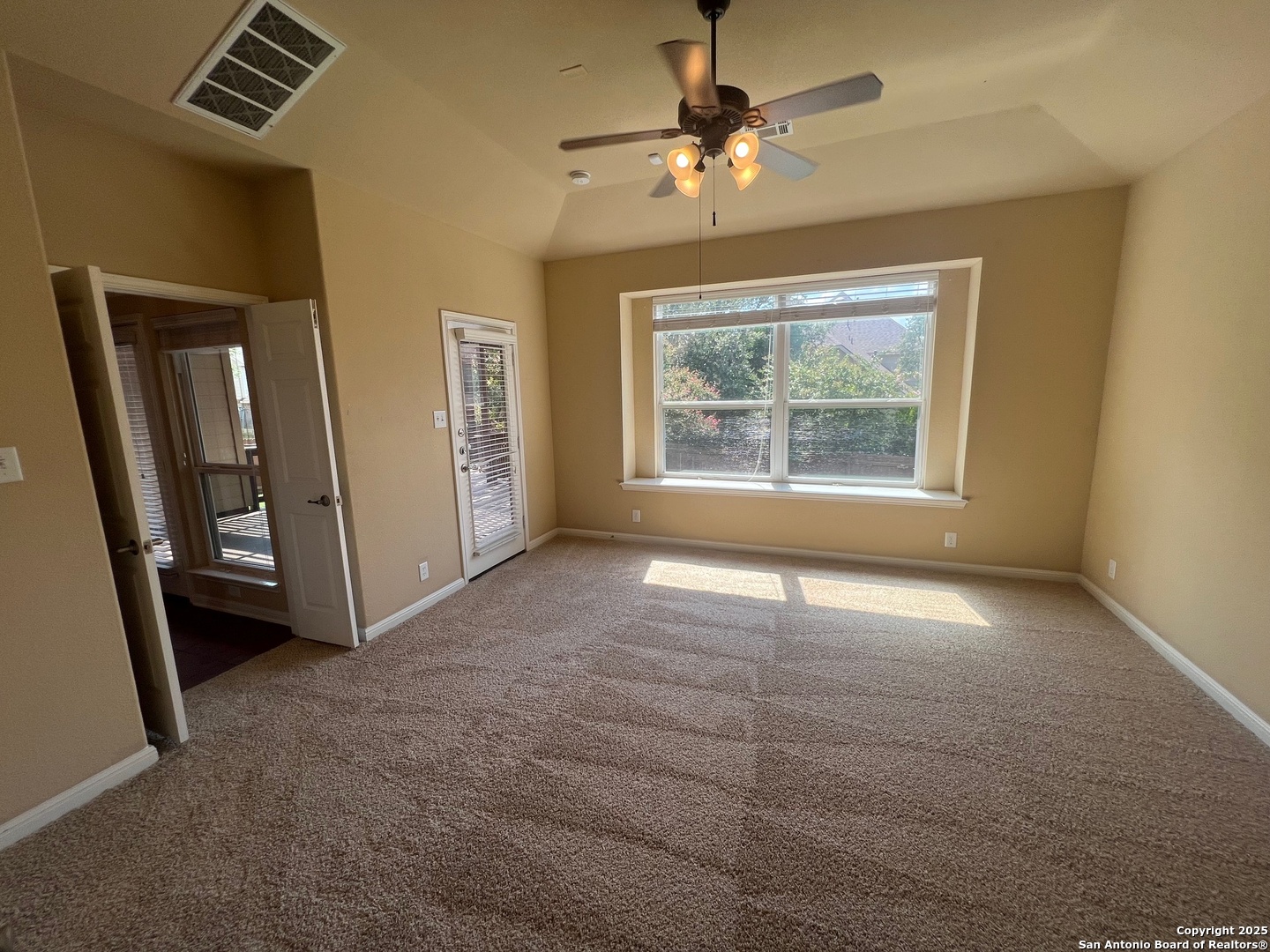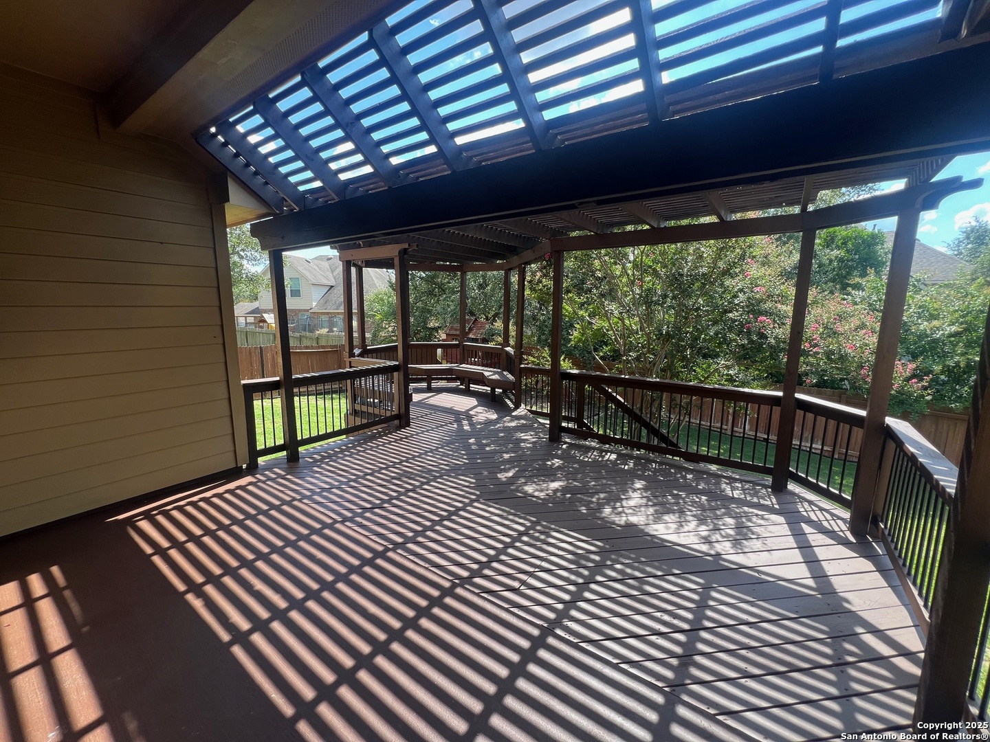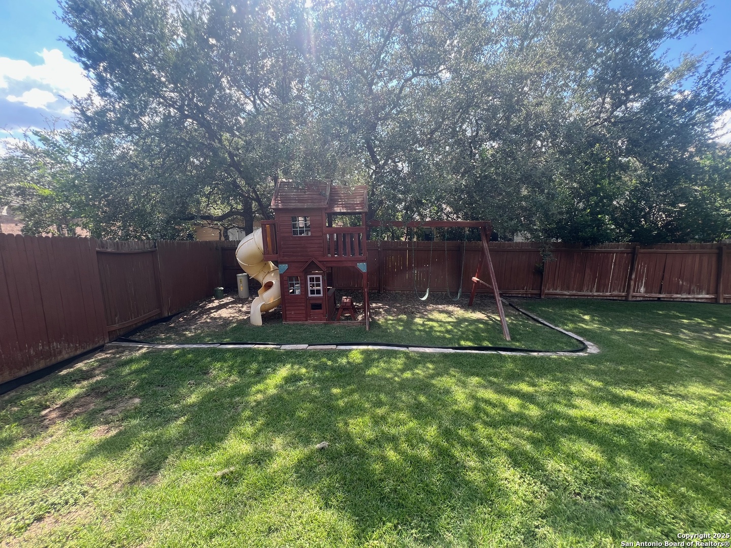 Beautiful Stone/Brick, 2592sqft one story, 4BR 3BA w/office, separate dinning rm, 3-car garage built in 2008 in gated community of Mountain Lodge. Brand new carpet through-out the home. GREAT location within the community across the street from the Pool, Sports court and playground. Awesome backyard with covered patio and large stained deck(Just stained). All yard maintenance included. Great curb appeal. Large kitchen w/upgraded granite tops, island and stainless-steel appliances including refrigerator. Washer, Dryer & Water softener included. NEISD schools.