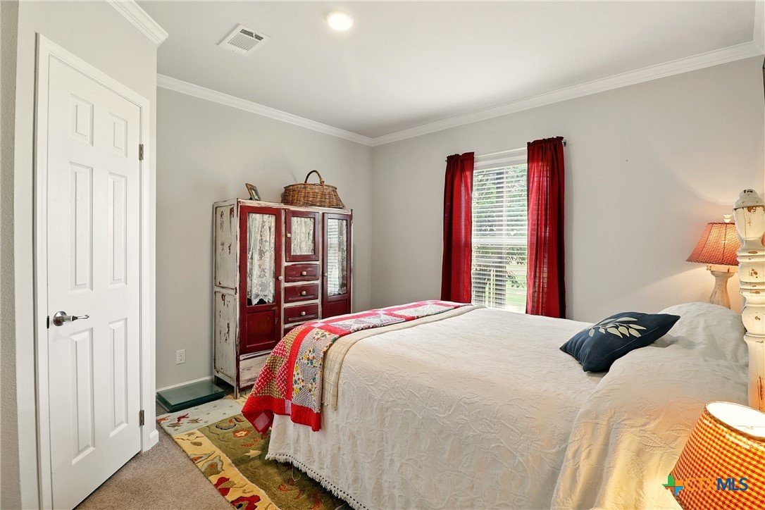 Escape to 4.06 peaceful acres just North of San Saba near the Colorado River. Palm Harbor farmhouse-style home, 4 bedrooms, twobathrooms with a spa-style primary suite with soaking tub and walk-in shower. Cozy, yet and open floor plan, this home will give you noreason to ever leave! Country kitchen with breakfast bar and full pantry, stainless steel appliances, conveniently ajoins the open diningroom. Crown molding , high ceilings, coffered ceiling in the primary, sheetrock-type walls, and ceiling fans throughout. The front porch isthe perfect place to watch the sun set with a cool drink in and. Approximately 8'x25' wth tyvek decking, metal roof, and steel handrails,overlooking the green front pasture. The back porch is the perfect place to drink your morning coffee and watch the birds. Approximately76' of covered tyvek decking, metal roof and steel handrails, overlooks the landscaped backyard.The 30'x60' steel barn on concrete slabhas 14' ceilings, 10'x10' roll up door and walk-in door, with windows on each side, electric plugs and lighting throughout. The main homehas custom rock underpinning on two sides and steel underpinning on the remaining two sides, with rock front sidewalk. There is also asteel carport at the back of the home. Property is perimeter fenced with front gate and has a fenced backyard. The home boasts a wholehouse water treatment system with reverse osmosis treatment system for better drinking water. Full 50 amp RV hookup at the barn.Peace and quiet - you found it!