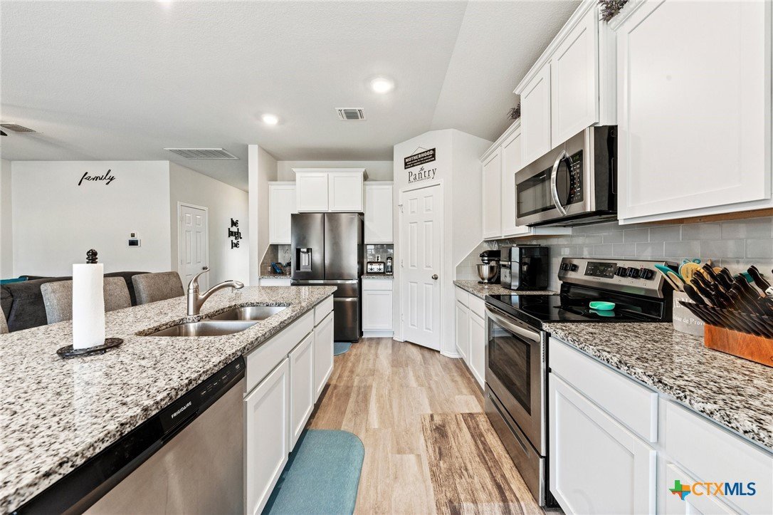 Introducing this recently built 4-bedroom, 2.5 bath home with an office in a desirable Copperas Cove neighborhood. This modern home features solar panels, granite countertops, ceiling fans, and a center island in the kitchen. The master suite boasts a separate tub and shower, including a garden tub and walk-in shower for ultimate relaxation. The open concept living, dining, and kitchen area is perfect for entertaining guests or enjoying family time. Plus, the neighborhood offers a playground and community pool for residents to enjoy. Don't miss out on this fantastic opportunity to make this house your home!