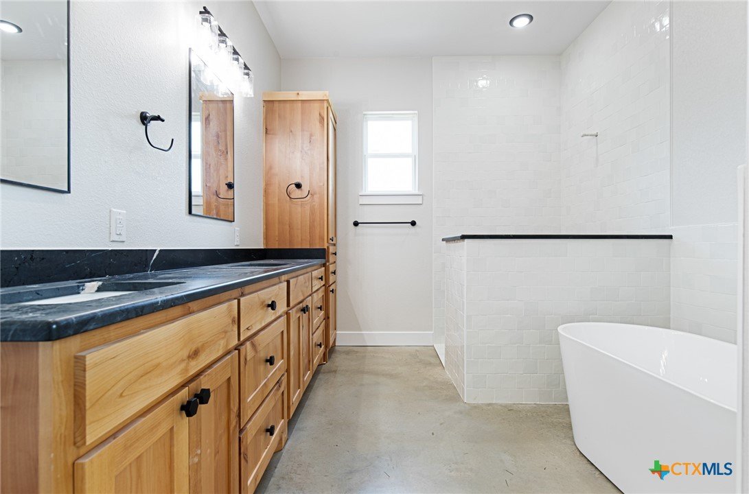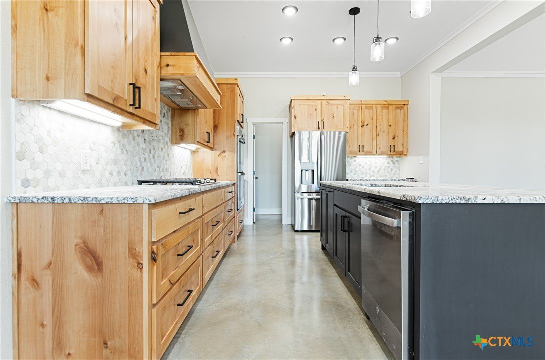 This modern, farmhouse home sits on just over 4 acres of natural hill country landscape. The exterior finish of slate blue and gray limestone give this home a modern look while the porches and wood accents finish off the farmhouse look. Once you enter the home, the quality and added touches are visible. The custom cabinetry and floor to ceiling shiplap fireplace make a statement. This home offers all the extra features like a mud bench area, extra cabinets in the walk in panty and hall bathroom, and the list goes on. The kitchen is designed to offer lots of area for cooking and entertaining. The knotty alder cabinetry keep the farmhouse feel throughout the home. The master bedroom, closet and bathroom offer lots of area for all your needs. The glossy, natural color concrete floors throughout the home give an accented look with an ease of maintenance. There is a 2 car garage with an extra golf cart, lawn mower or atv garage. And there is a storage closest on the back porch. The porches have lots of room for outdoor grilling and entertaining. Property has Hwy 116 access. This is a must see home. You will not be disappointed!