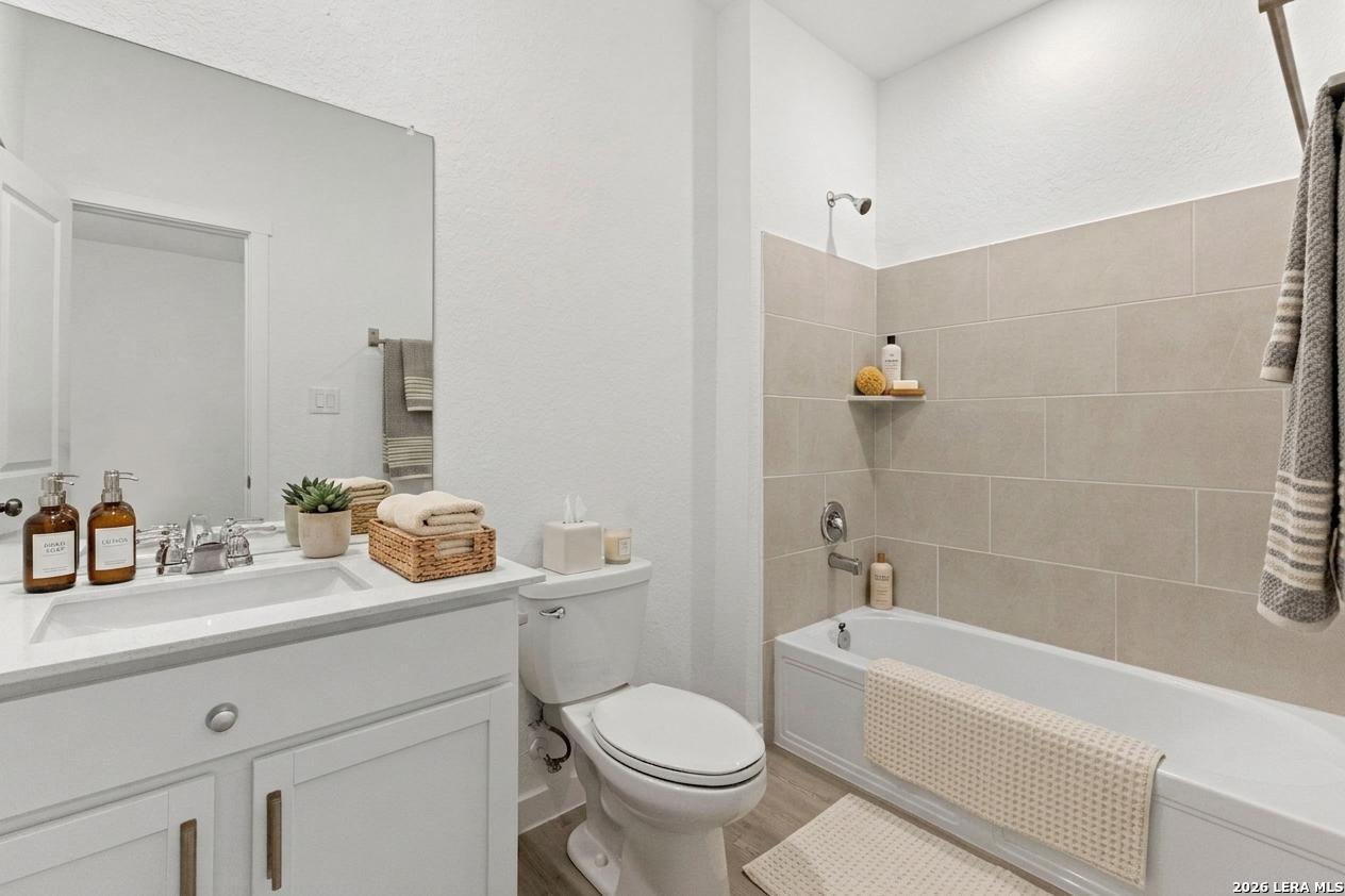 The Cumberland is a thoughtfully designed two-story home that blends comfort, space, and functionality. Upstairs, you'll find a generous and versatile game room-perfect for entertaining guests, relaxing, or creating a personalized retreat. Just off the foyer, three well-appointed secondary bedrooms provide ample space for family or visitors, all conveniently connected to the heart of the home. The open-concept main living area offers a seamless flow between the kitchen, dining, and living spaces, with direct access to a covered patio-ideal for indoor-outdoor living. Privately situated at the rear of the first floor, the luxurious owner's suite offers a peaceful escape, featuring a spa-inspired bathroom and a spacious walk-in closet.