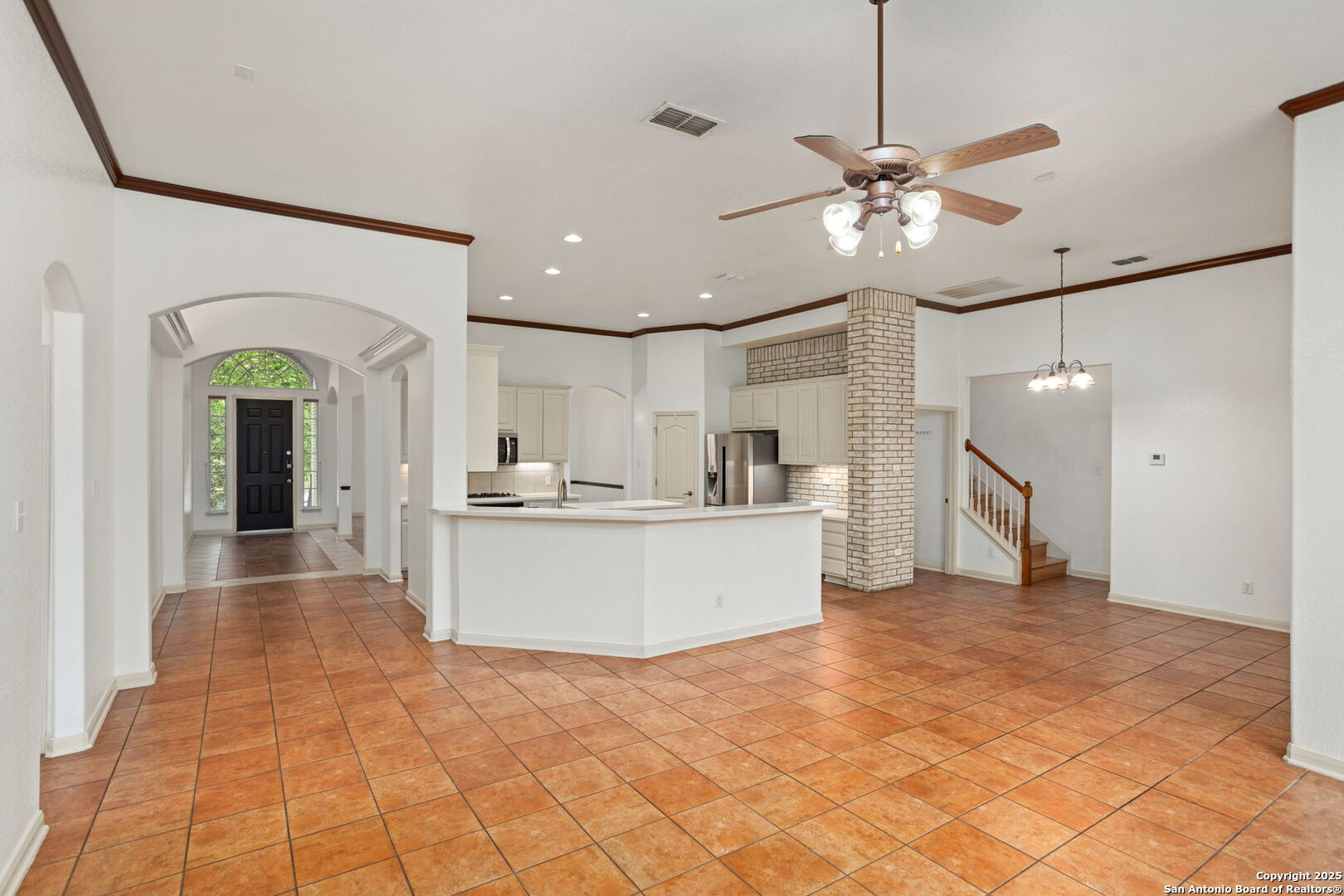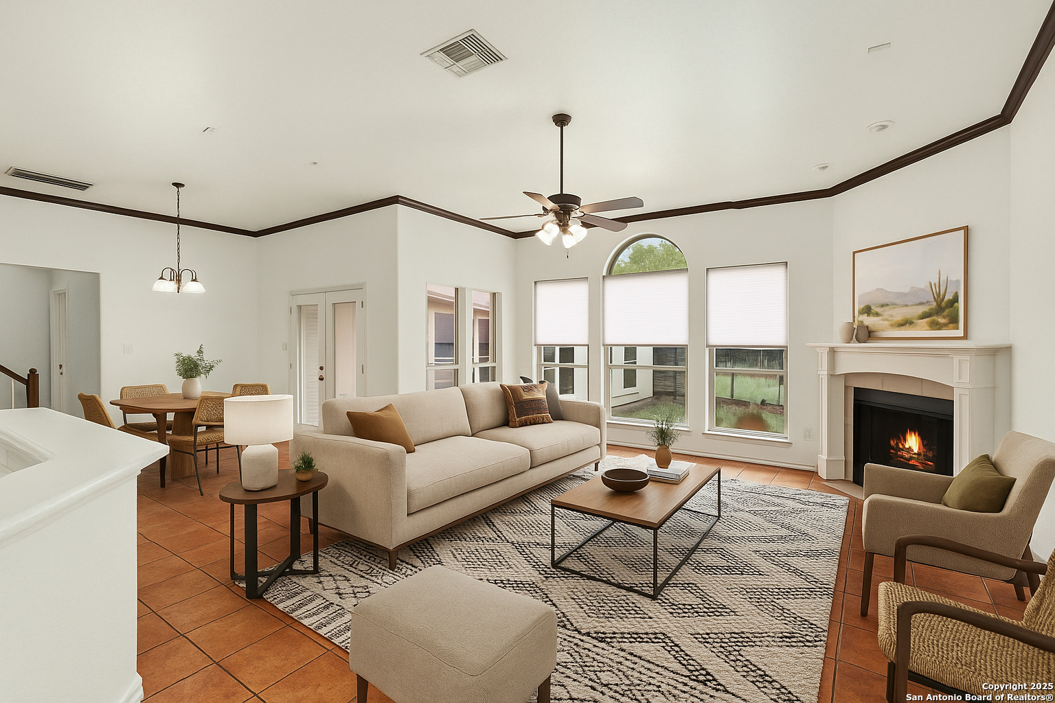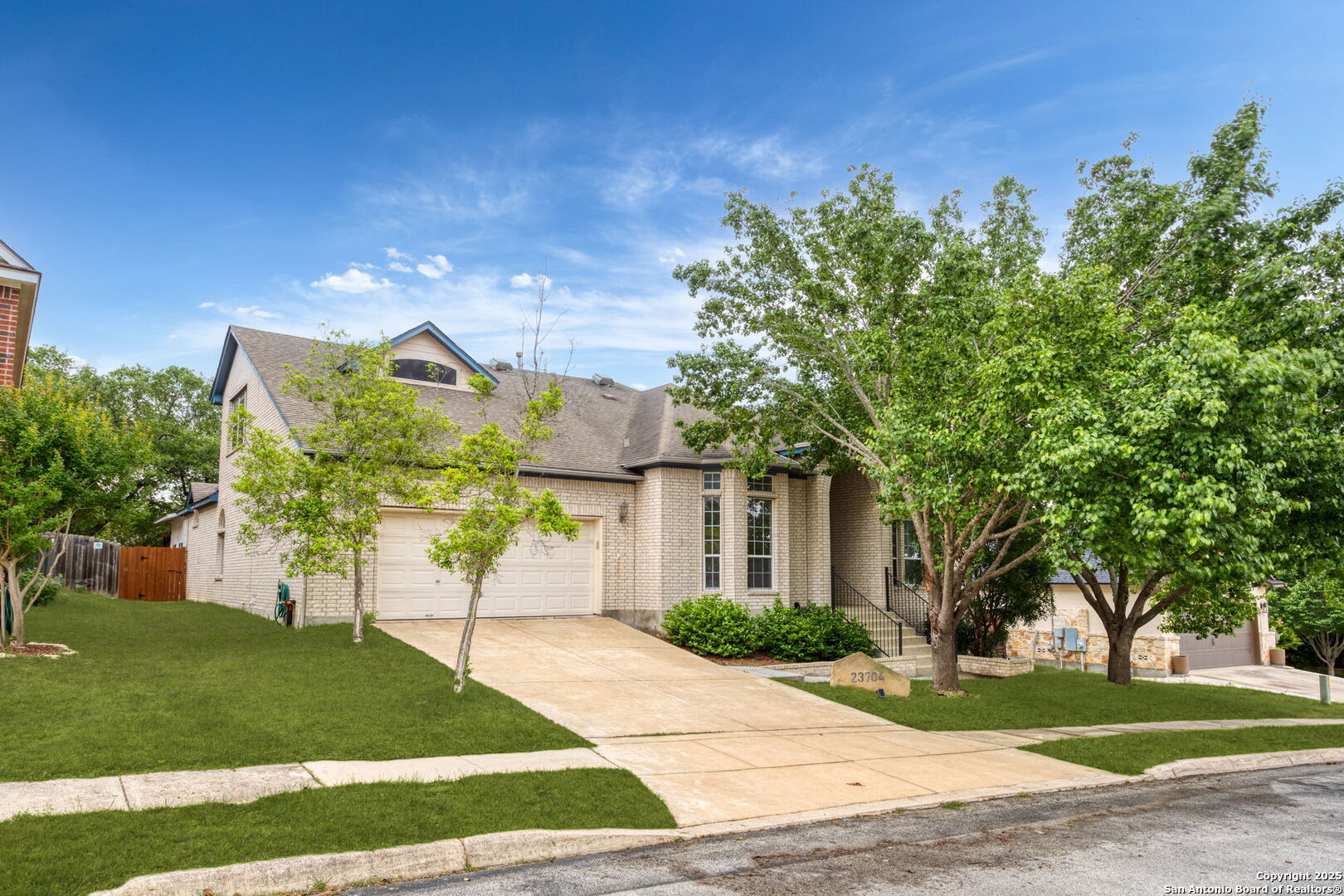 Welcome to 23704 Alpine Ridge - a beautifully refreshed Stone Oak residence offering over 4,000 square feet of elegant living space, plus a bright Florida room for even more room to relax and entertain. Set within the acclaimed NEISD school district, this 5-bedroom layout offers exceptional flexibility, with all bedrooms located downstairs and a large upstairs office or game room ready to fit your needs. Fresh interior paint, soaring ceilings, and abundant natural light create a welcoming atmosphere. Step outside to a shaded backyard framed by mature trees - perfect for outdoor gatherings or peaceful evenings. Space, style, and an unbeatable location close to shopping, dining, and top-rated schools - this is one you don't want to miss!