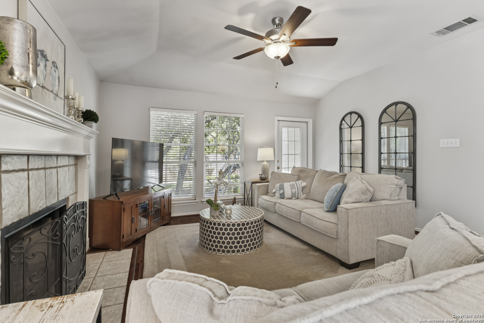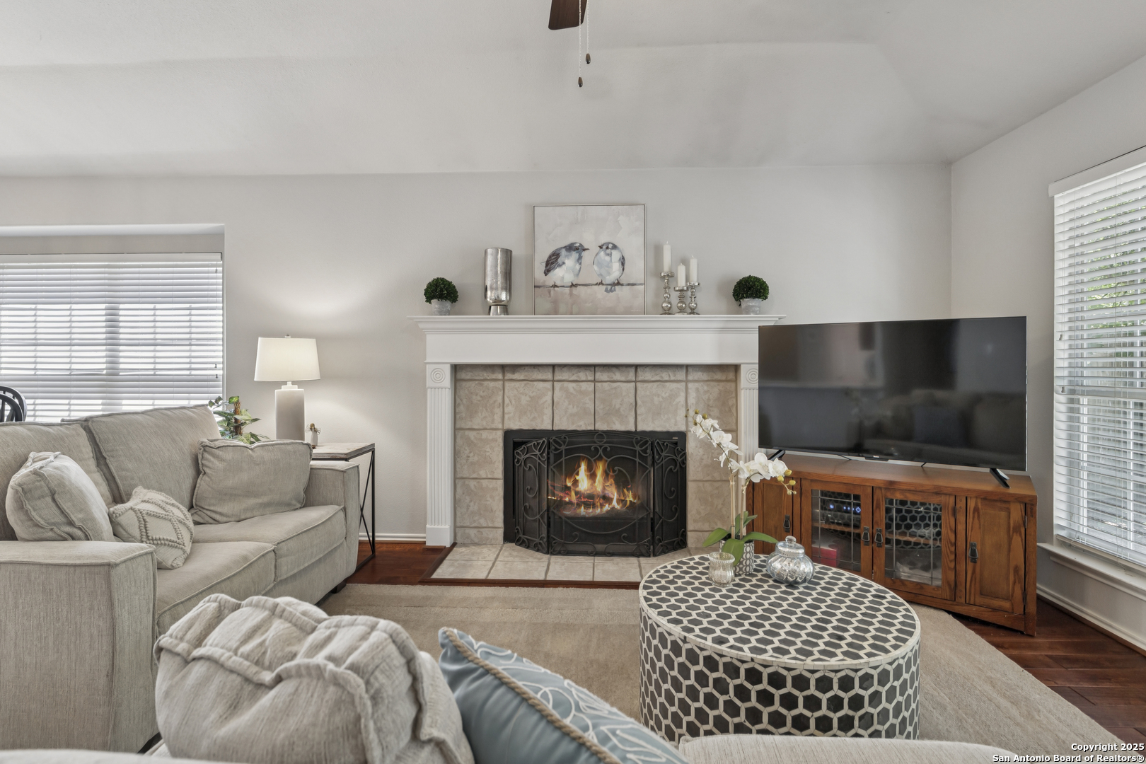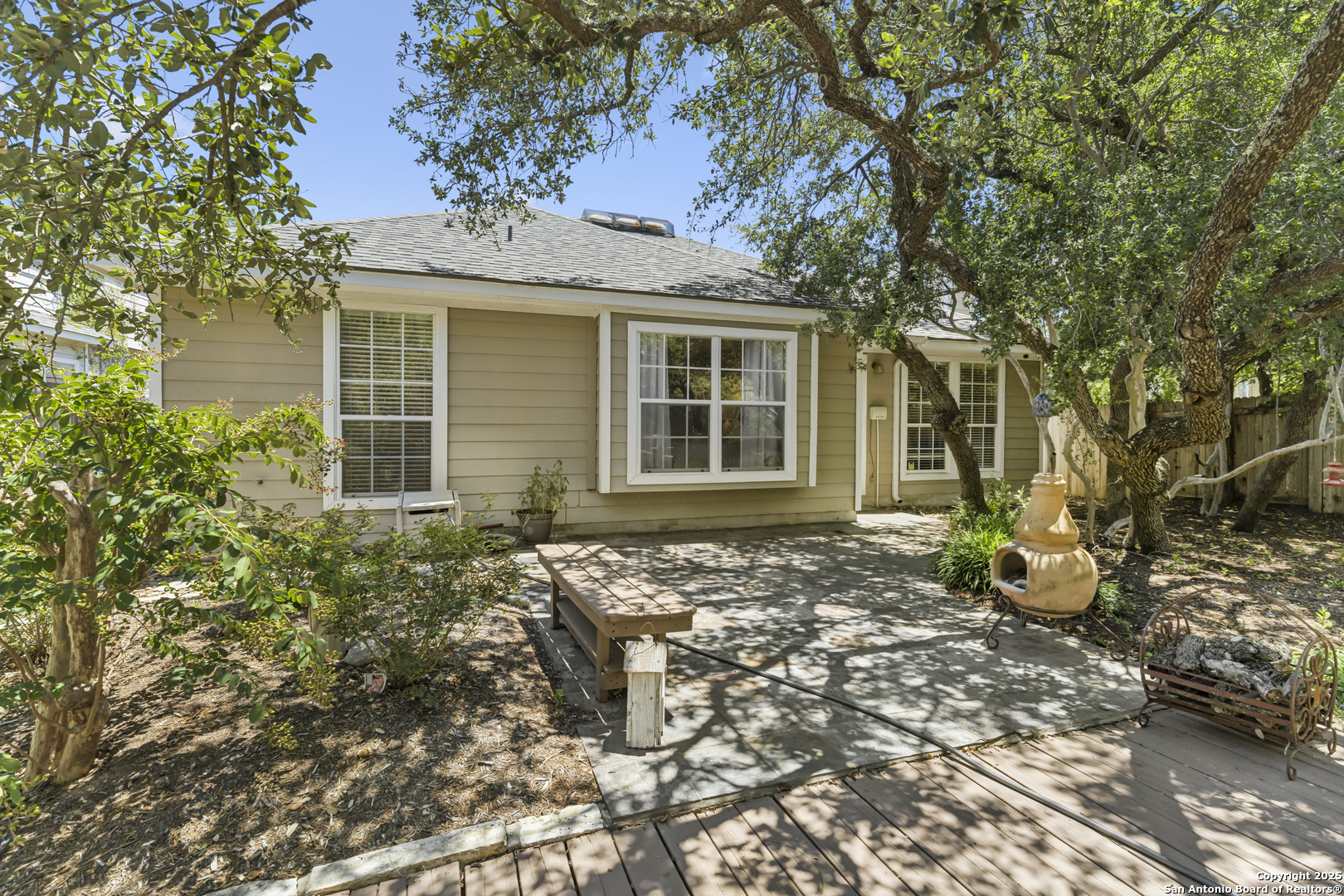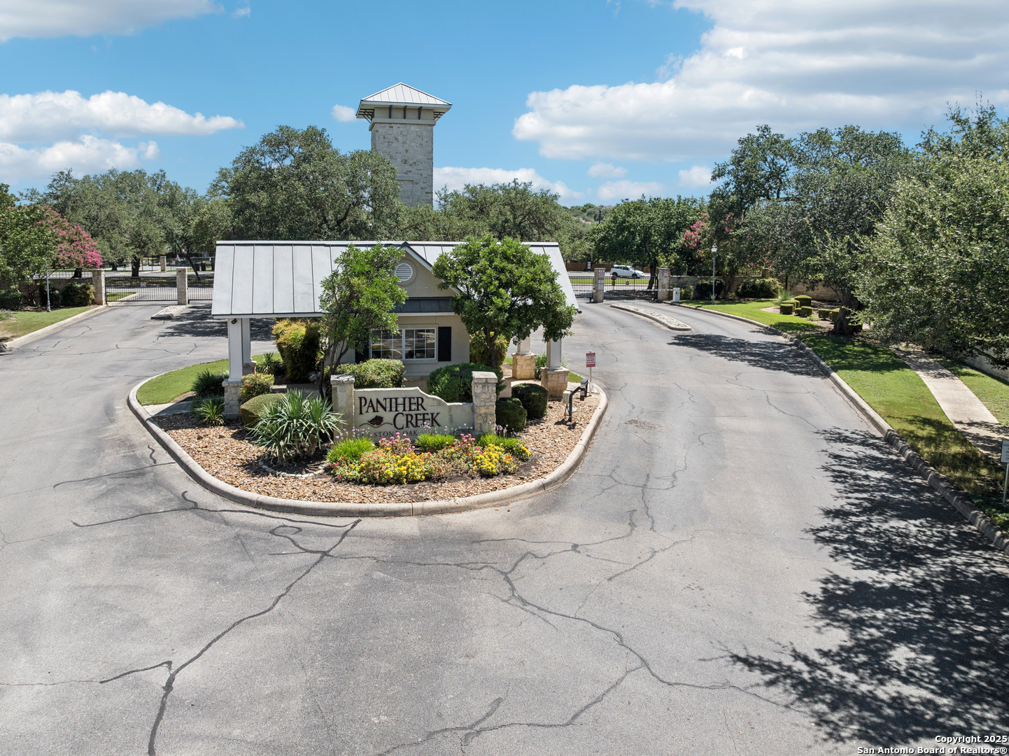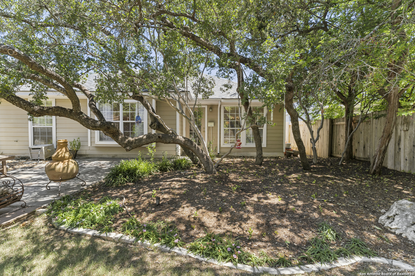 Updated One-Story Gem Backing to Greenbelt in Panther Creek! Don't miss this beautifully renovated one-level home in the highly desirable gated community of Panther Creek! Thoughtfully updated with hardwood floors, BRAND NEW carpets in bedrooms, quartz countertops, stylish lighting, and a modern open layout, this home blends charm and functionality with ease. The spacious kitchen features a peninsula layout and breakfast bar, quartz counters, a designer backsplash, and a walk-in pantry-perfect for cooking and entertaining. The cozy family room centers around a wood-burning fireplace with a striking mantle and hearth. The owner's suite offers a spa-inspired retreat with double vanities, a walk-in shower, and a large closet. Two additional bedrooms and an updated guest bath provide space and privacy for family or guests. Enjoy outdoor living on the spacious patio and covered pergola, surrounded by mature trees and backing to a peaceful greenbelt-no rear neighbors! The 2-car garage offers ample storage. Enjoy Top-rated NEISD schools and fantastic HOA amenities just steps from your front door! This move-in ready home offers the perfect mix of updates, location, and lifestyle. Schedule your showing today!