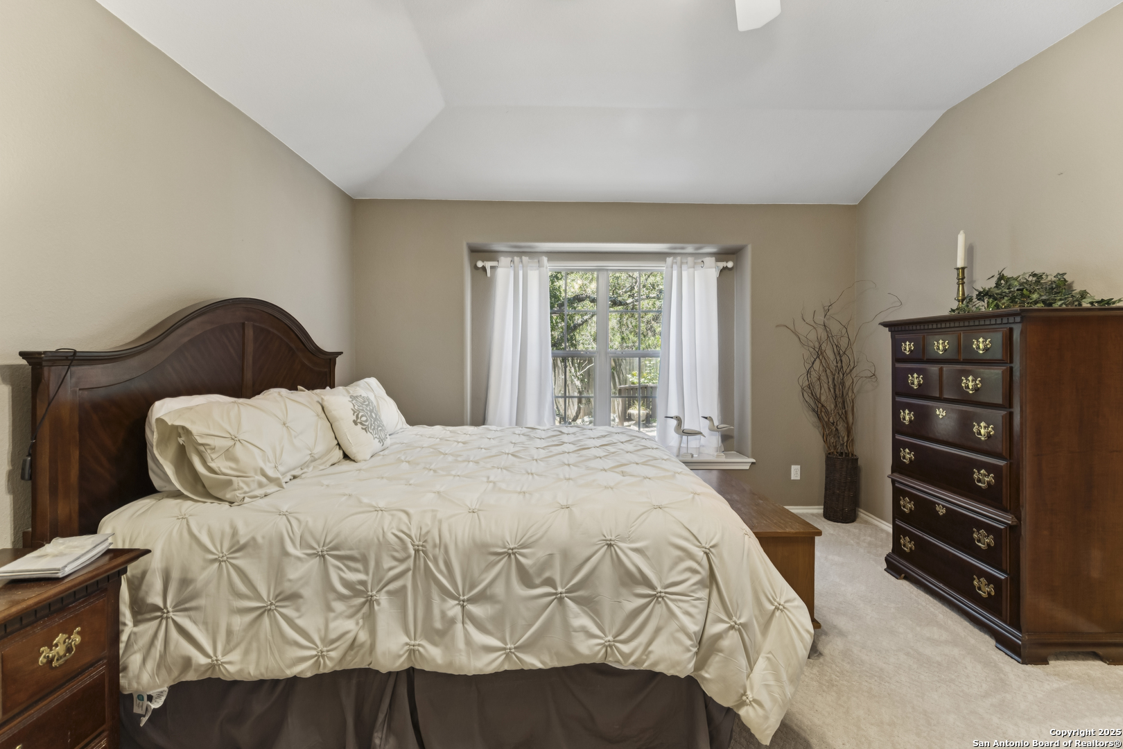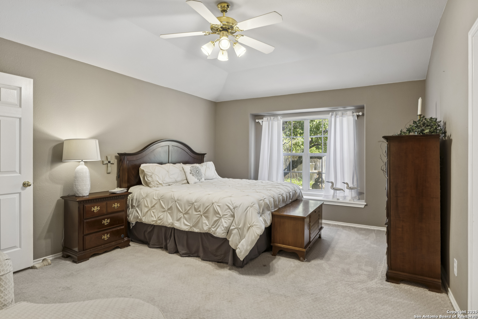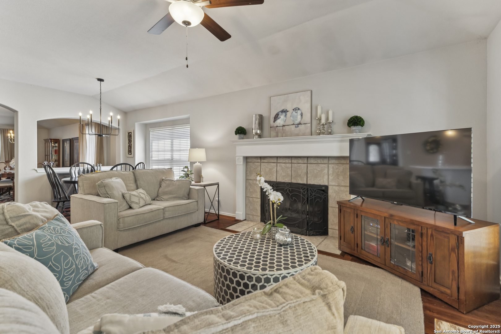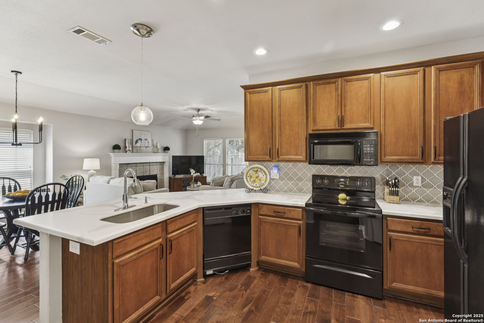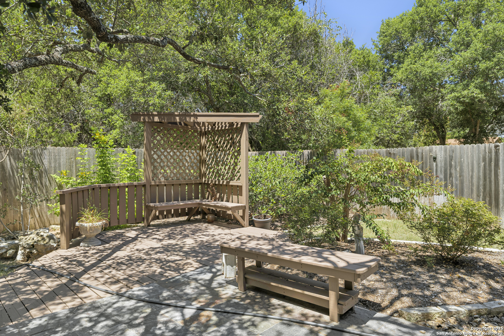 Updated One-Story Gem Backing to Greenbelt in Panther Creek! Don't miss this beautifully renovated one-level home in the highly desirable gated community of Panther Creek! Thoughtfully updated with hardwood floors, BRAND NEW carpets in bedrooms, quartz countertops, stylish lighting, and a modern open layout, this home blends charm and functionality with ease. The spacious kitchen features a peninsula layout and breakfast bar, quartz counters, a designer backsplash, and a walk-in pantry-perfect for cooking and entertaining. The cozy family room centers around a wood-burning fireplace with a striking mantle and hearth. The owner's suite offers a spa-inspired retreat with double vanities, a walk-in shower, and a large closet. Two additional bedrooms and an updated guest bath provide space and privacy for family or guests. Enjoy outdoor living on the spacious patio and covered pergola, surrounded by mature trees and backing to a peaceful greenbelt-no rear neighbors! The 2-car garage offers ample storage. Enjoy Top-rated NEISD schools and fantastic HOA amenities just steps from your front door! This move-in ready home offers the perfect mix of updates, location, and lifestyle. Schedule your showing today!