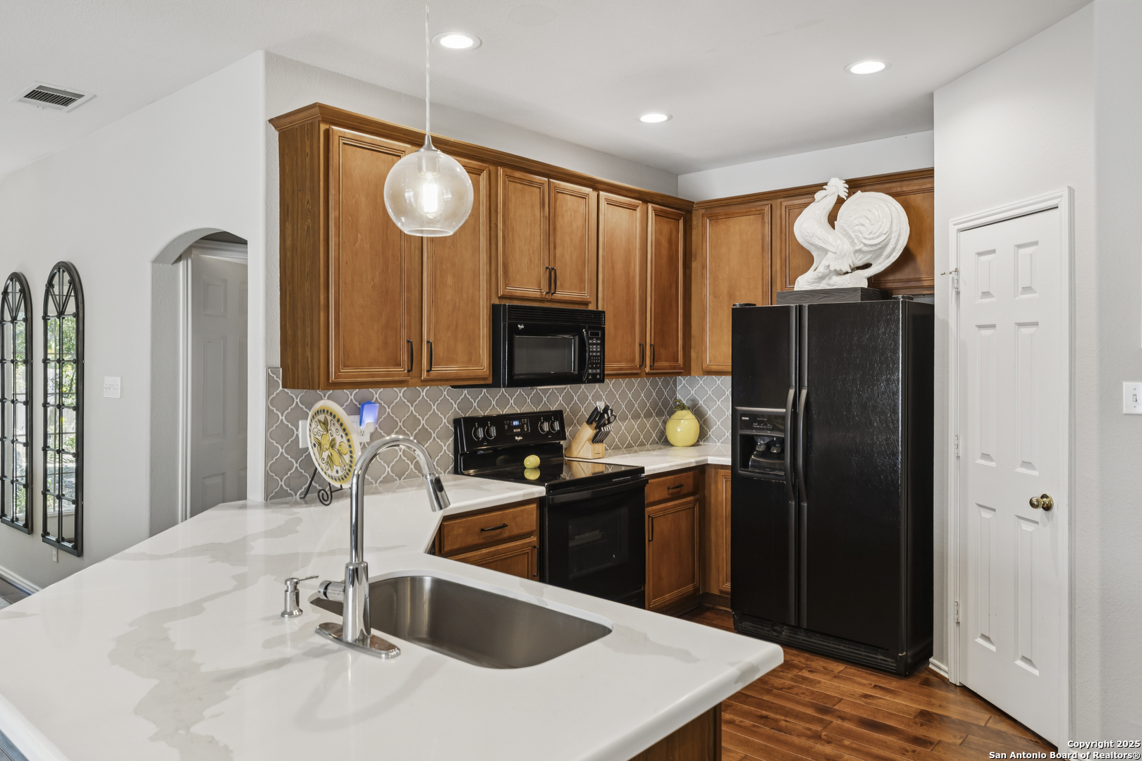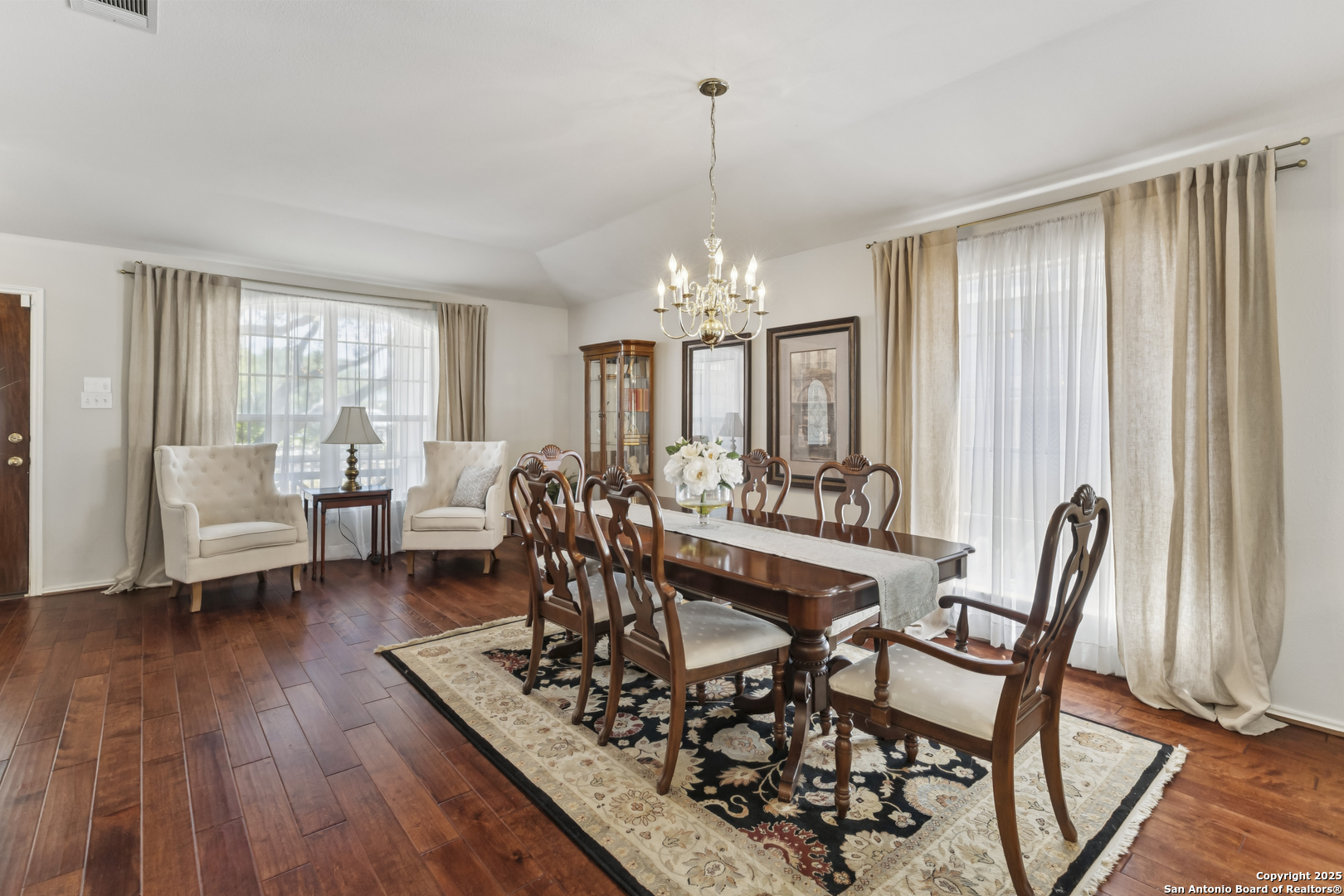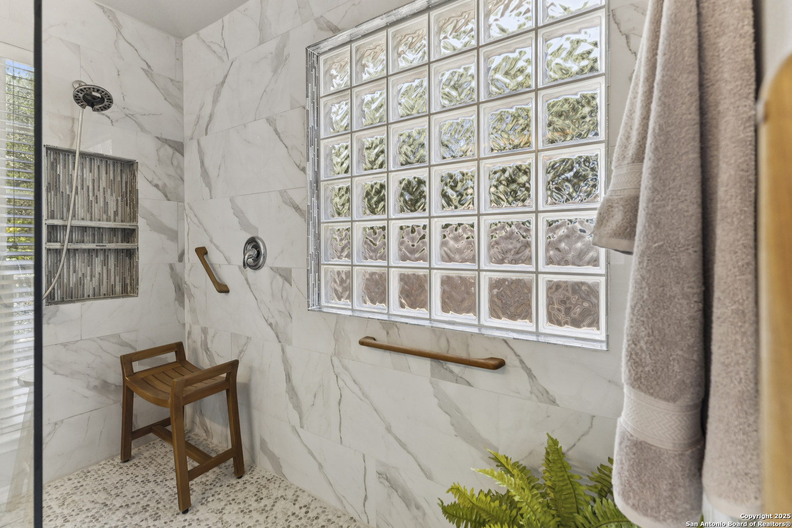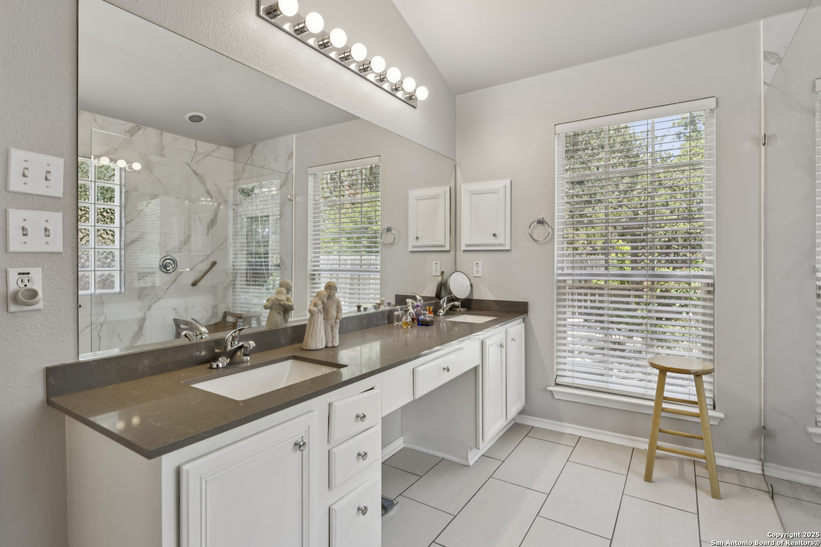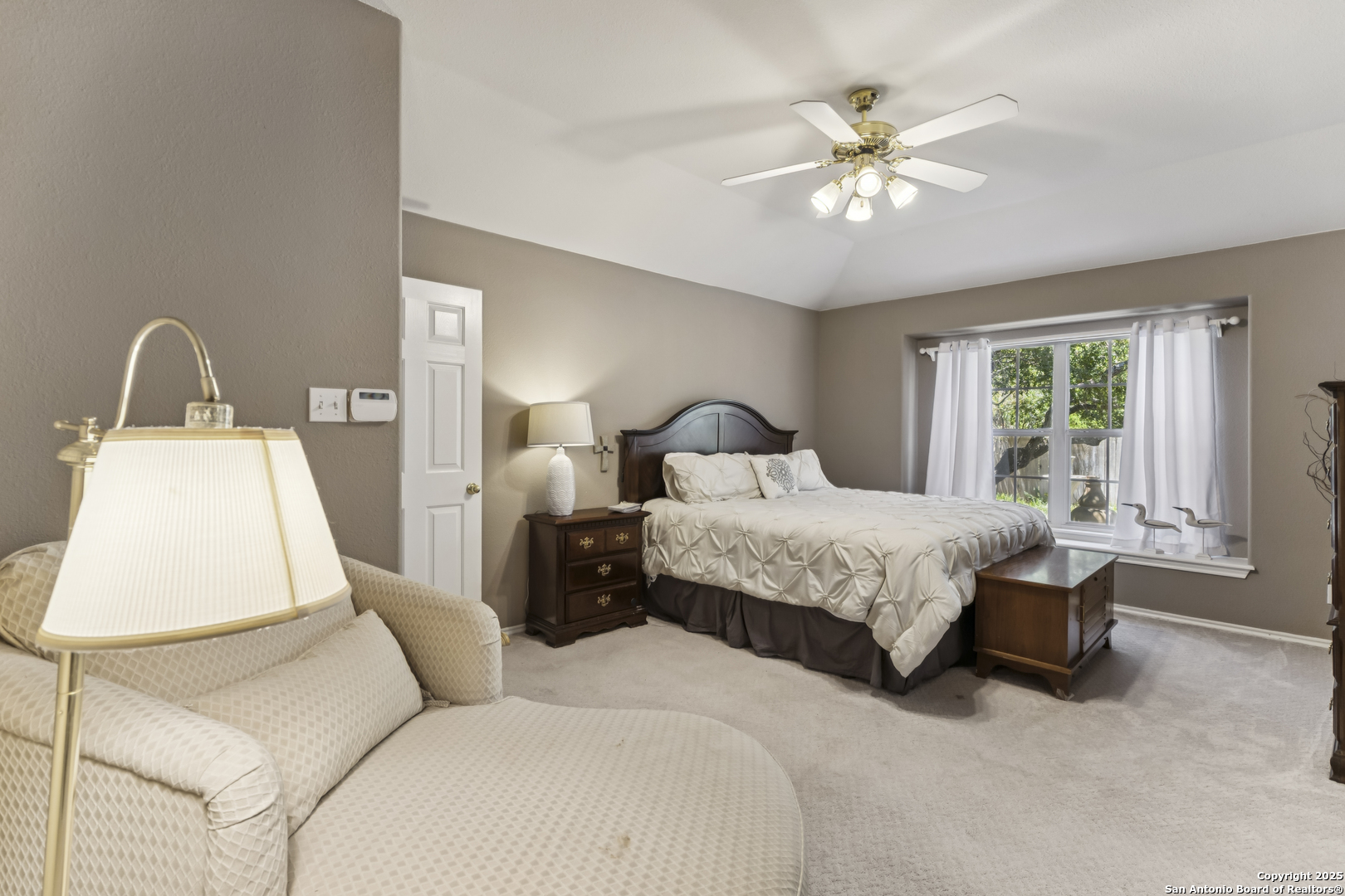 Updated One-Story Gem Backing to Greenbelt in Panther Creek! Don't miss this beautifully renovated one-level home in the highly desirable gated community of Panther Creek! Thoughtfully updated with hardwood floors, BRAND NEW carpets in bedrooms, quartz countertops, stylish lighting, and a modern open layout, this home blends charm and functionality with ease. The spacious kitchen features a peninsula layout and breakfast bar, quartz counters, a designer backsplash, and a walk-in pantry-perfect for cooking and entertaining. The cozy family room centers around a wood-burning fireplace with a striking mantle and hearth. The owner's suite offers a spa-inspired retreat with double vanities, a walk-in shower, and a large closet. Two additional bedrooms and an updated guest bath provide space and privacy for family or guests. Enjoy outdoor living on the spacious patio and covered pergola, surrounded by mature trees and backing to a peaceful greenbelt-no rear neighbors! The 2-car garage offers ample storage. Enjoy Top-rated NEISD schools and fantastic HOA amenities just steps from your front door! This move-in ready home offers the perfect mix of updates, location, and lifestyle. Schedule your showing today!