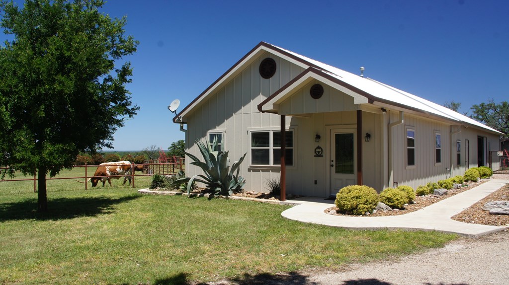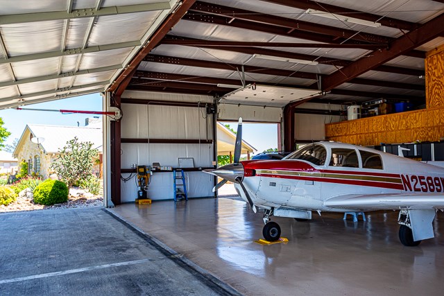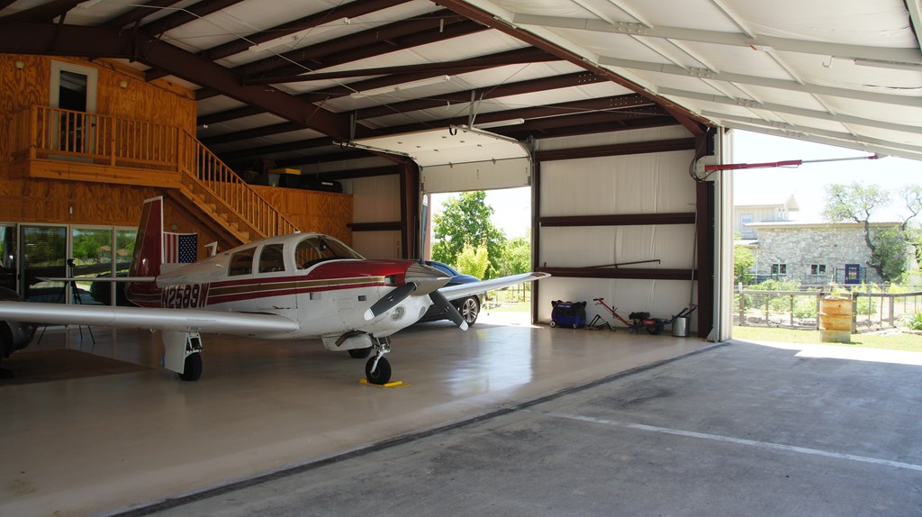 Main house and 2 separate guest areas are equal to a 4 bedroom, 4 bath home with approx 3,537 sq.ft. for all improvements. This Hanger/Home is truly a rare Hill Country gem for aviation lovers, pilots & airplane owners. The 12.88+/- acre property is located in the secluded, high-fenced Air Park - Silver Wings Fly-In Ranch. Home & hanger are located at the end of the 3,800 ft, asphalt airstrip. The main home was stripped down to the bare bones in 2008 and completely remodeled. It is a lovely 2 Bedroom / 2 Bath,1755 sq.ft. with large open living area w/ original wood burning, stone fireplace. Large covered front porch, covered patio area with fire pit for entertaining, Hot tub/ spa area, fenced garden area and numerous fruit trees. Property has long range views, perimeter low fencing & pipe fencing. The Guest House is a 728 sq ft, 1 Bedroom /1 Bath with plenty of storage with a great view of planes taking off and landing. The Hanger has very nice 850 sq.ft., finished 1 Bedroom /1 Bath guest area and office on the main floor and a 40 sq.ft finish storage room area above. The hanger also has extra open storage areas and built-in workspace. :