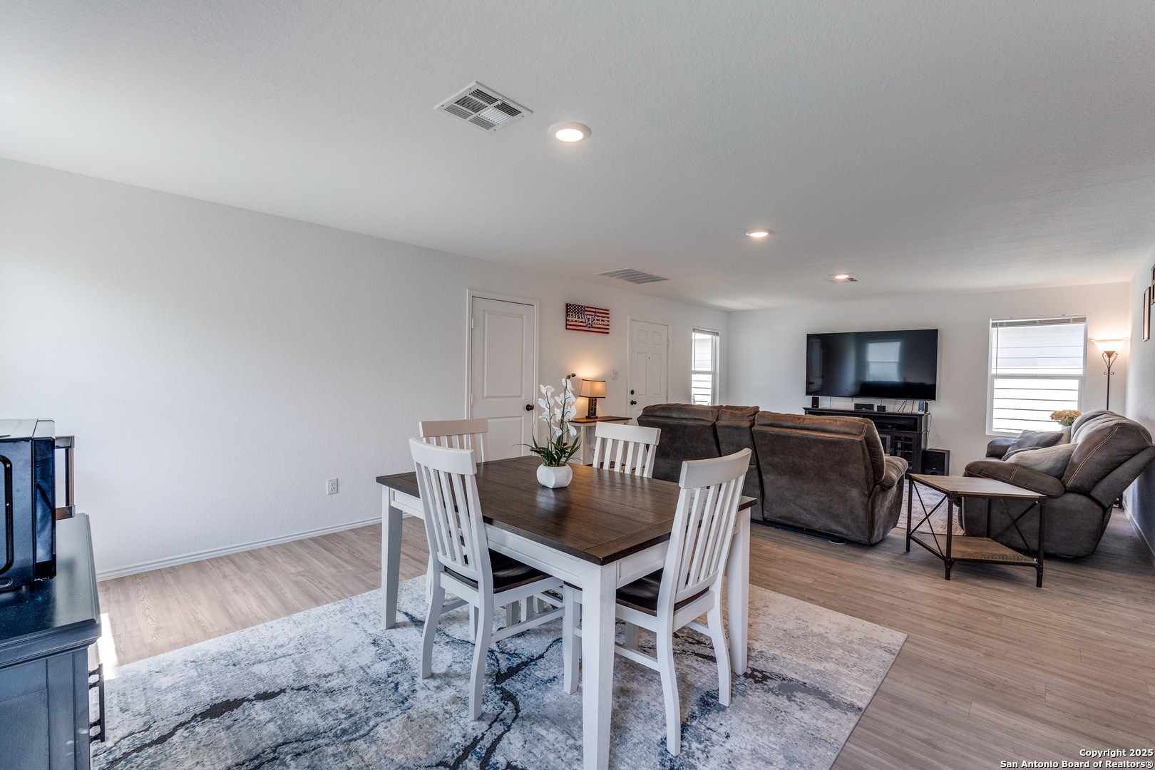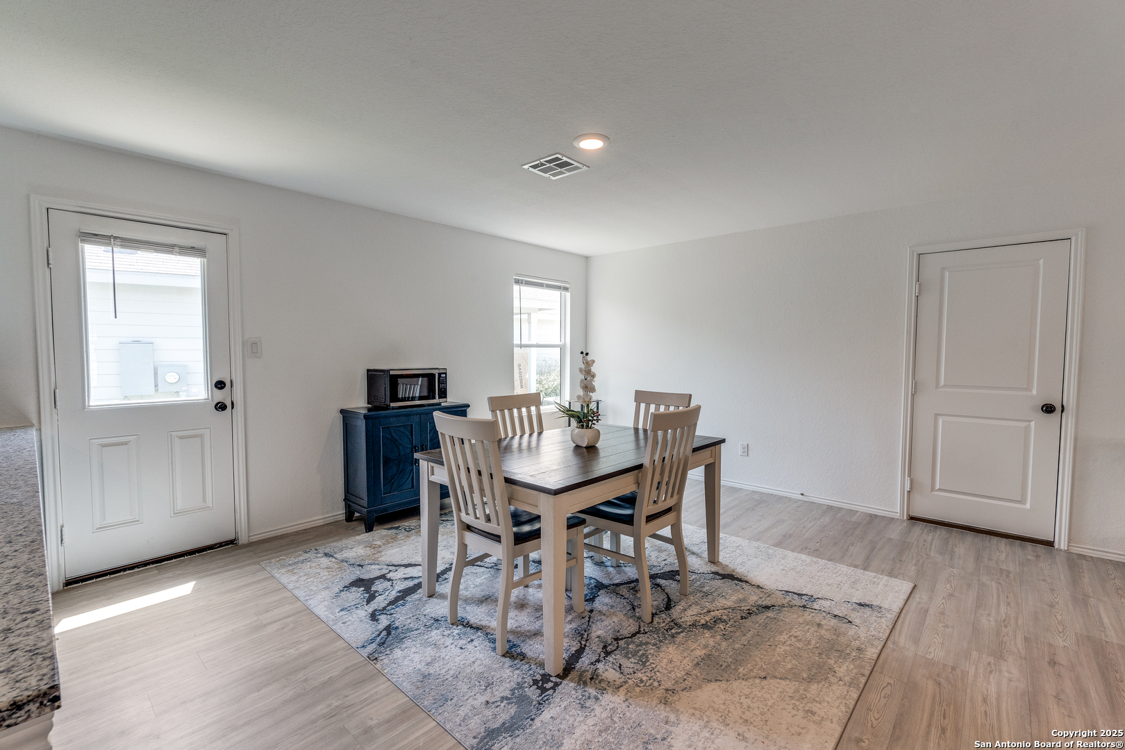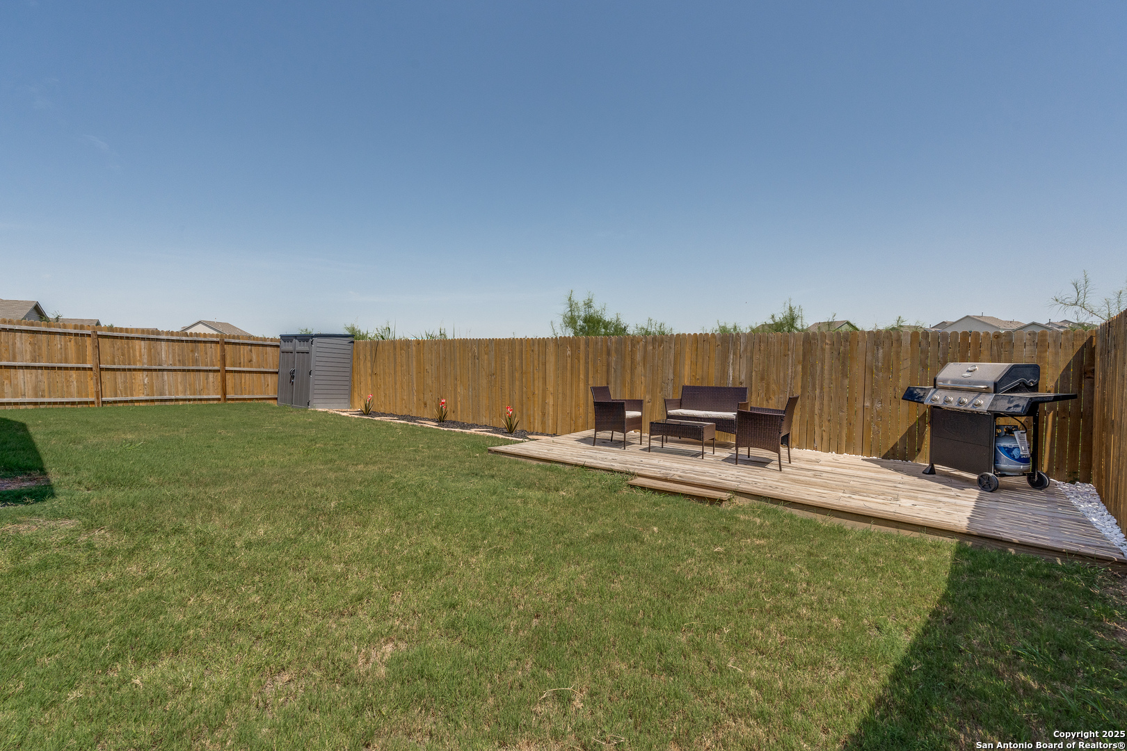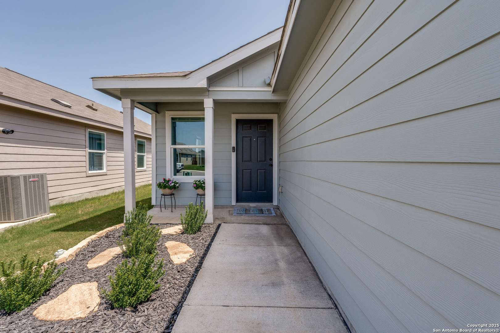 PCS season is coming soon! Take advantage of this VA Assumable Loan in the mid 4s and don't miss out on this opportunity! Welcome to this beautiful, meticulously maintained 3-bedroom, 2-bath home offering 1,450 sq ft of stylish, comfortable living space! Nestled on a peaceful greenbelt in a quiet, family-friendly neighborhood, this home boasts an inviting open floorplan where the spacious living area flows seamlessly into the dining space-perfect for entertaining or relaxing with loved ones. The kitchen showcases a striking upgraded backsplash that adds character and charm, while the laundry room and bathrooms feature fresh, modern paint and updated hardware for a polished, contemporary feel. Step outside to enjoy the privacy of a fenced backyard with no rear neighbors, enhanced by updated landscaping that creates a serene, welcoming outdoor space-ideal for pets, kids, or weekend BBQs. Additional upgrades include ceiling fans in each bedroom, a garage door opener, backyard storage shed, and shelving units in the garage. Conveniently located just minutes from I-410 and I-10, with close proximity to Randolph Air Force Base, JBSA, shopping, and dining. This VA-assumable loan opportunity won't last-schedule your showing today!