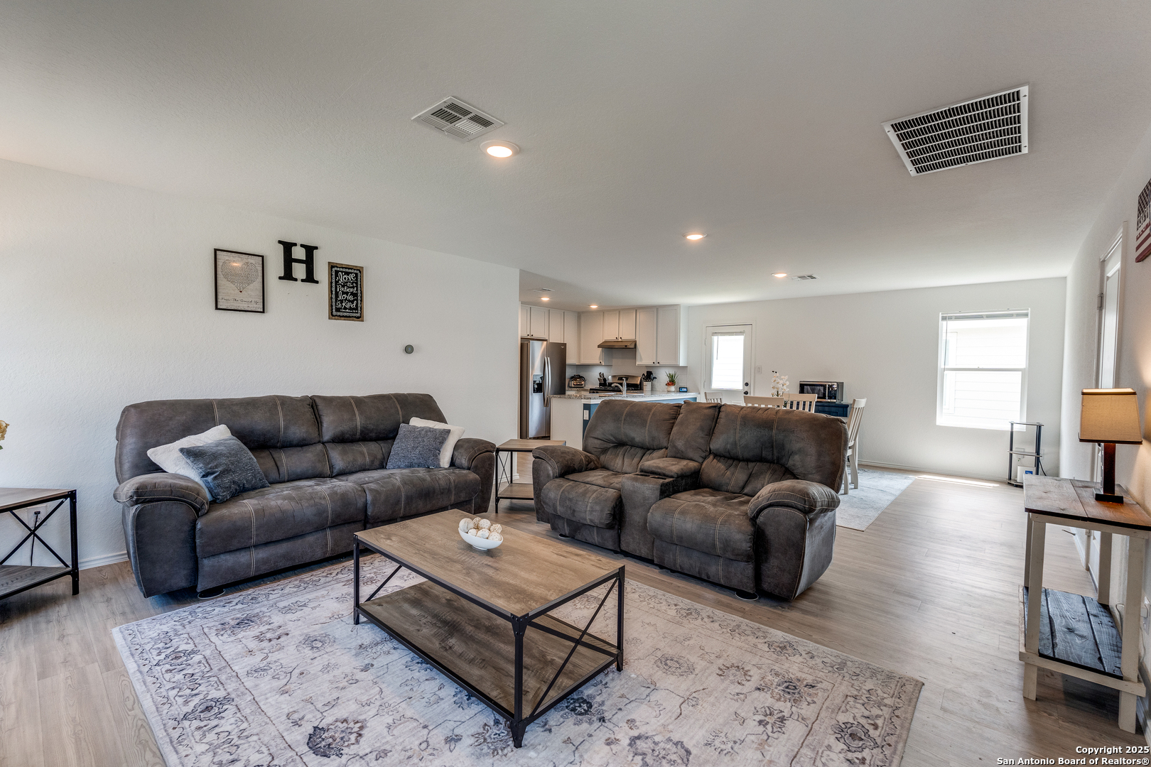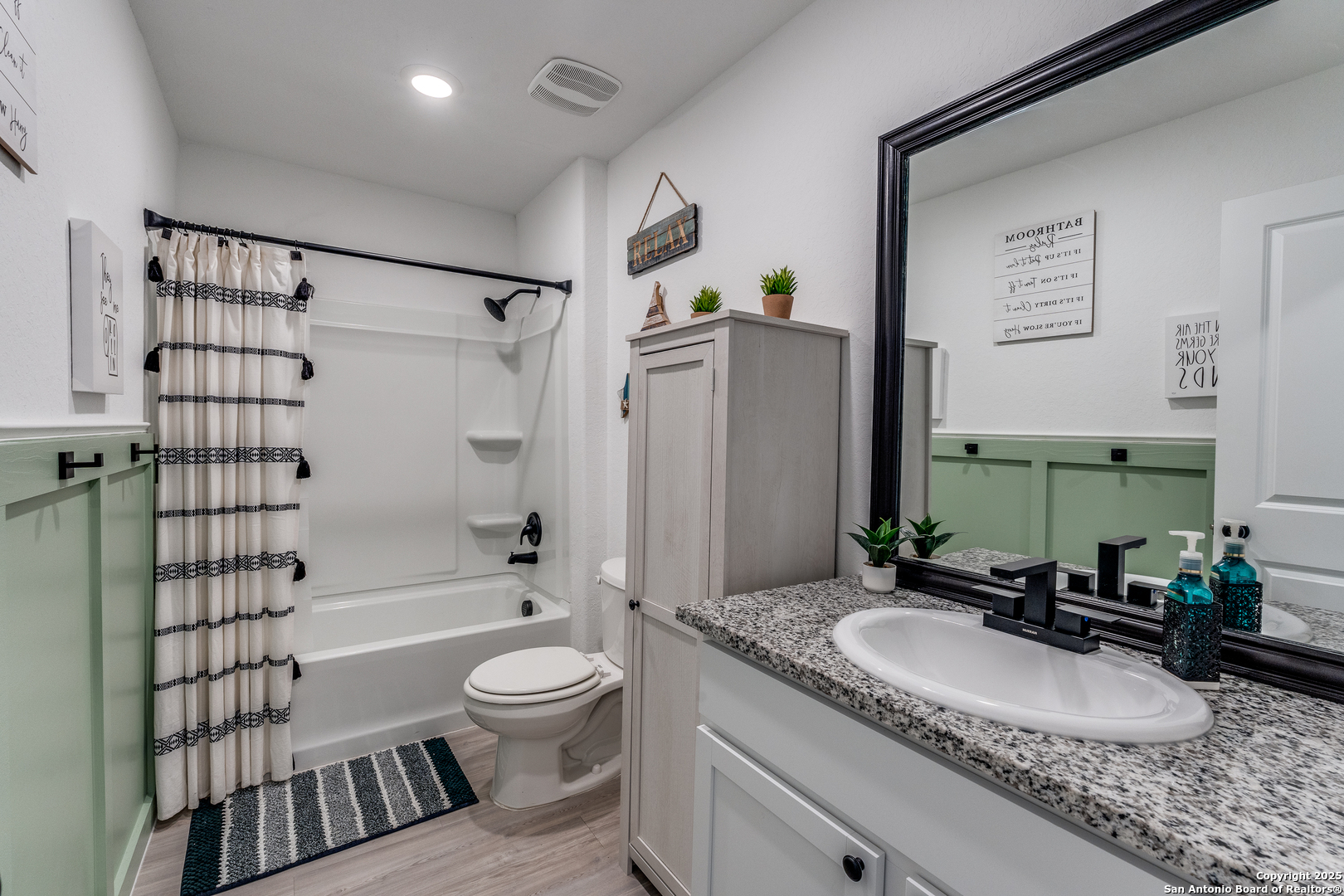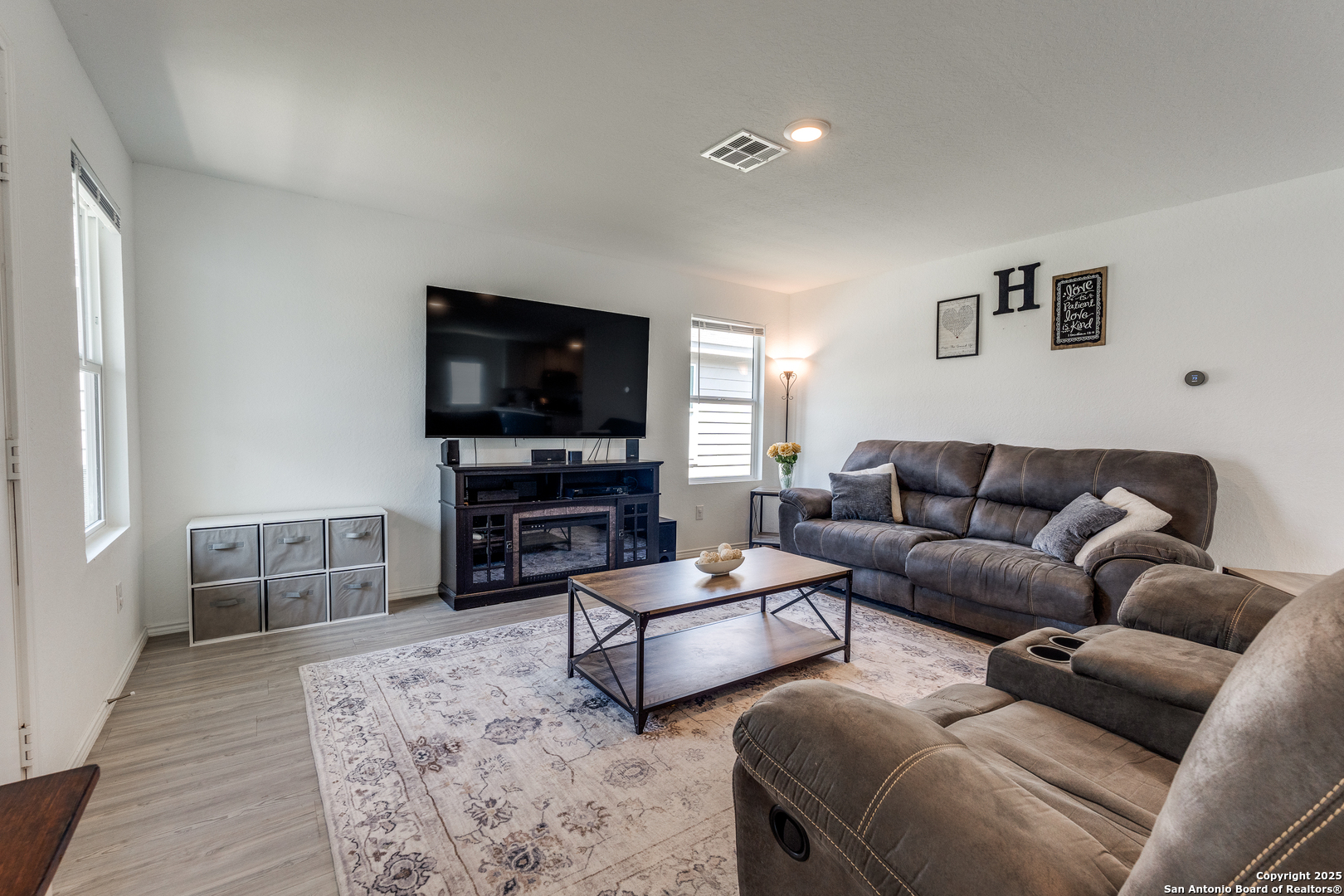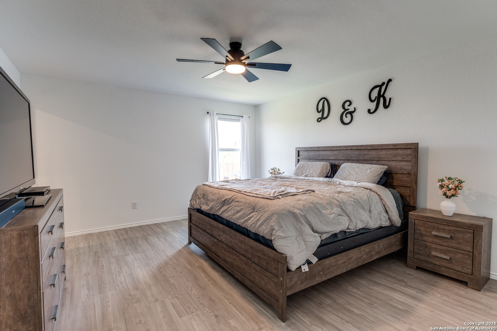 PCS season is coming soon! Take advantage of this VA Assumable Loan in the mid 4s and don't miss out on this opportunity! Welcome to this beautiful, meticulously maintained 3-bedroom, 2-bath home offering 1,450 sq ft of stylish, comfortable living space! Nestled on a peaceful greenbelt in a quiet, family-friendly neighborhood, this home boasts an inviting open floorplan where the spacious living area flows seamlessly into the dining space-perfect for entertaining or relaxing with loved ones. The kitchen showcases a striking upgraded backsplash that adds character and charm, while the laundry room and bathrooms feature fresh, modern paint and updated hardware for a polished, contemporary feel. Step outside to enjoy the privacy of a fenced backyard with no rear neighbors, enhanced by updated landscaping that creates a serene, welcoming outdoor space-ideal for pets, kids, or weekend BBQs. Additional upgrades include ceiling fans in each bedroom, a garage door opener, backyard storage shed, and shelving units in the garage. Conveniently located just minutes from I-410 and I-10, with close proximity to Randolph Air Force Base, JBSA, shopping, and dining. This VA-assumable loan opportunity won't last-schedule your showing today!