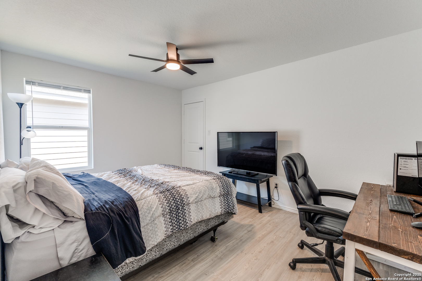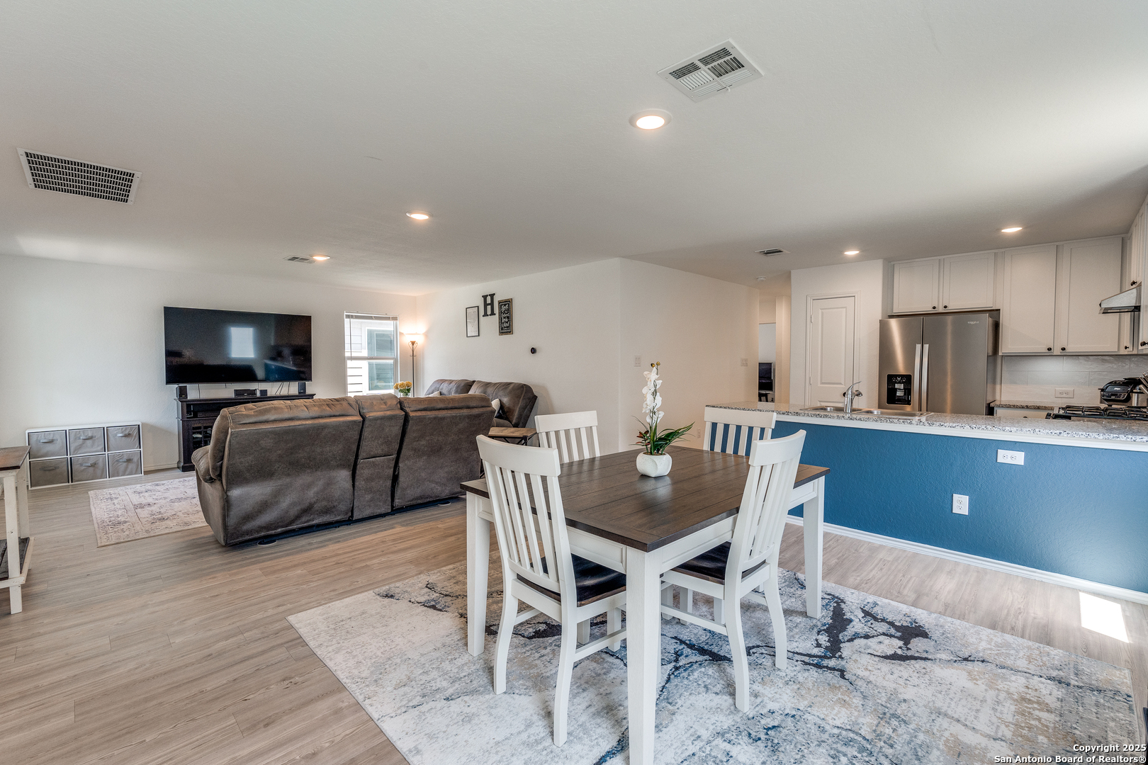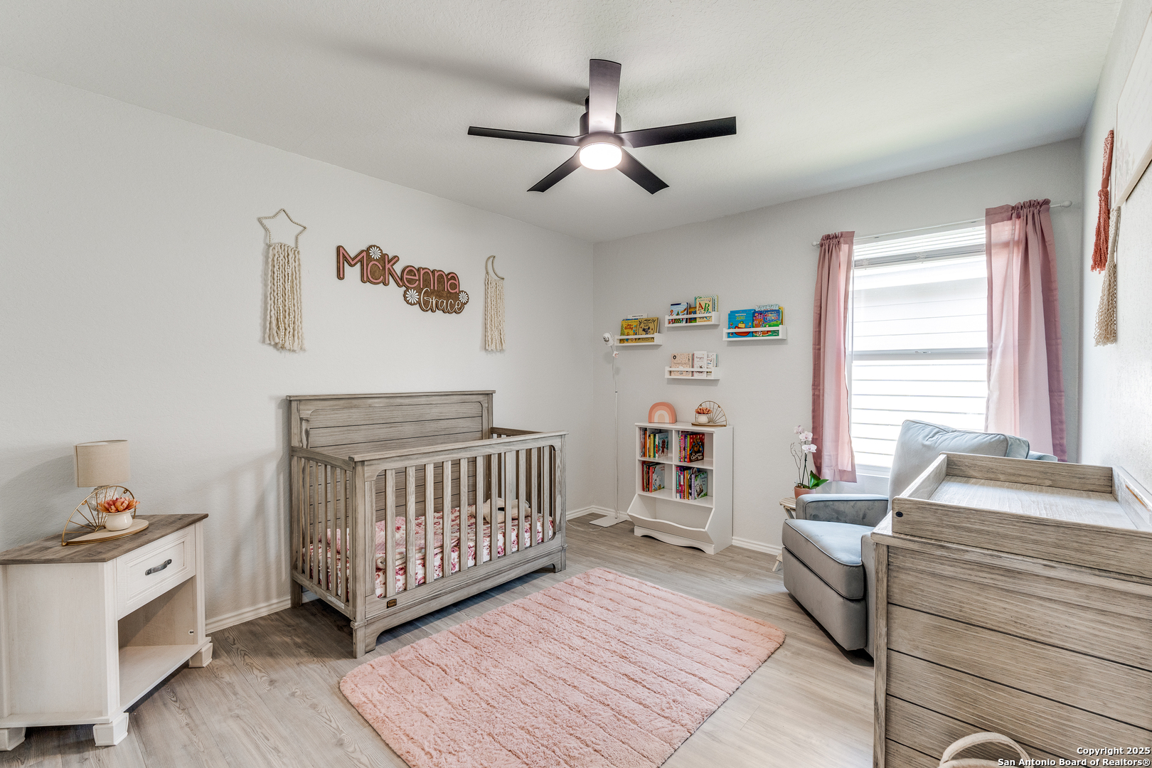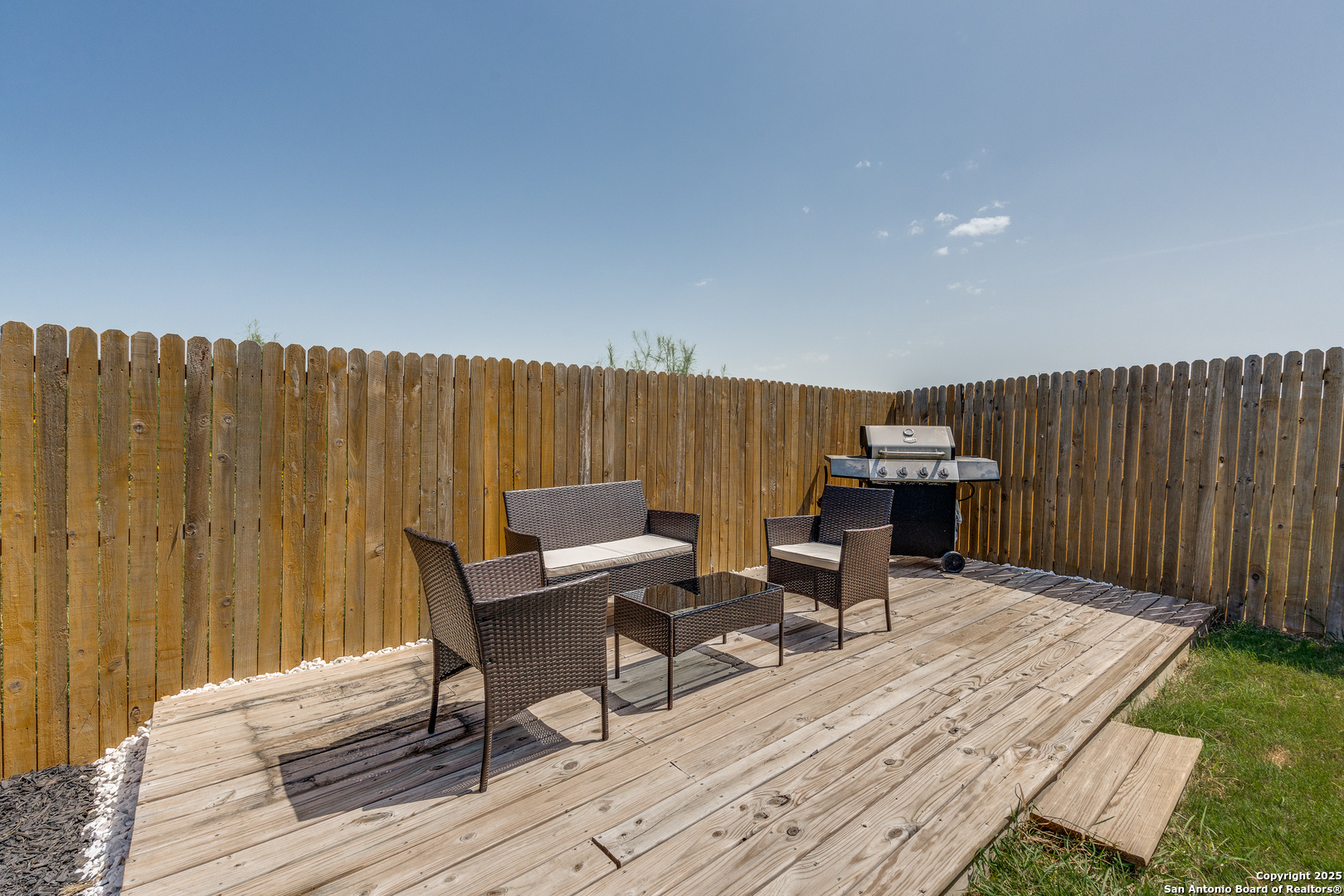 PCS season is coming soon! Take advantage of this VA Assumable Loan in the mid 4s and don't miss out on this opportunity! Welcome to this beautiful, meticulously maintained 3-bedroom, 2-bath home offering 1,450 sq ft of stylish, comfortable living space! Nestled on a peaceful greenbelt in a quiet, family-friendly neighborhood, this home boasts an inviting open floorplan where the spacious living area flows seamlessly into the dining space-perfect for entertaining or relaxing with loved ones. The kitchen showcases a striking upgraded backsplash that adds character and charm, while the laundry room and bathrooms feature fresh, modern paint and updated hardware for a polished, contemporary feel. Step outside to enjoy the privacy of a fenced backyard with no rear neighbors, enhanced by updated landscaping that creates a serene, welcoming outdoor space-ideal for pets, kids, or weekend BBQs. Additional upgrades include ceiling fans in each bedroom, a garage door opener, backyard storage shed, and shelving units in the garage. Conveniently located just minutes from I-410 and I-10, with close proximity to Randolph Air Force Base, JBSA, shopping, and dining. This VA-assumable loan opportunity won't last-schedule your showing today!