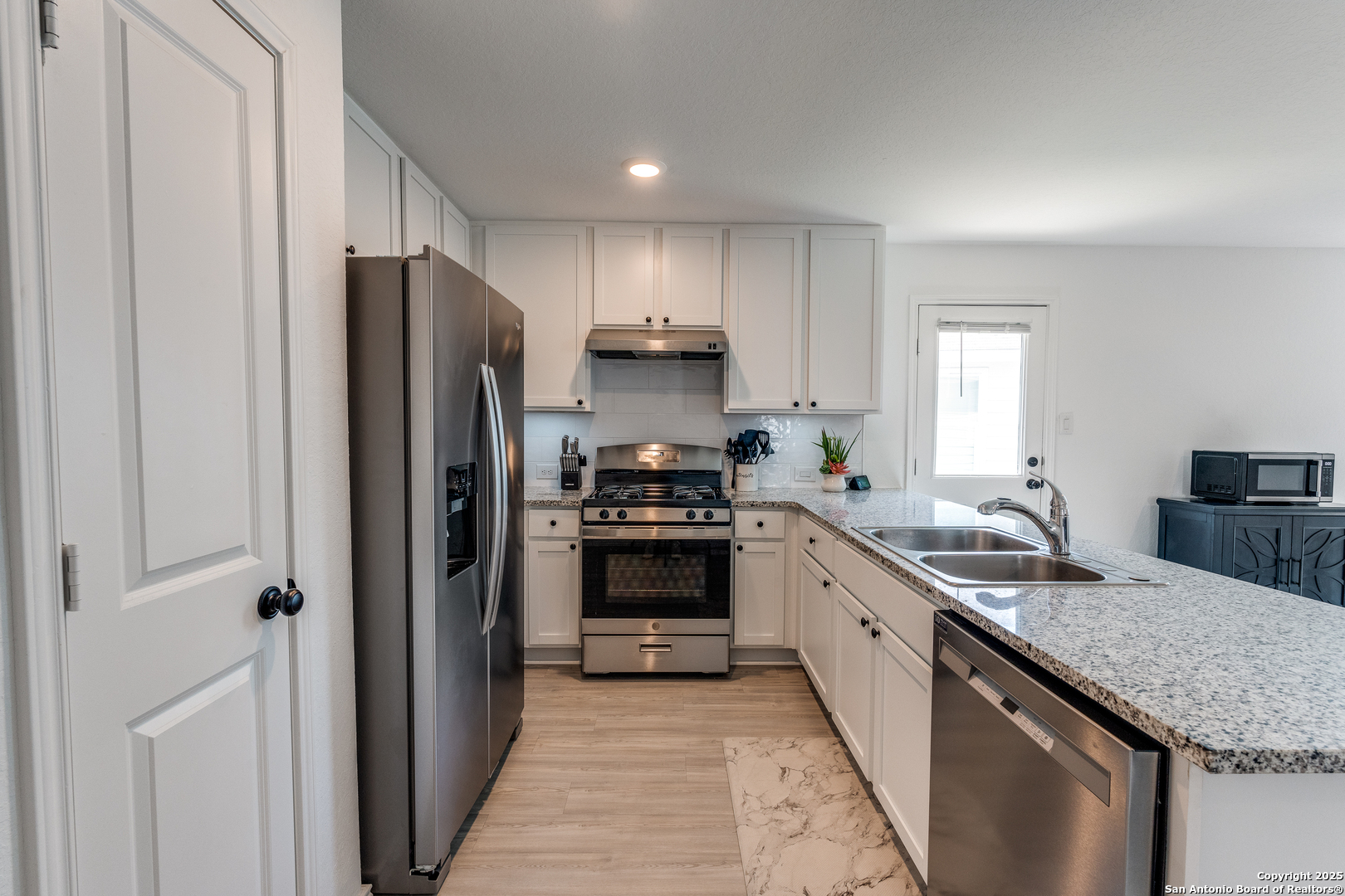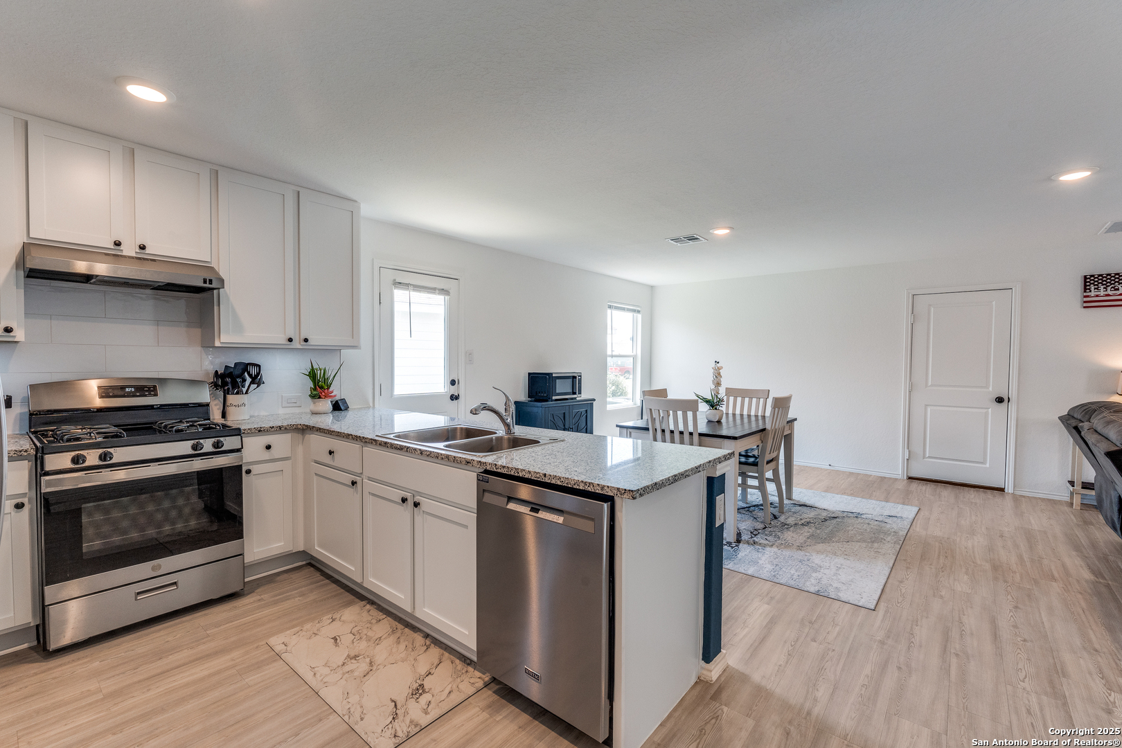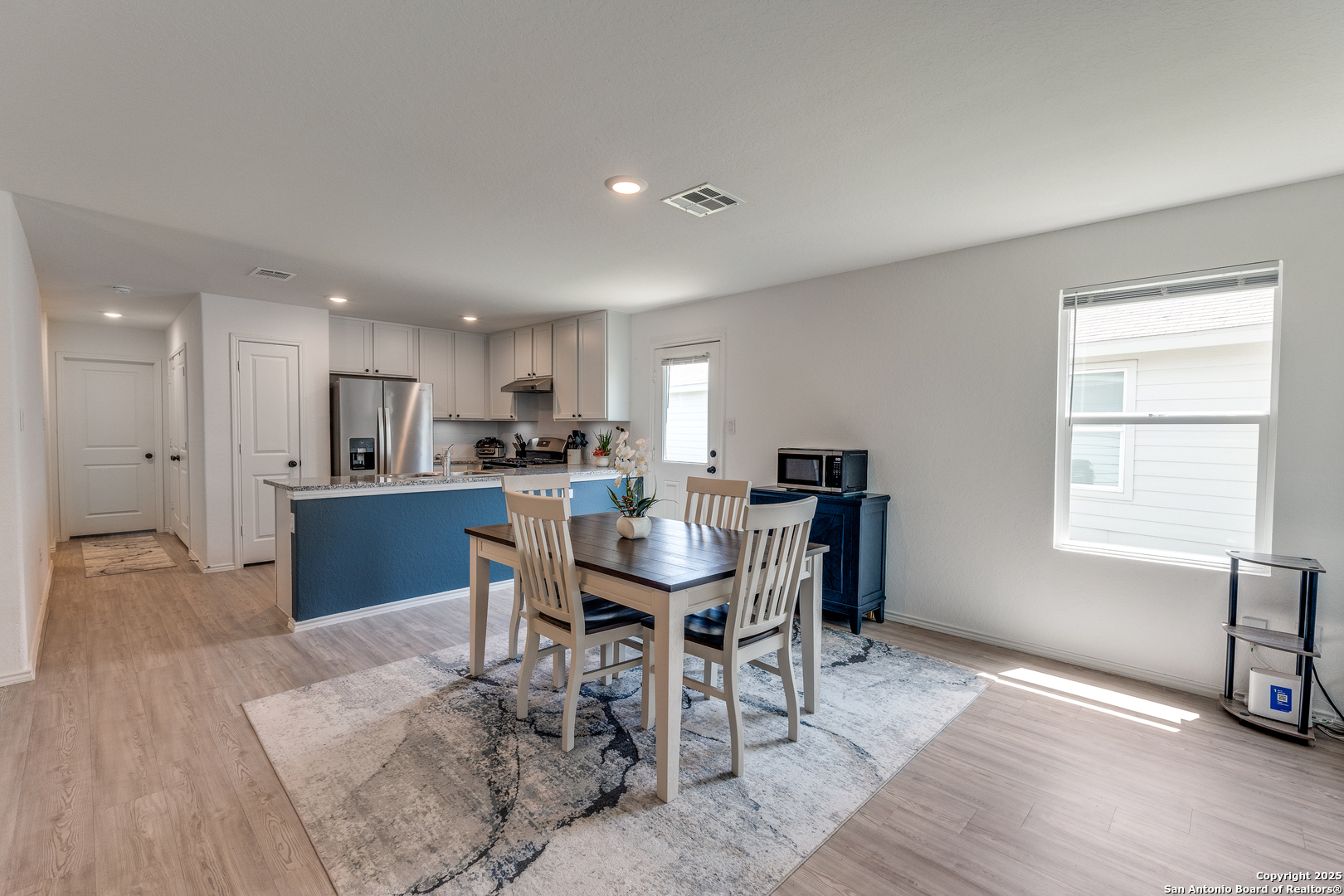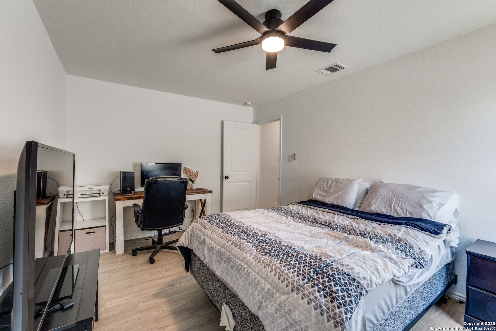 PCS season is coming soon! Take advantage of this VA Assumable Loan in the mid 4s and don't miss out on this opportunity! Welcome to this beautiful, meticulously maintained 3-bedroom, 2-bath home offering 1,450 sq ft of stylish, comfortable living space! Nestled on a peaceful greenbelt in a quiet, family-friendly neighborhood, this home boasts an inviting open floorplan where the spacious living area flows seamlessly into the dining space-perfect for entertaining or relaxing with loved ones. The kitchen showcases a striking upgraded backsplash that adds character and charm, while the laundry room and bathrooms feature fresh, modern paint and updated hardware for a polished, contemporary feel. Step outside to enjoy the privacy of a fenced backyard with no rear neighbors, enhanced by updated landscaping that creates a serene, welcoming outdoor space-ideal for pets, kids, or weekend BBQs. Additional upgrades include ceiling fans in each bedroom, a garage door opener, backyard storage shed, and shelving units in the garage. Conveniently located just minutes from I-410 and I-10, with close proximity to Randolph Air Force Base, JBSA, shopping, and dining. This VA-assumable loan opportunity won't last-schedule your showing today!