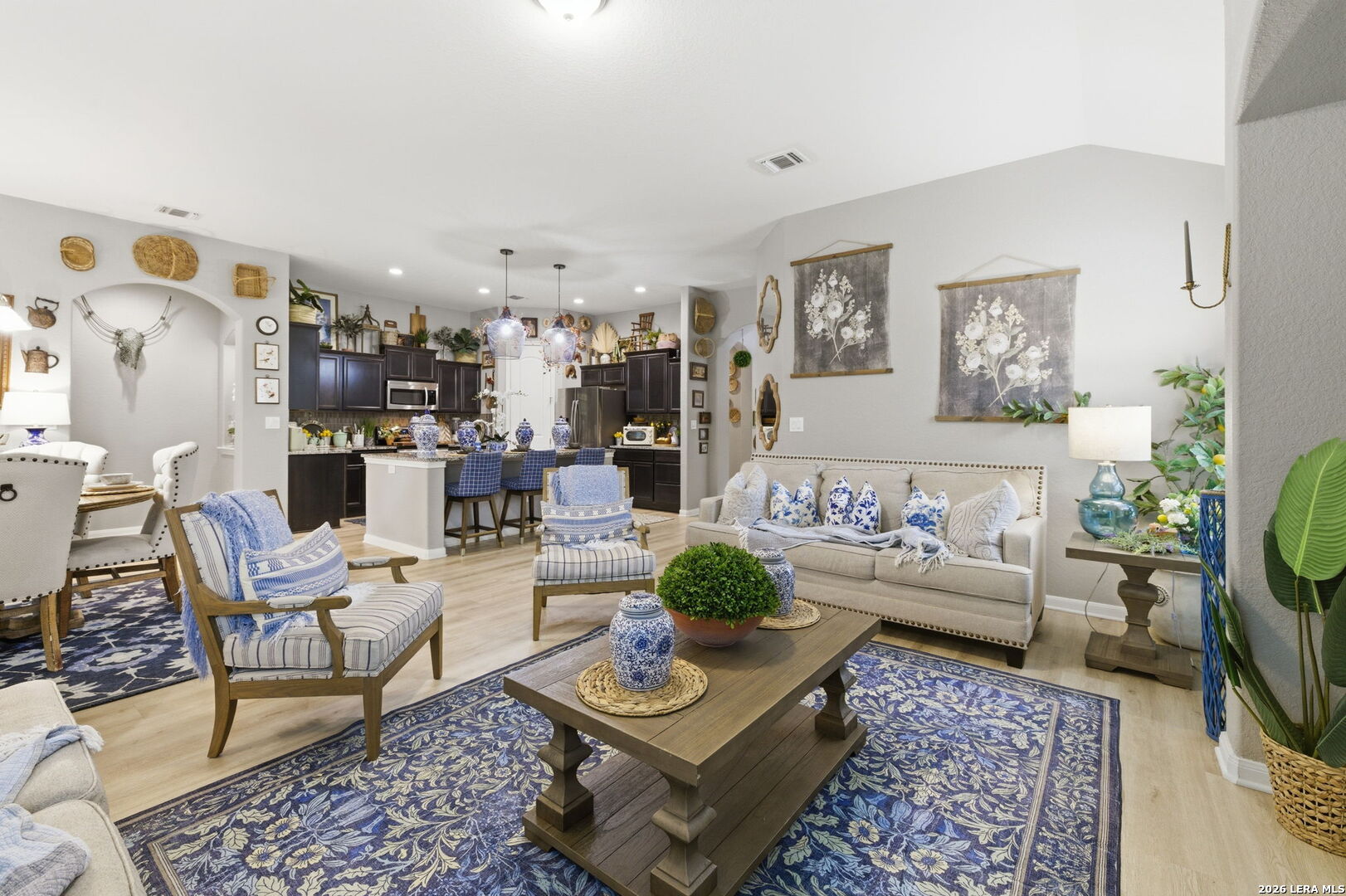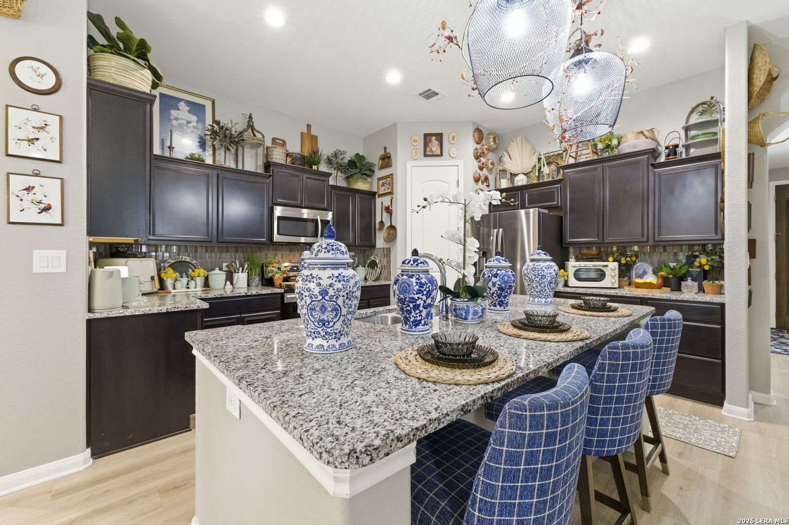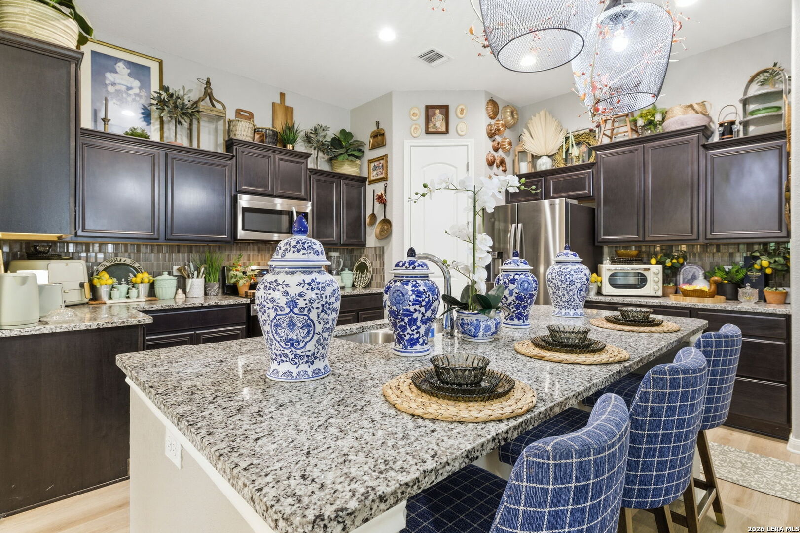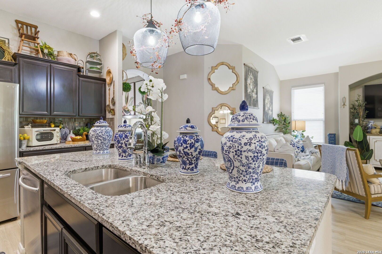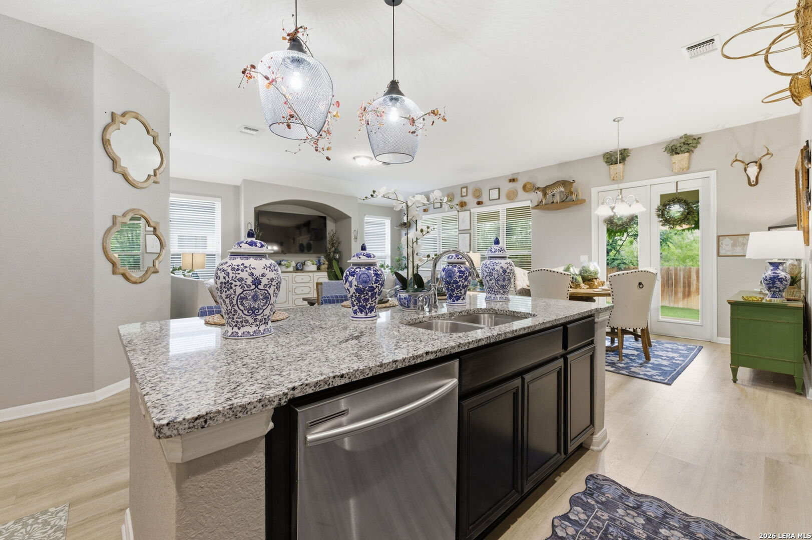 "Beautiful 4-bedroom, 3-bath home with a 2-car garage featuring an open-concept layout and stylish finishes throughout. The spacious kitchen offers granite countertops, dark cabinetry, stainless steel appliances, and a large island that opens to the main living area-perfect for entertaining. The home includes generously sized bedrooms, well-appointed bathrooms, and bright, inviting living spaces filled with natural light. Recent updates include a roof replaced within the last 10 years, added gutters, and a refreshed backyard with new grass and a sprinkler system. Enjoy great curb appeal, a functional layout, and a move-in ready feel-this home is a must-see!"