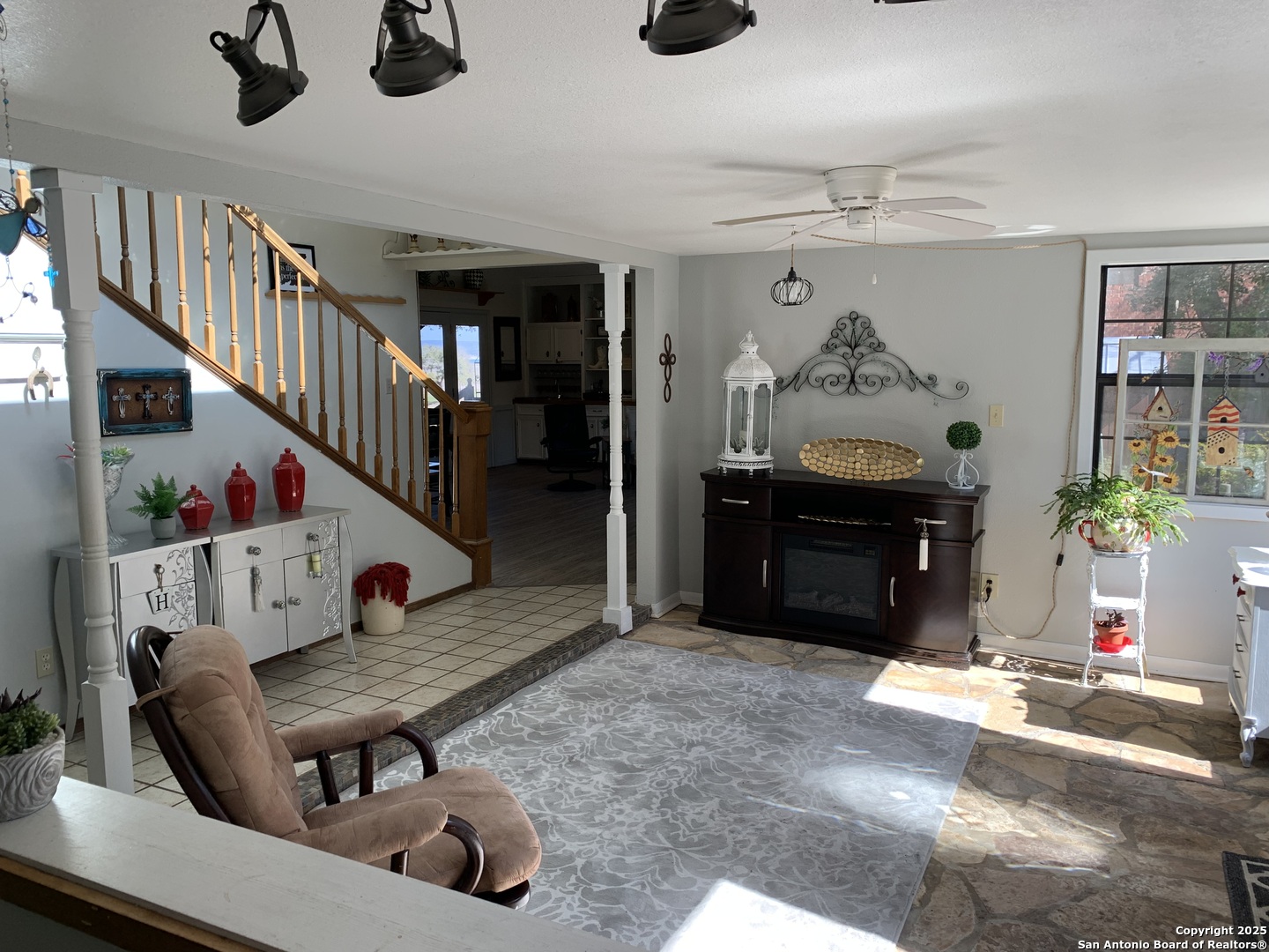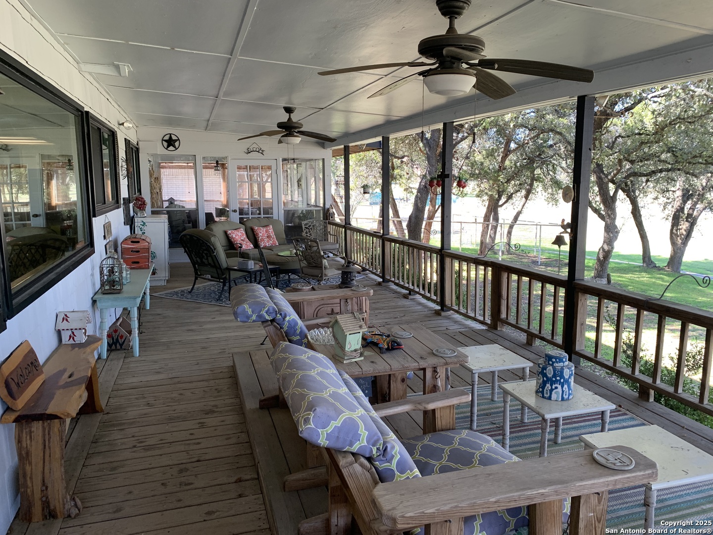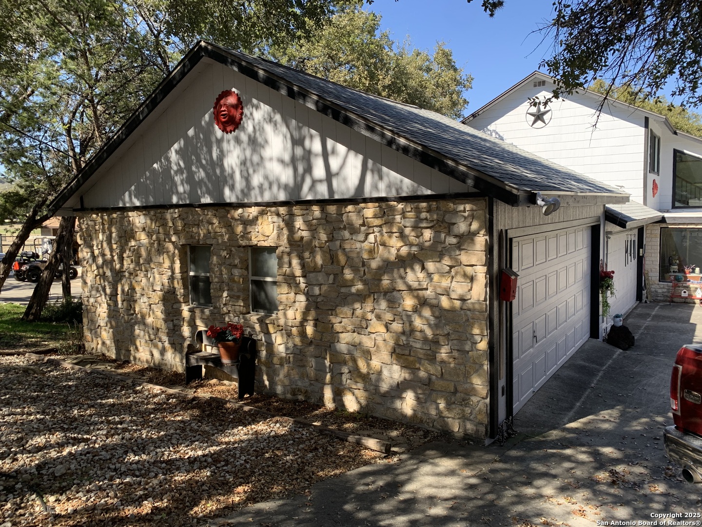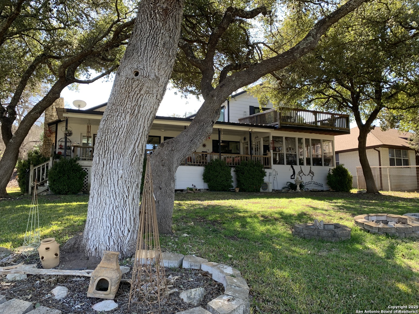 A true find at Canyon Lake! One-of-a-kind home with fabulous space for entertaining. From the flowing kitchen/dining/living area to the grand covered deck spanning the length of the home with views of the golf course & Canyon Lake. 4-car garage plus golf cart garage offers lots of space for watercraft & other toys. Seller will convey the golf cart if desired. The north-south positioning of the home offers beautiful natural light inside & uninterrupted enjoyment of the grand lower deck & the upper-level deck. The primary bedroom is conveniently on the main level with adjoining sunroom & the Jack-&-Jill bedrooms occupy the upper level sporting a private relaxation deck. This Canyon Lake jewel is nestled near lake & river activities, dining, shopping & central to San Antonio, Austin & Hill Country attractions. Investors-STRs allowed-no HOA. 2024 - new windows, new front door & bedroom 2 exterior door. 2023 - new roof & exterior paint, master shower, septic pumped.